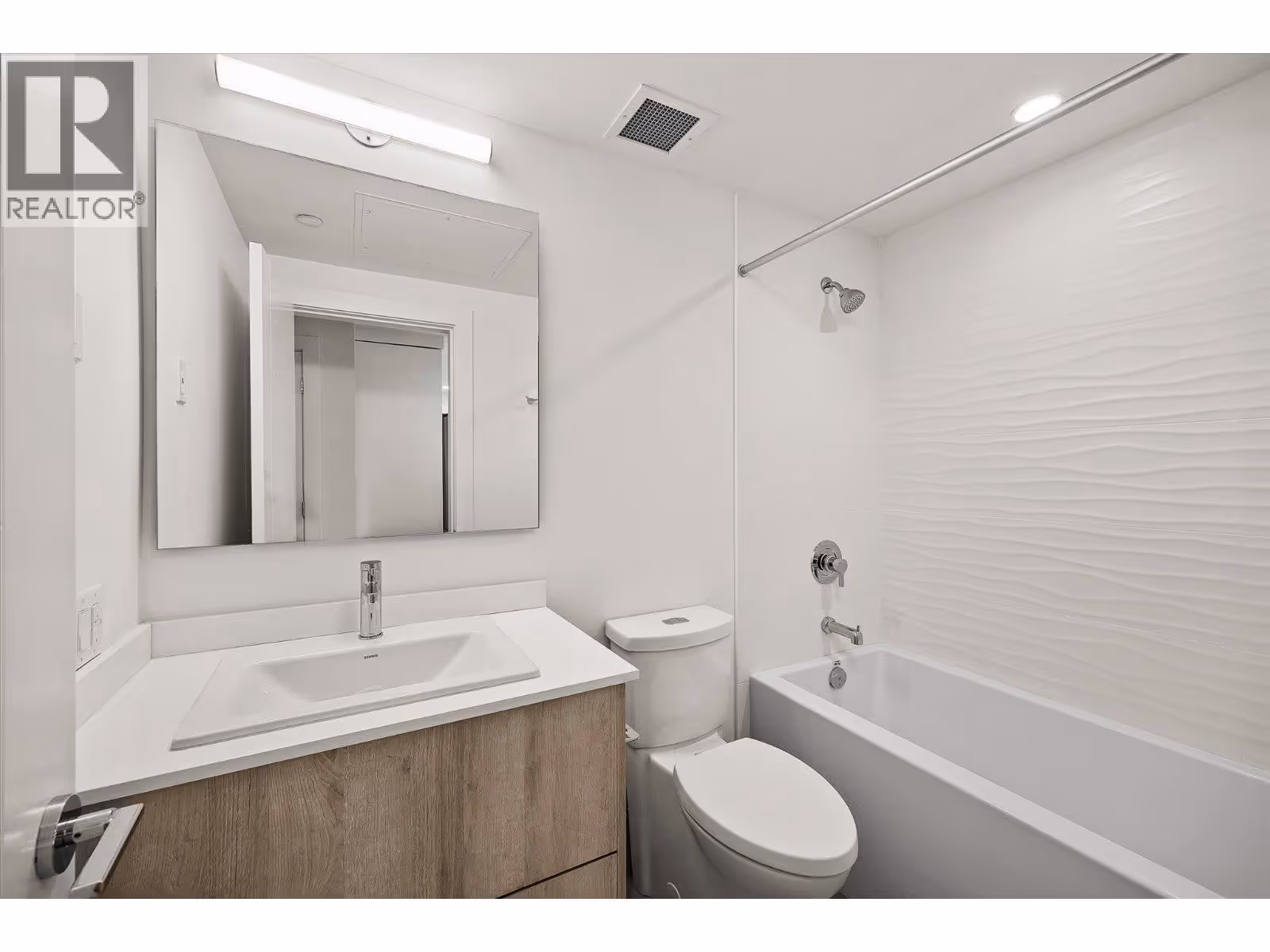 Priced well below assessed value of $854,000! Live steps from the shoreline in Aqua Waterfront Village, an elevated lakefront community in Kelowna’s desirable Lower Mission. This 2 bed, 2 bath home offers approx. 885 sq. ft. of intelligently designed interior space with two bedrooms, expansive windows and a spacious S/W balcony, offering natural light and lake views above the treetops. A split bedroom layout allows for privacy and flexibility. The kitchen features modern two-toned cabinetry, quartz countertops, under-cabinet LED lighting and a premium stainless steel appliance package, incl. a wine fridge. Enjoy luxury wide-plank vinyl flooring throughout the kitchen, living/dining area and bedrooms, blackout roller shades in both bedrooms and an energy-efficient central heating/cooling system. The spa-inspired bathrooms showcase porcelain tile and quartz countertops. 1 secure parking stall (with the rare chance to buy a 2nd stall), 1 storage locker, 1 bike locker are included. Amenities include an outdoor pool and hot tub, gas fire pits and BBQ’s, a fireside lounge and co working area, 2-level fitness centre, pet wash and bike wash and maintenance area. Vacant and ready for quick possession. Only a 5% deposit required. Buyer to verify all details and measurements if deemed important. All offers must be written on the Developer’s CPS. (id:62999)