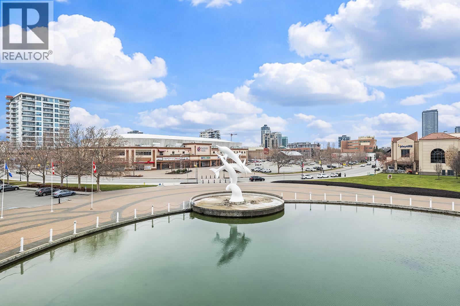 The Dolphins, is where lakeside luxury meets downtown living. This beautifully appointed 2-bedroom, 2-bath residence offers sweeping views of Downtown Kelowna, Okanagan Lake, the lagoon, and the iconic dolphin fountain—providing a tranquil soundtrack you can enjoy. Inside, the bright and modern renovated kitchen is a true showpiece, featuring an expansive seamless 12 ft quartz counter top with plenty of prep space, premium appliances, and a design that’s perfect for both entertaining and everyday living. The open-concept layout flows effortlessly through the dining and living areas and out to a private patio, where you can take in spectacular sunsets, lake views, and Kelowna’s vibrant waterfront scene—including festivals, concerts, and fireworks. The spacious primary bedroom is a serene retreat with patio doors to the balcony, stunning views, and a renovated ensuite boasting a large walk-in shower. The second bedroom and main bathroom, also updated are positioned on the opposite side of the condo, offering privacy for guests or family. Upgrades include new paint, blinds, lighting, quartz countertops, appliances, wiring, plumbing, and more Enjoy exceptional convenience with amenities located on the same level, including a fitness centre, meeting room, outdoor pool, hot tub, and relaxing patio spaces. This condo represents outstanding value, with possible boat moorage and an unbeatable location—just steps to restaurants, breweries, a winery, shopping, and the beach. (id:62999)