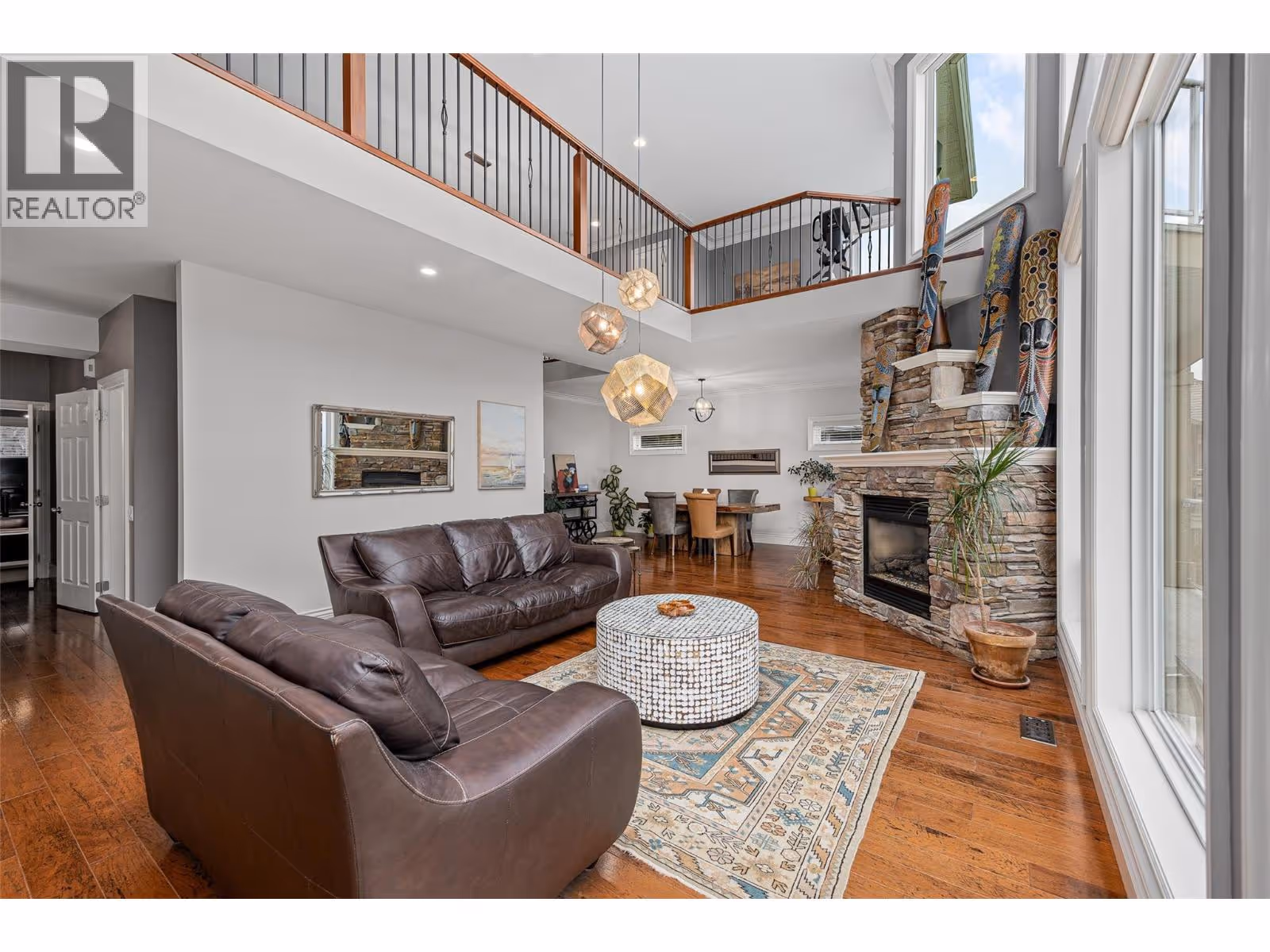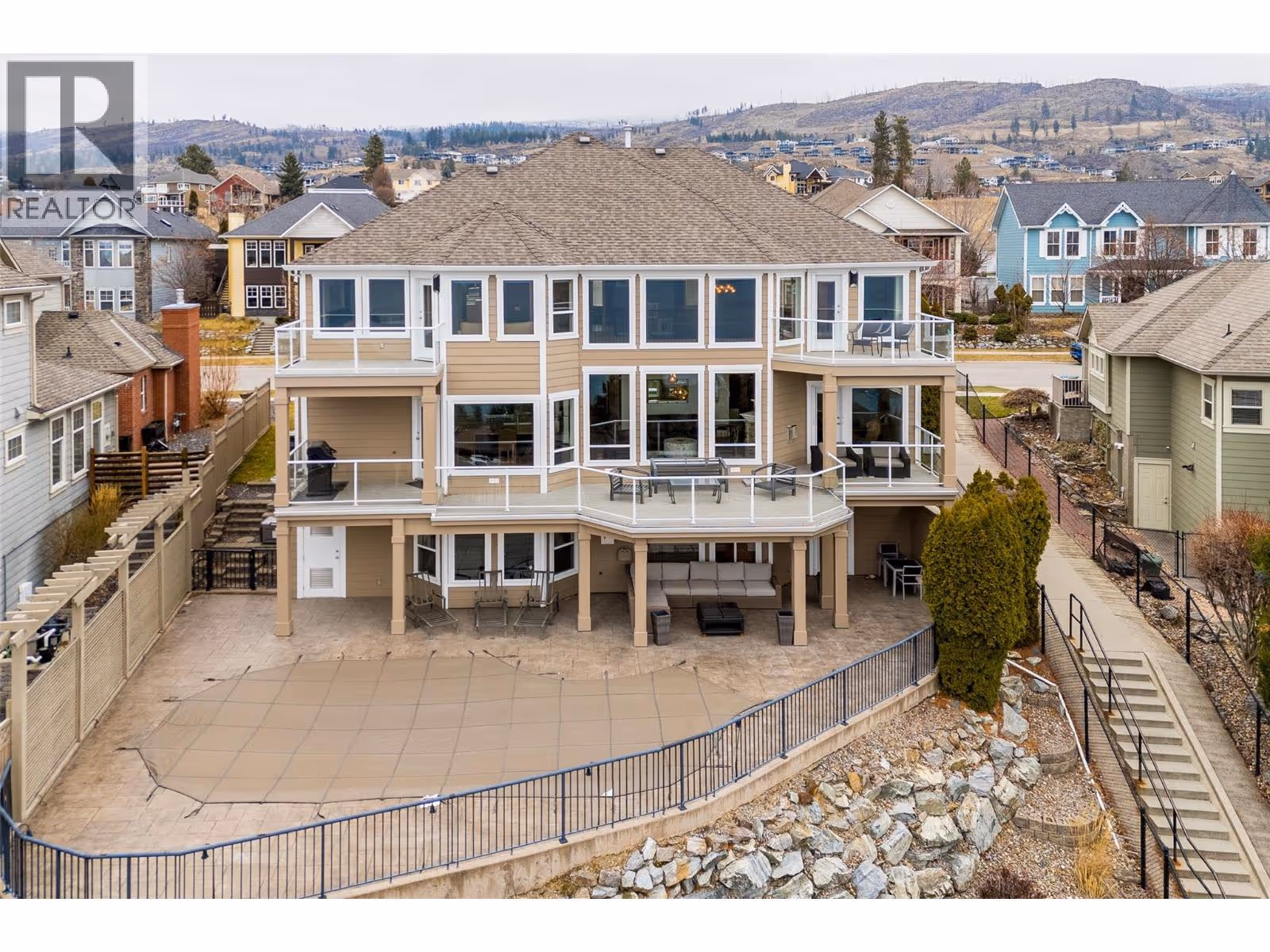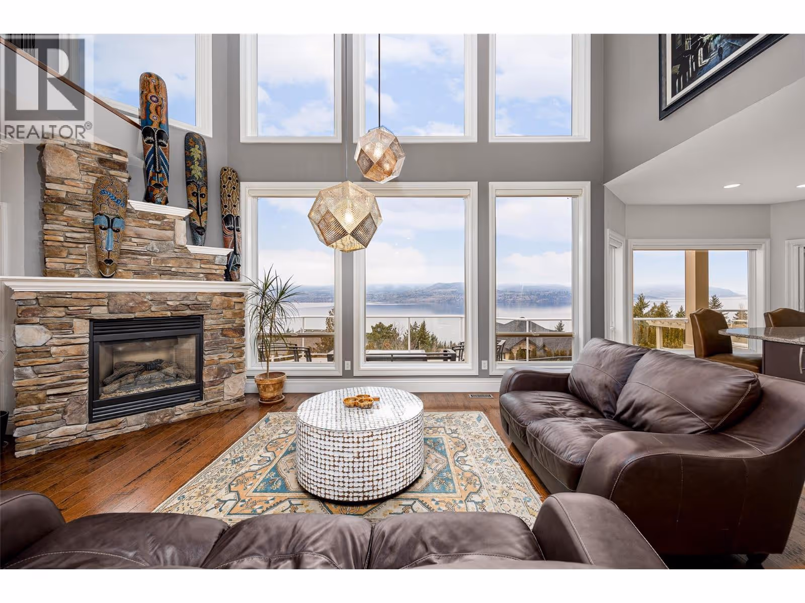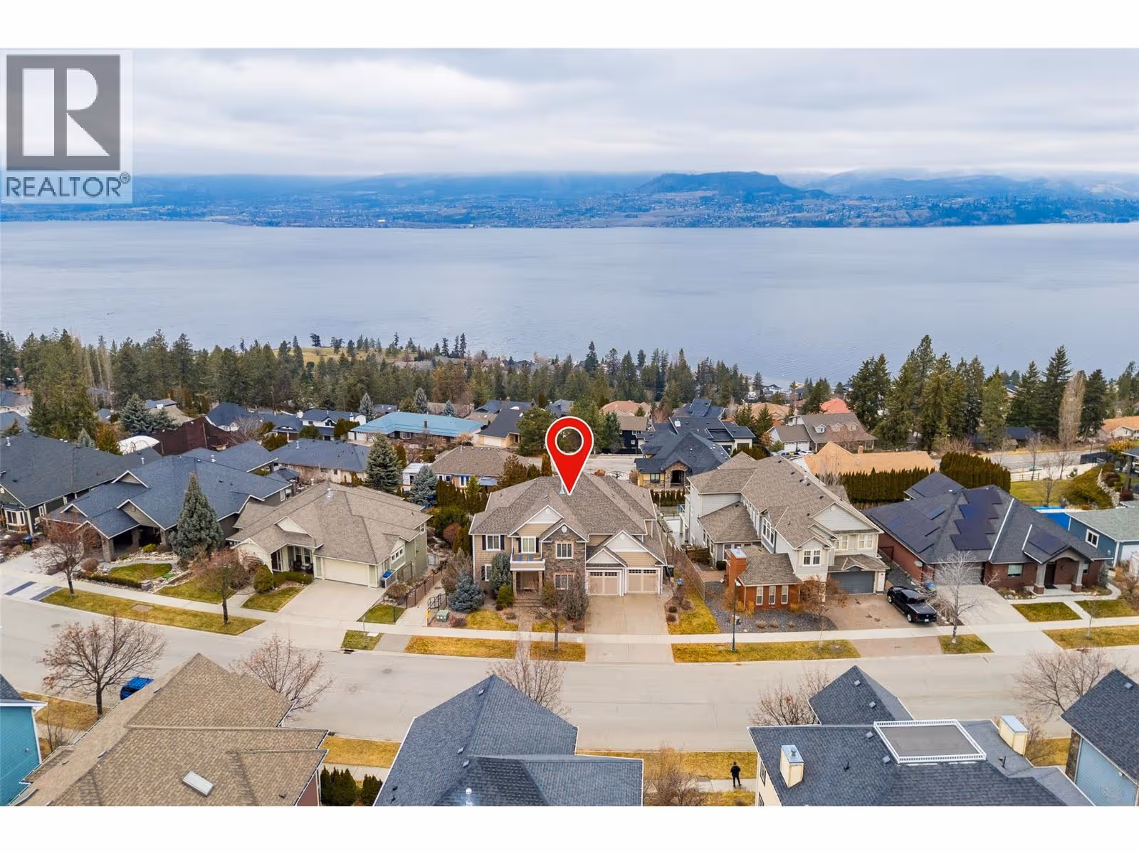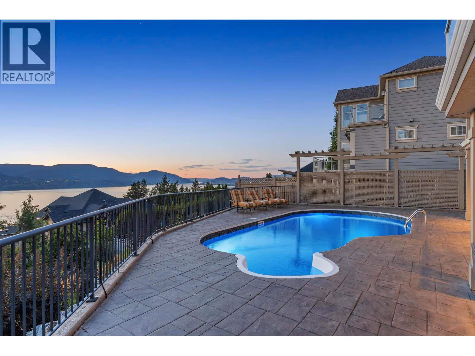 Panoramic views of Okanagan Lake define this stunning residence in prestigious Kettle Valley. Offering over 5,500 sq ft of thoughtfully designed living space, this 5 bed + den/ 5 bath home is ideal for families who value space, function, and effortless entertaining. The main level features high ceilings, an open-to-above design, an updated kitchen with generous counter space, dining area, den/office, and the convenience of laundry, pantry, and double-car garage all on one floor. Upstairs, the large primary bedroom impresses with a 6 piece ensuite, walk-in closet, a private balcony with breathtaking views, while boasting an additional loft space with it's own private balcony and two additional bedrooms (one with another private balcony). The lower level is perfectly suited for kids, guests, or entertaining, complete with a spacious rec room, wet bar, cold room, two bedrooms, two bathrooms, ample storage, and a separate entrance leading directly to the pool deck. Outside, enjoy a large heated pool with an expansive, fully fenced deck area, including covered spaces ideal for hosting, relaxing, and taking in unforgettable views. Updates throughout include flooring, carpets and bathroom vanity countertops. Situated in a highly-desirable area, you're walking distance to parks, an elementary school, a convenience store, and public transit right at your door and only a 5 minute drive to save-on foods, shoppers, and Starbucks. Contact us today to book your private showing today! (id:62999)