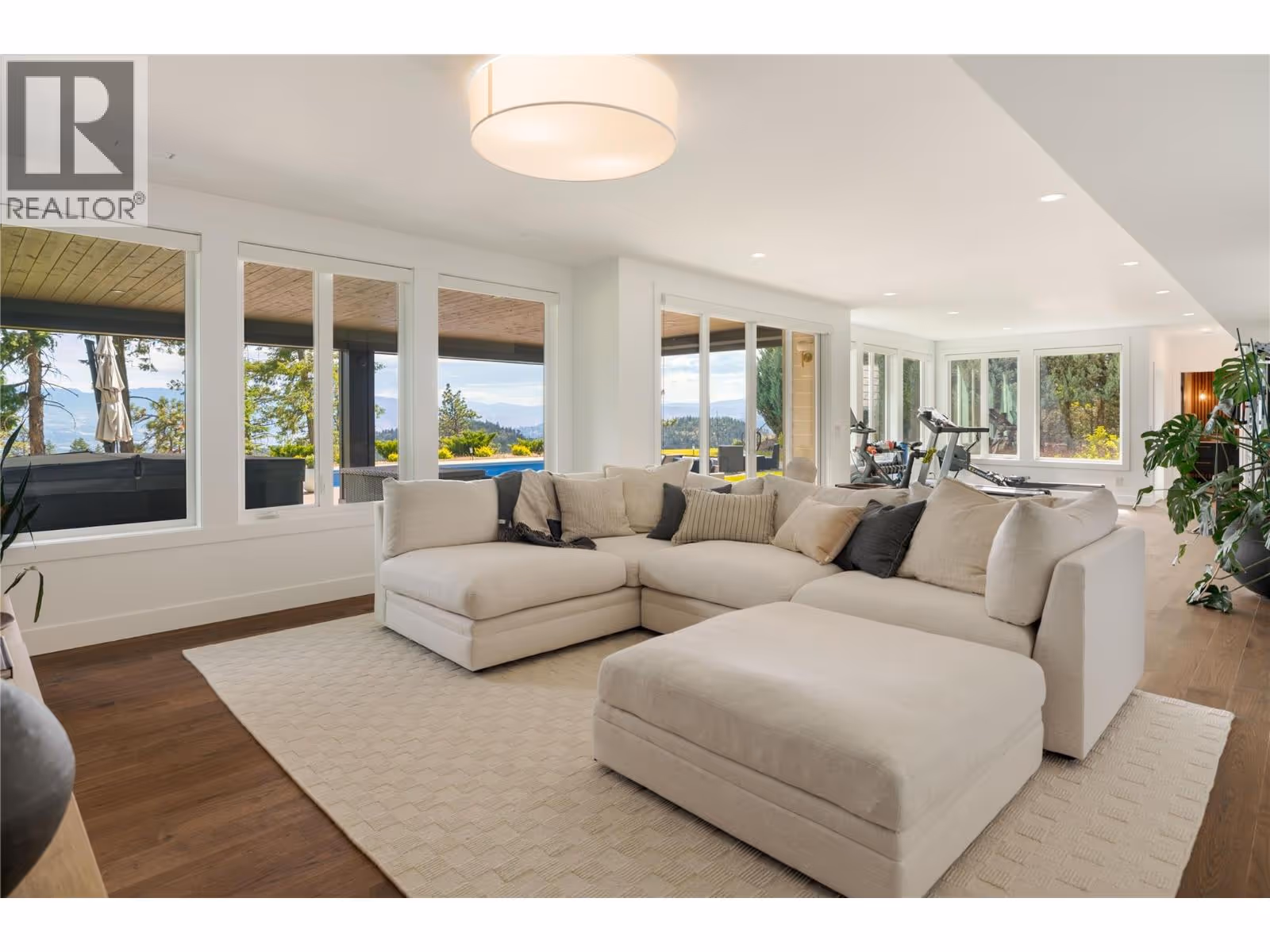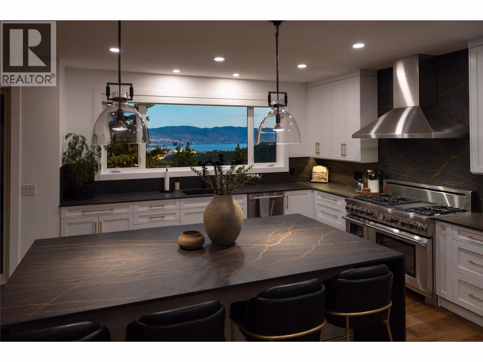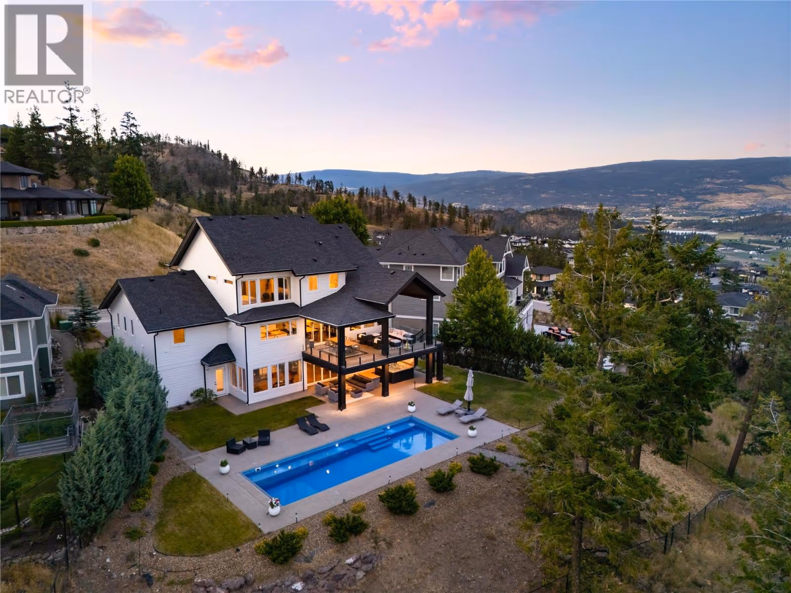 Completely renovated from top to bottom, this breathtaking residence embodies refined living in Wilden—Kelowna’s most coveted enclave. The striking modern exterior with crisp white & black accents makes a bold statement, setting the stage for the exceptional design inside. Expansive windows frame captivating lake & mountain views, while soaring ceilings & a stunning floor-to-ceiling fireplace create a grand yet inviting atmosphere. The designer kitchen is a showpiece, featuring a massive Dekton island, 6-burner Thermador range, butler’s pantry, beverage centre & seamless flow to the covered deck—ideal for entertaining. Upstairs, the primary suite is a private sanctuary with sweeping views & an ensuite that rivals a luxury spa, complete with heated floors & a double rain shower. Two additional bedrooms & a full bath complete the upper floor. The lower level offers ultimate versatility with engineered hardwood: an elegant family lounge, custom wine cellar, gym space, guest bedroom & a bathroom with direct access to the outdoor retreat. Step outside to the saltwater pool with auto cover, hot tub & multiple lounging areas—surrounded by protected green space for unparalleled privacy. Notable features include real hardwood throughout the rest of the home, a 3-zone furnace, 240V EV-ready 3-car garage, electric window coverings, UV-filtering windows & solid 8ft doors. A true legacy home—where sophisticated design meets everyday comfort in an irreplaceable setting. (id:62999)