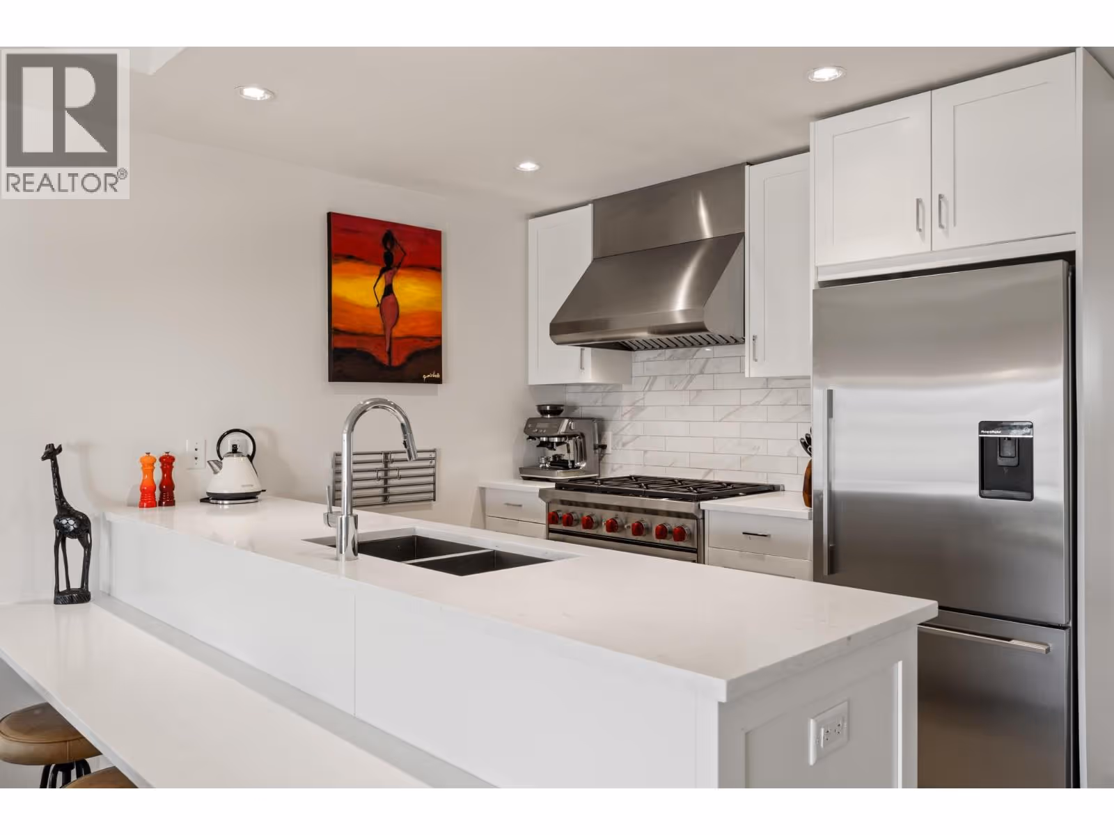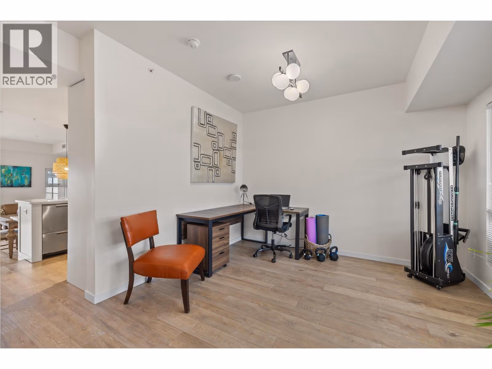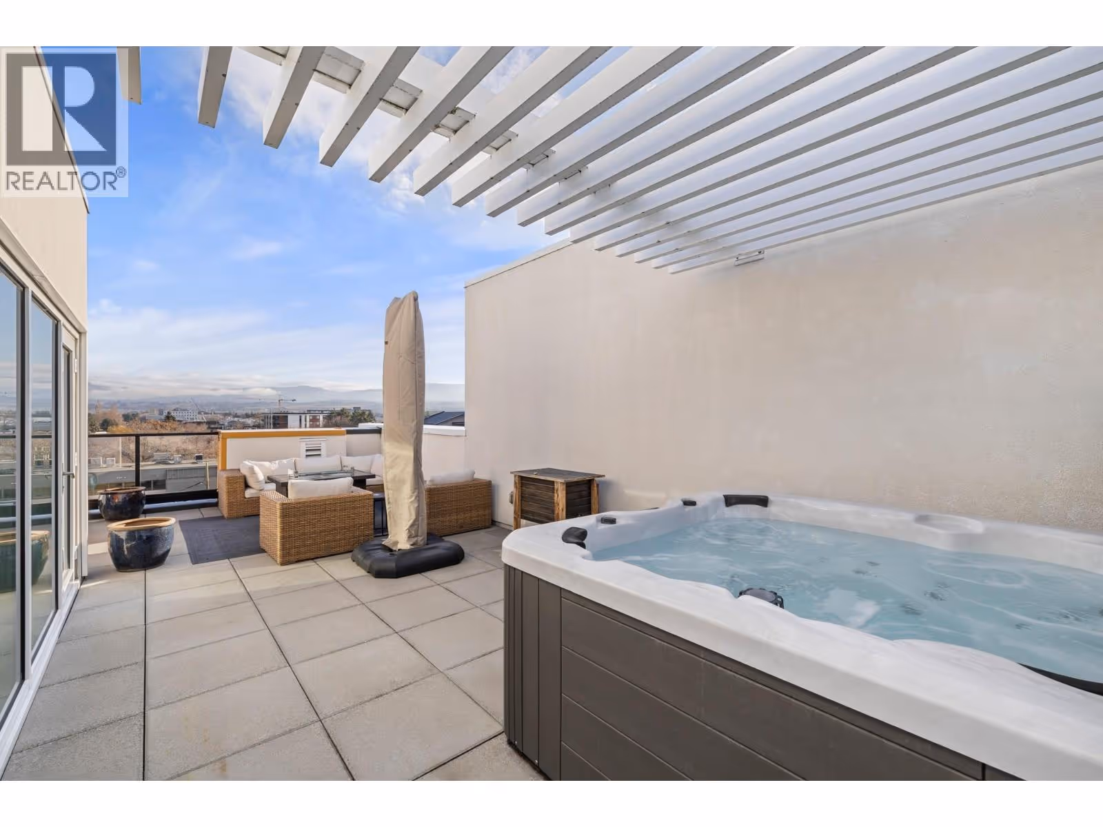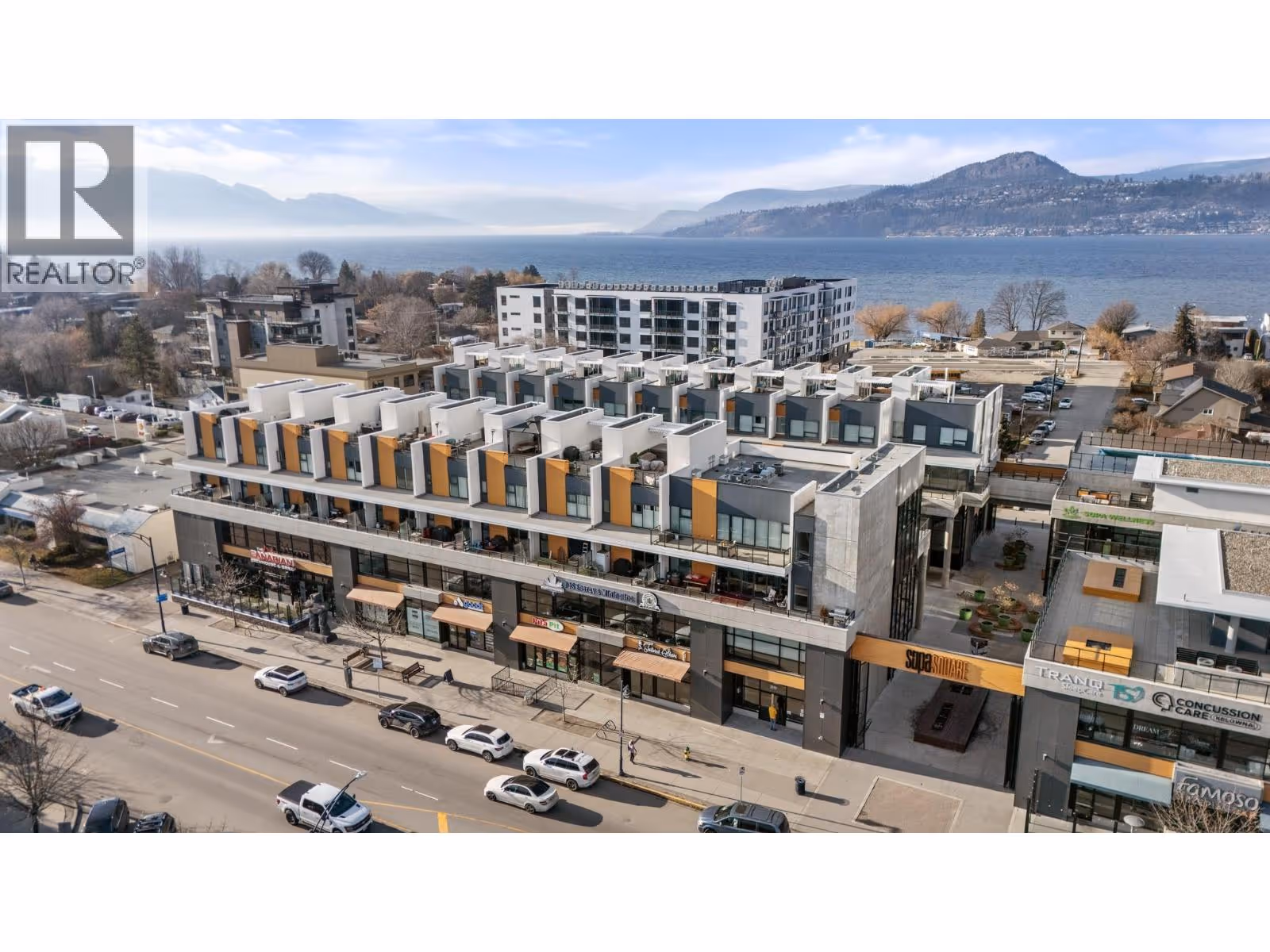 Welcome to luxury living at SOPA Square. This exceptional townhouse-style residence offers breathtaking mountain views, beautiful eastern exposure with glowing morning light, and rare privacy—highlighted by your own rooftop deck complete with a hot tub and peek-a-boo lake views. The interior delivers a true boutique, high-end feel with premium Wolf and Fisher & Paykel appliances, a massive kitchen island, and an open-concept layout that flows seamlessly to a spacious outdoor deck—perfect for entertaining or unwinding against a stunning mountain backdrop. Featuring two generous bedrooms, each with its own ensuite, plus a large den easily convertible to a third bedroom, this home lives large and feels private with its own entrance and patio. Enjoy the convenience of two secure parking stalls with extra-high ceilings—ideal for oversized vehicles and trucks. Set within a safe, secure, and beautifully landscaped third-level courtyard, residents also enjoy access to SOPA’s first-class amenities including a lakeview lap pool, hot tub, gym, fire pit lounge, and private boardroom. All of this is located in the vibrant Pandosy Village, just steps to boutique shopping, restaurants, coffee shops, yoga studios, and more. (id:62999)
