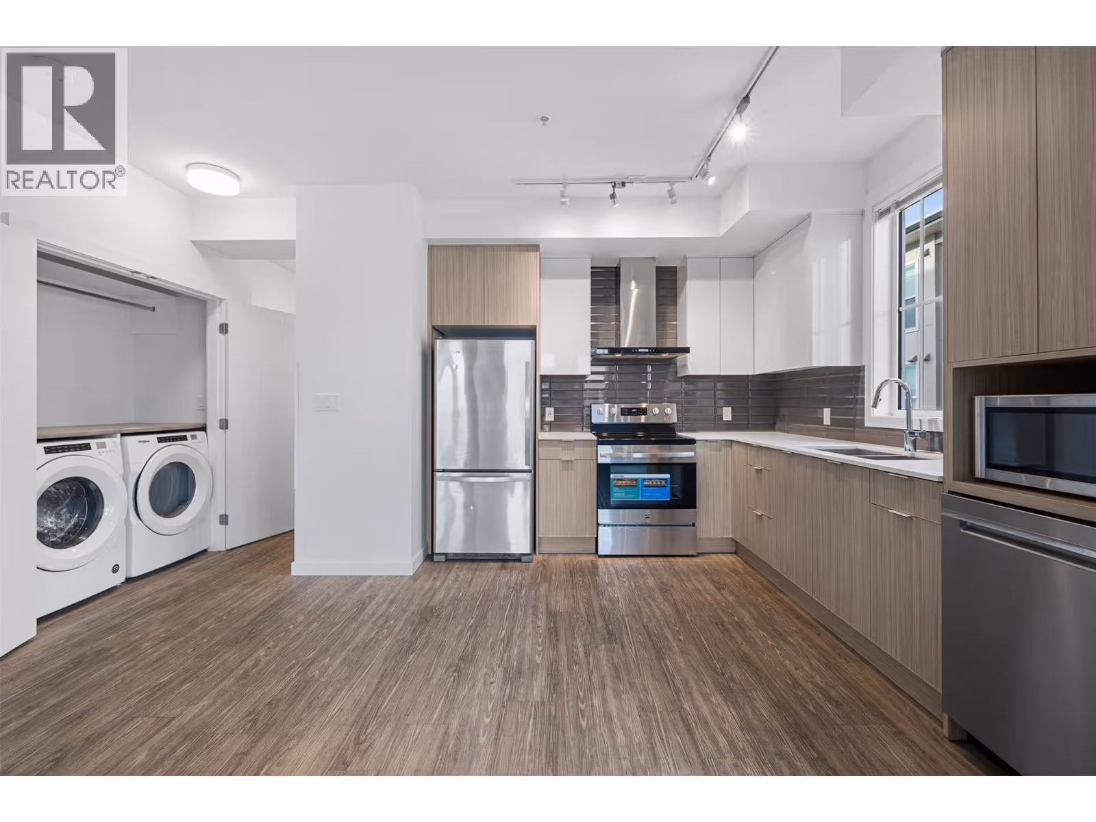 Welcome to URBANA at Central Green, a LEED-certified building designed for energy efficiency with high-efficiency heating and fresh air circulation. This bright corner 2-bed, 2-bath unit features extra windows, 9-ft ceilings, and a split-bedroom layout for added privacy.The modern kitchen offers quartz countertops, dual-toned cabinetry, and stainless steel appliances. Durable acoustically enhanced vinyl plank flooring throughout the main living area, plus front-loading washer/dryer. Includes one secure underground parking and a locker. Enjoy expansive green space with community gardens, a fenced dog park, and playground. Two pets allowed (no size restrictions), rentals permitted, and BBQ allowed. Developed by Mission Group and centrally located close to downtown amenities.Vacant and Move-in ready. (id:62999)