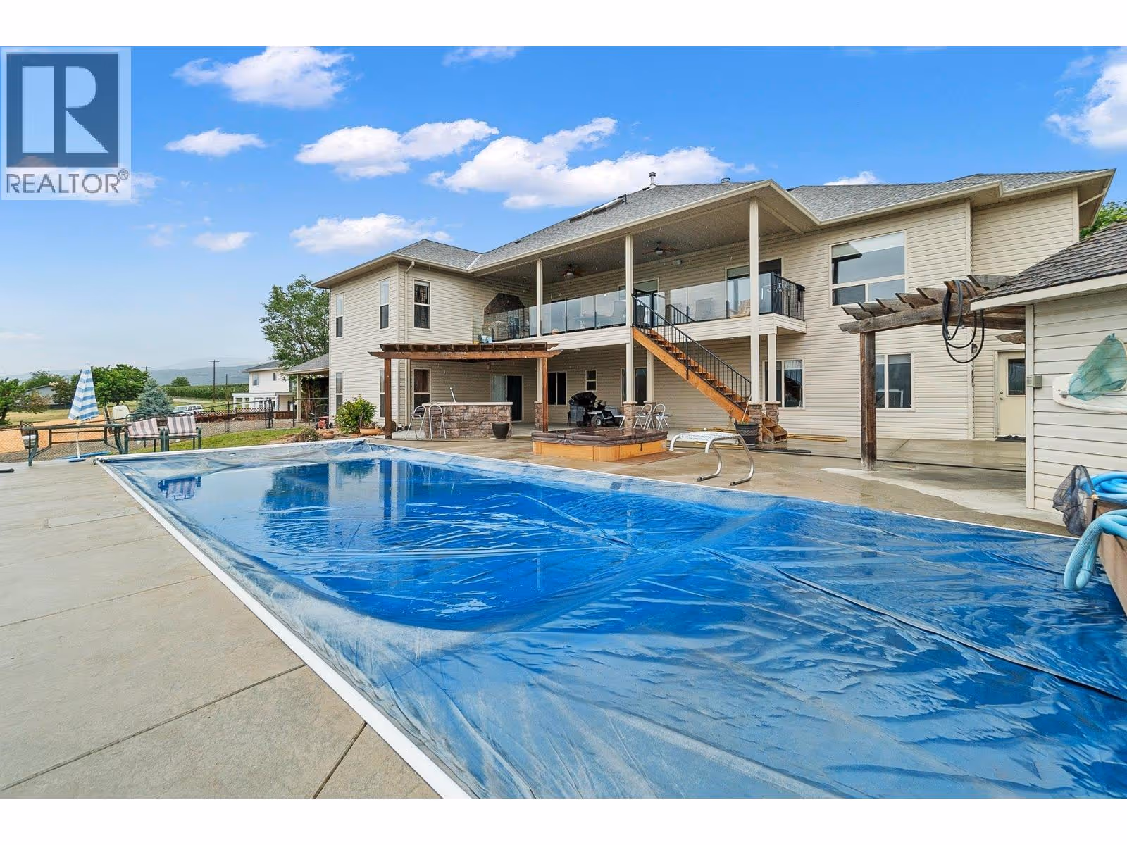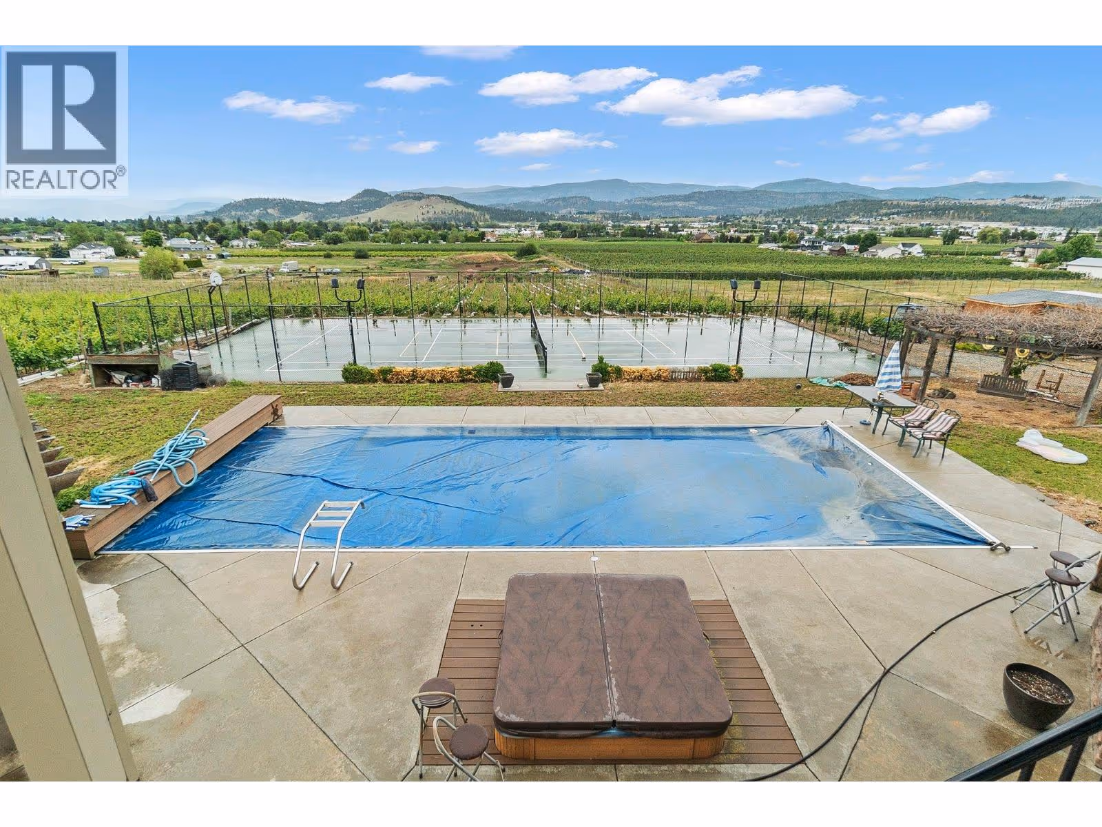 **Stunning 8-Acre Estate with Two Luxury Homes and Breathtaking Views** Discover unparalleled luxury on this 8-acre estate, featuring two executive rancher homes with panoramic 180-degree views of mountains, valley, and lake. **Home #1:** This opulent residence boasts a sparkling inground pool with an auto cover and swim jets, a private tennis court, and a hot tub. Inside, enjoy a huge island kitchen, a state-of-the-art main floor home theatre, and a bright, spacious home gym. The master retreat offers an oversized ensuite and walk-in closet. With 5 large bedrooms, 5 bathrooms, a self-contained suite, and a suspended slab three-car garage over a heated workshop, this home is designed for ultimate comfort and convenience. **Home #2:** This charming home features 4 bedrooms and 3 bathrooms, an open great room plan, a large island kitchen, and a vaulted den. The walk-out basement includes a spacious rec area with a wet bar. Additional highlights include a suspended slab double garage over a workshop. With ample acreage for a vineyard or orchard, this estate offers endless possibilities. Schedule your viewing today and experience the epitome of upscale living! (id:62999)