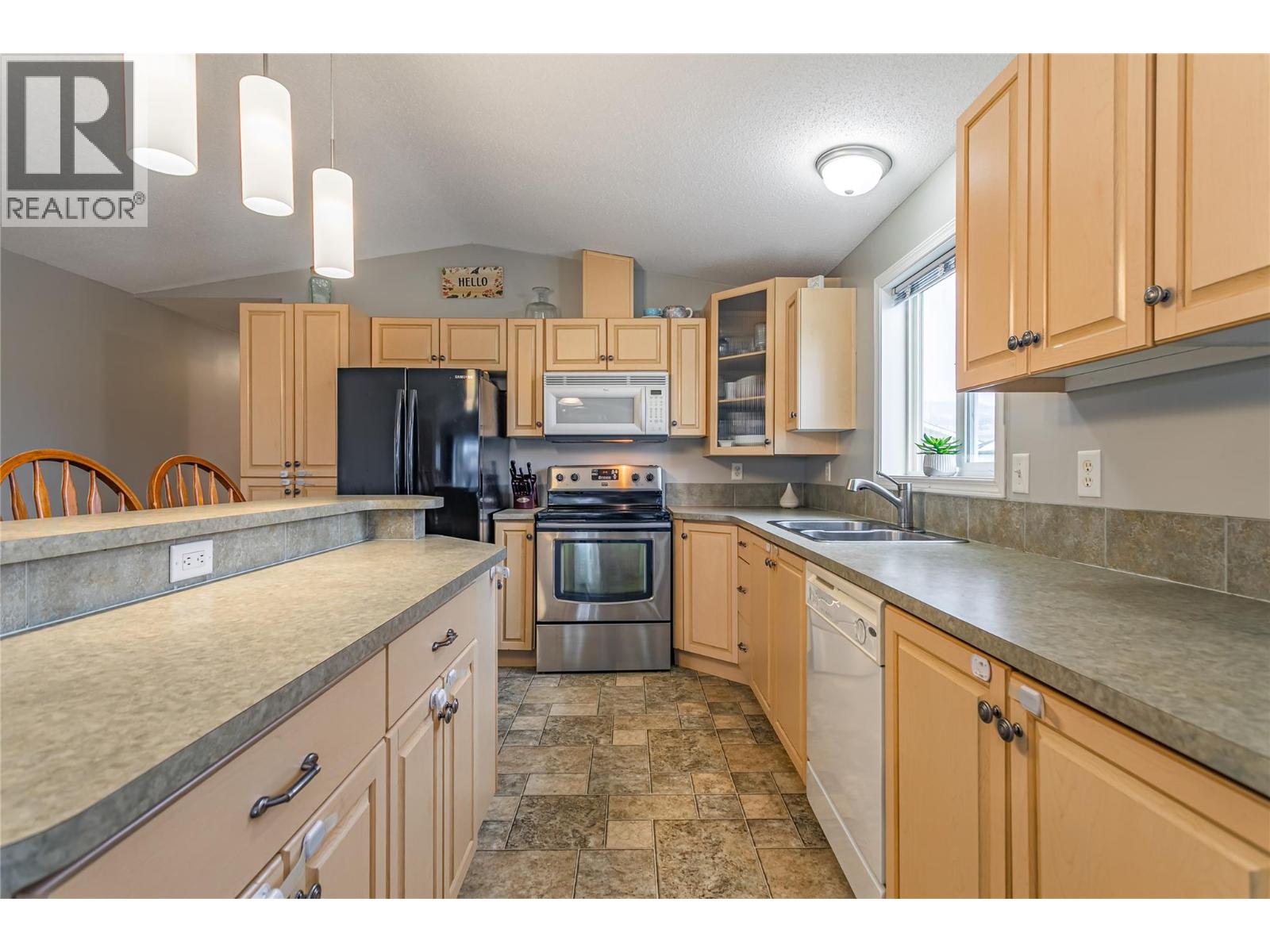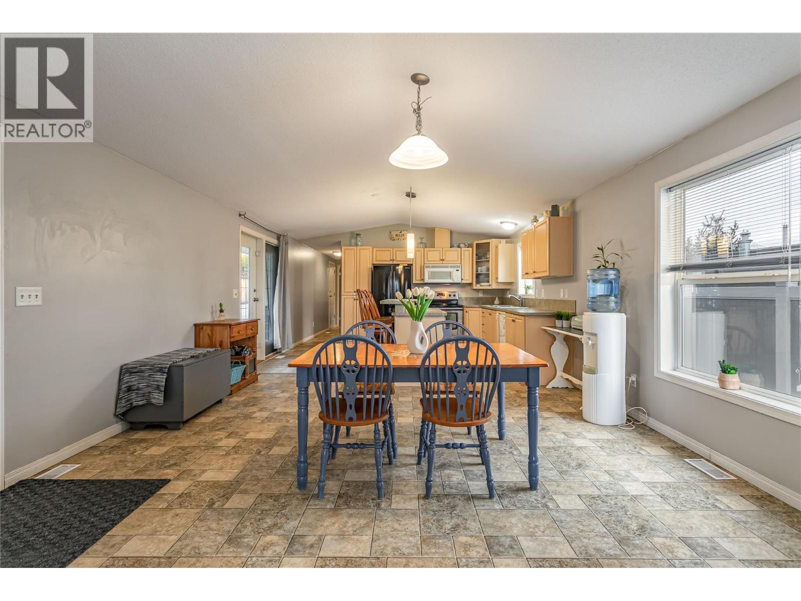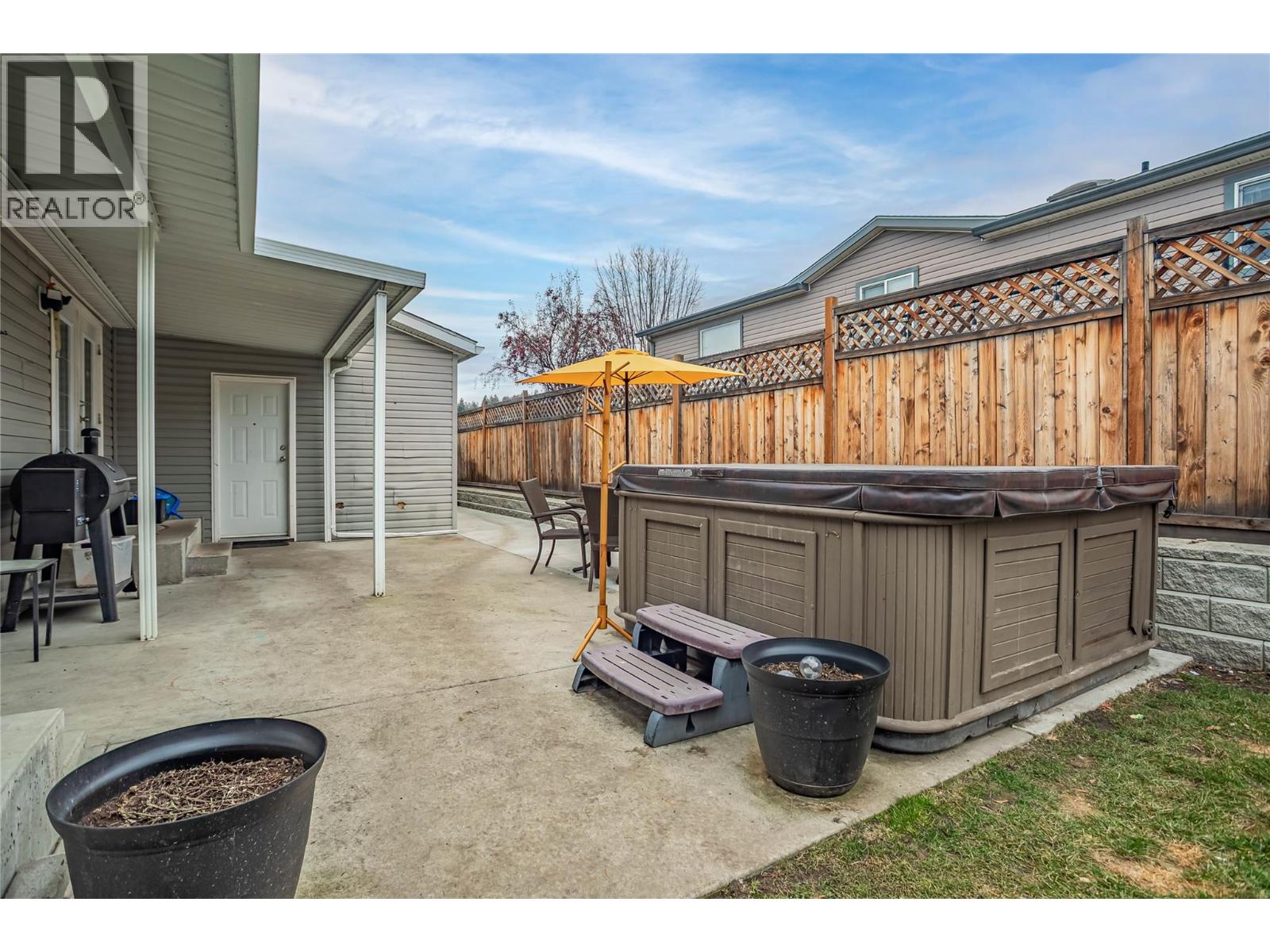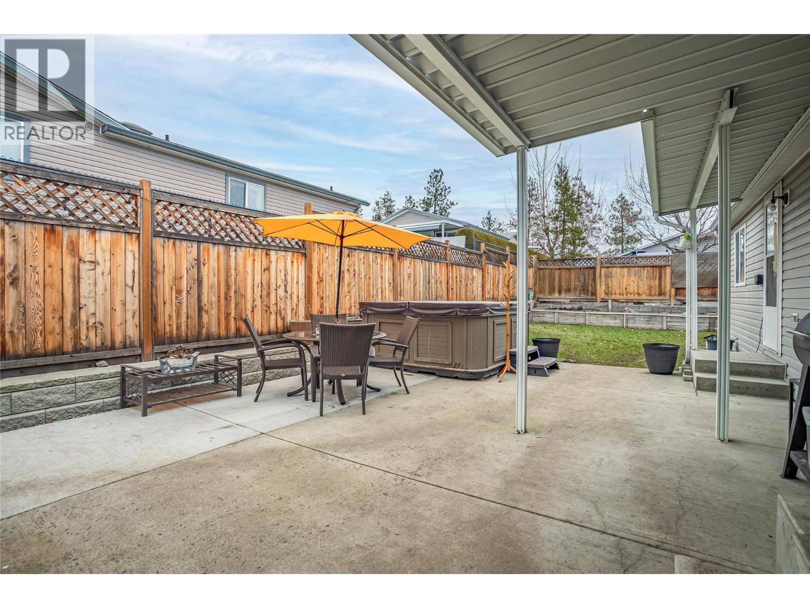 A fantastic opportunity for first-time buyers, investors or families looking to enter the market in the desirable College Heights location. This well-appointed home offers two bedrooms and one bathroom with an open-concept living area featuring a bay window that fills the space with natural light. The generous dining area flows seamlessly into the open-plan kitchen. Additional features include forced-air heating with central air conditioning, Underground irrigation, central vacuum rough-in, an all-in-one washer and dryer, vaulted 9-foot ceilings and a skylight in the bathroom. Step outside to a large, private patio and garden area, perfect for relaxing or entertaining. The fully fenced yard offers excellent privacy, with ample garden space for flowers, vegetables, or outdoor enjoyment, and includes a hot tub for year-round use. Parking is well accommodated with two driveway spaces plus a single-car garage. Enjoy no pet restrictions and a low monthly bare land strata fee of just $145. Conveniently tucked away near the UBC Okanagan, KGH airport and local amenities. Outside, this home offers beautiful mountain views and stunning Okanagan sunsets. A great alternative to renting, own your own home today! (id:62999)