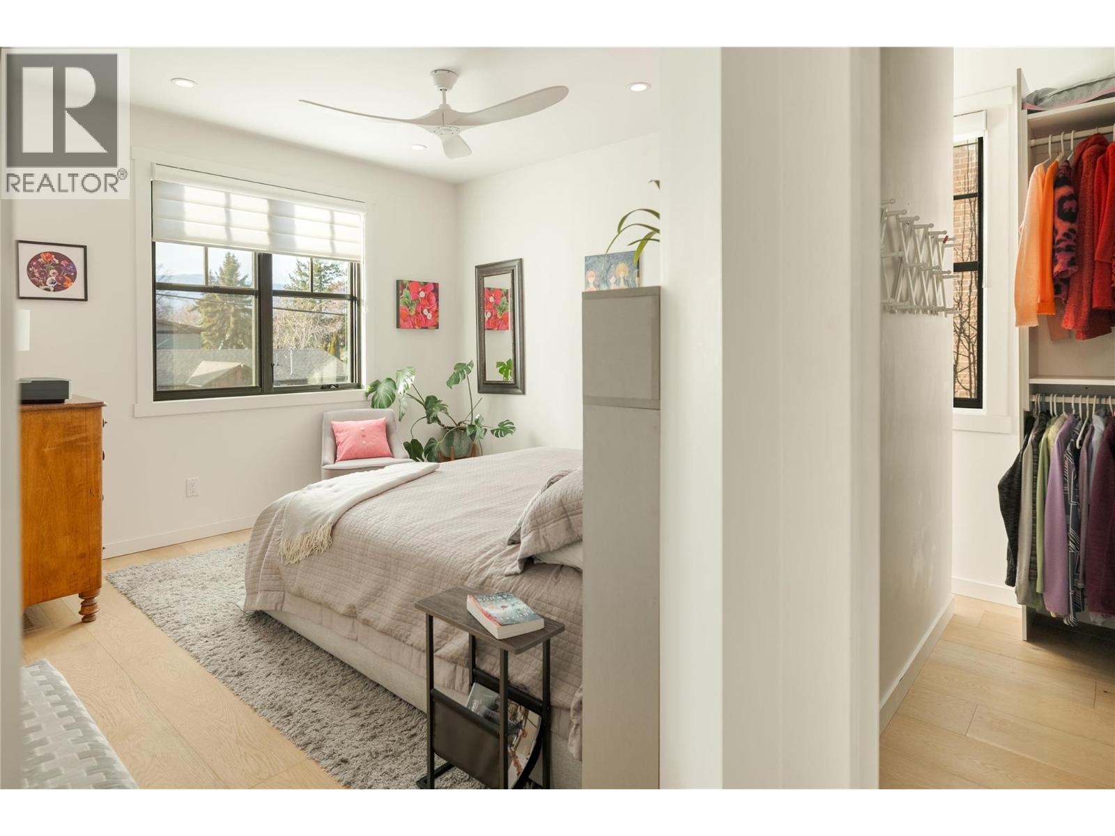Life here unfolds effortlessly. An evening walk to the lake becomes part of your routine, morning coffee from your favourite cafe is just down the street. Dinner reservations, boutiques, everyday essentials — all within a few steps of home. Set in the heart of Pandosy Village, this is where urban energy meets relaxed Okanagan living. The timeless brick exterior offers presence & charm, while beyond the gate a private, fenced patio with louvered pergola creates an inviting outdoor retreat- ideal for summer dinners, quiet mornings, or gathering with friends. Inside, wide plank wood flooring carries throughout the main level, grounding the open-concept design. The living room, anchored by a striking fireplace, invites conversation & comfort. Custom millwork & thoughtfully designed built-ins add both function & architectural interest. Patio doors extend the living space outdoors, blurring the line between inside & out. The dining area easily hosts family dinners & celebrations, flowing seamlessly into a beautiful kitchen designed to impress & perform. A generous island becomes the natural gathering point, complemented by a Bertazzoni gas range, Fisher & Paykel dual dishwasher, custom hood vent, built-in wine fridge, & two-tone cabinetry. A discreet powder room and oversized single garage with abundant storage complete the main level. Upstairs, a versatile loft offers flexibility for a home office, reading nook, or creative space. The primary suite delivers a sense of retreat, featuring a spa-inspired ensuite with soaker tub, seamless glass shower, dual vanity, & heated floors. The second bedroom adapts beautifully with its integrated Murphy bed, while a full bathroom & well-designed laundry room complete the upper level. This is refined, low-maintenance living in one of Kelowna’s most walkable & sought-after neighbourhoods — designed for those who value style, connection, & a lifestyle where everything is within reach. (id:62999)