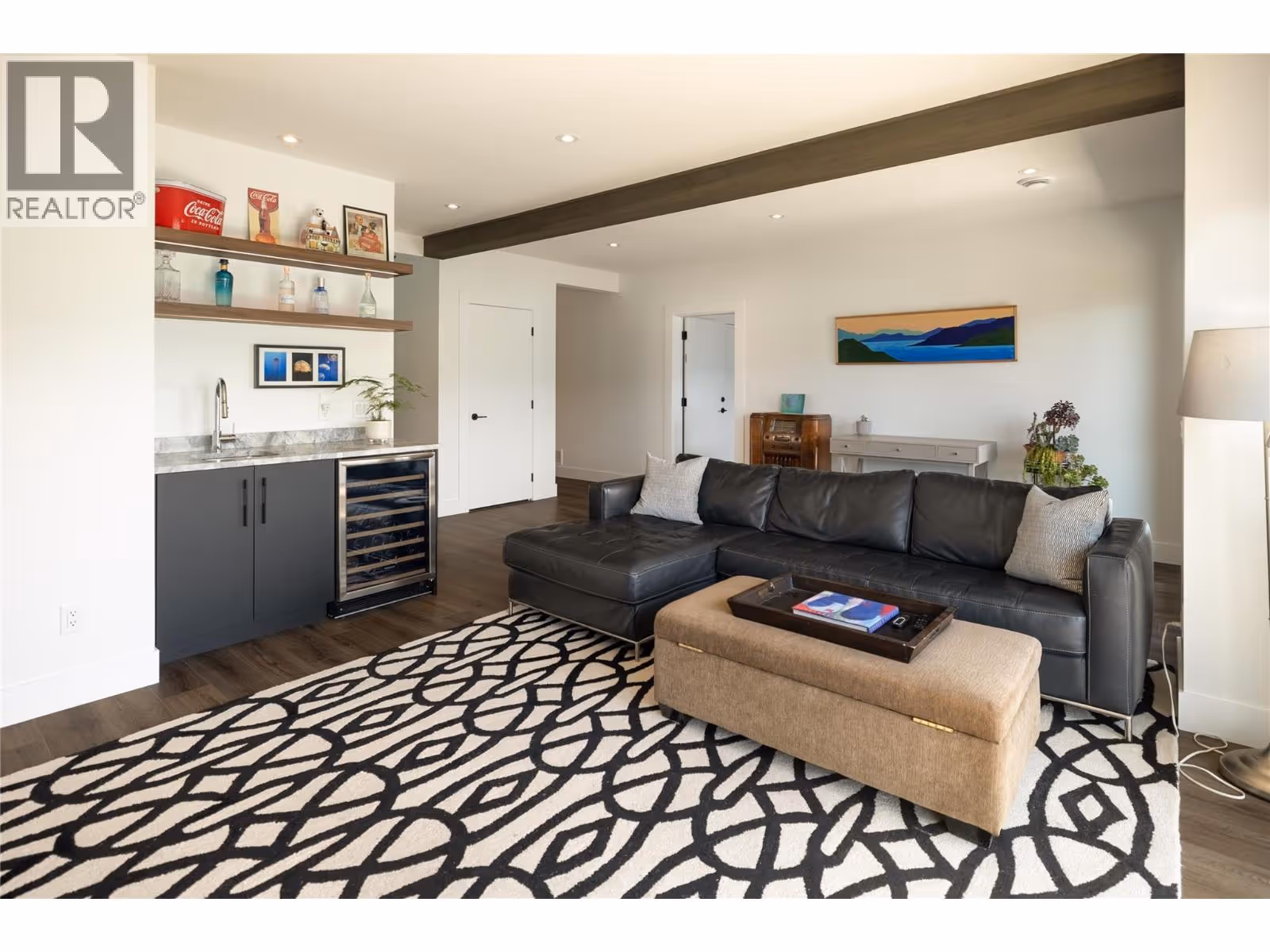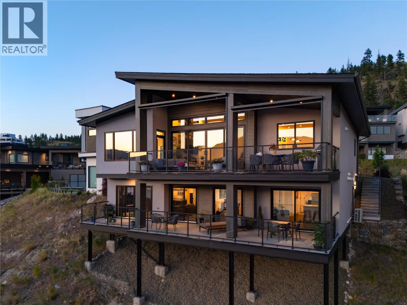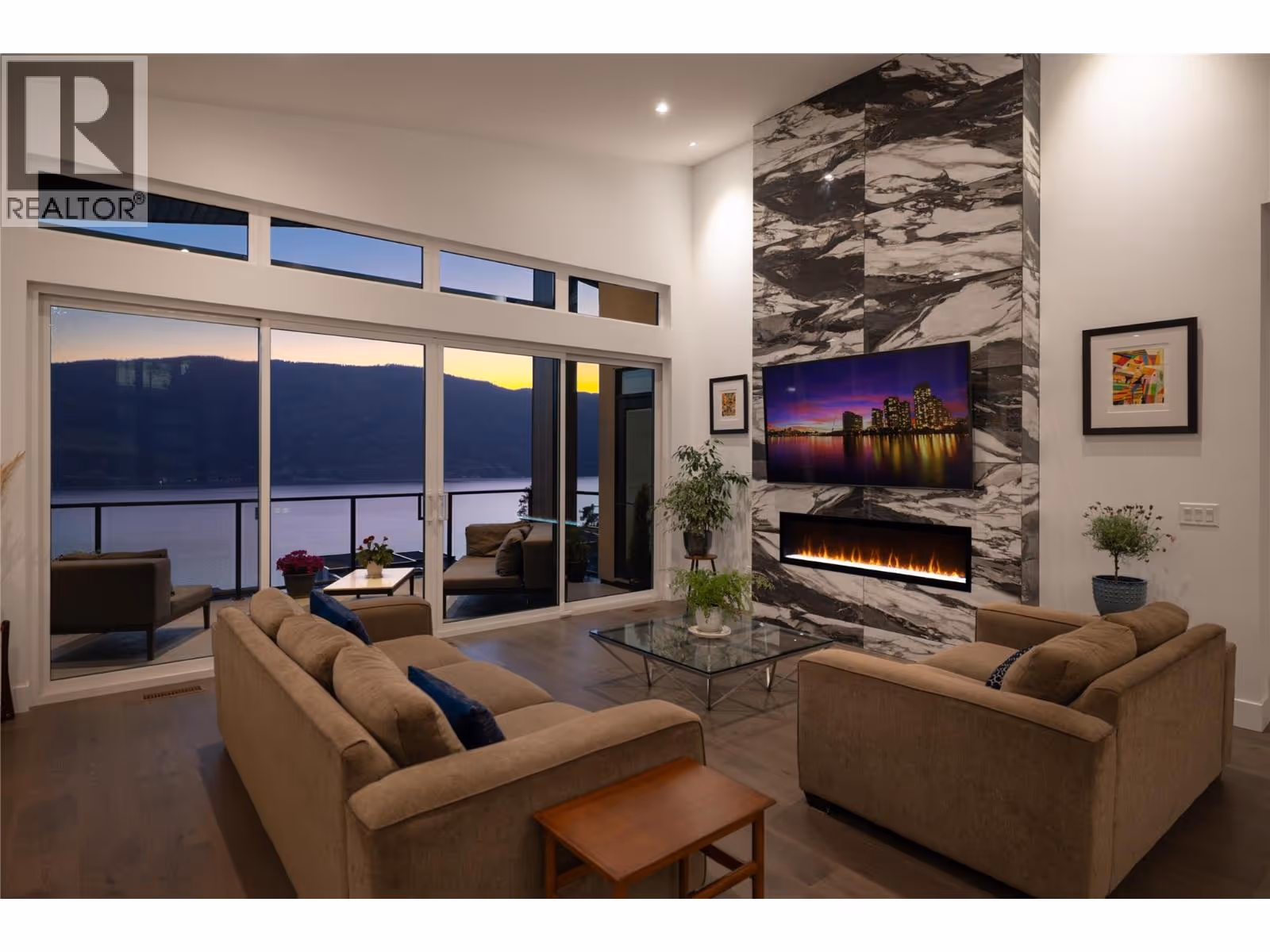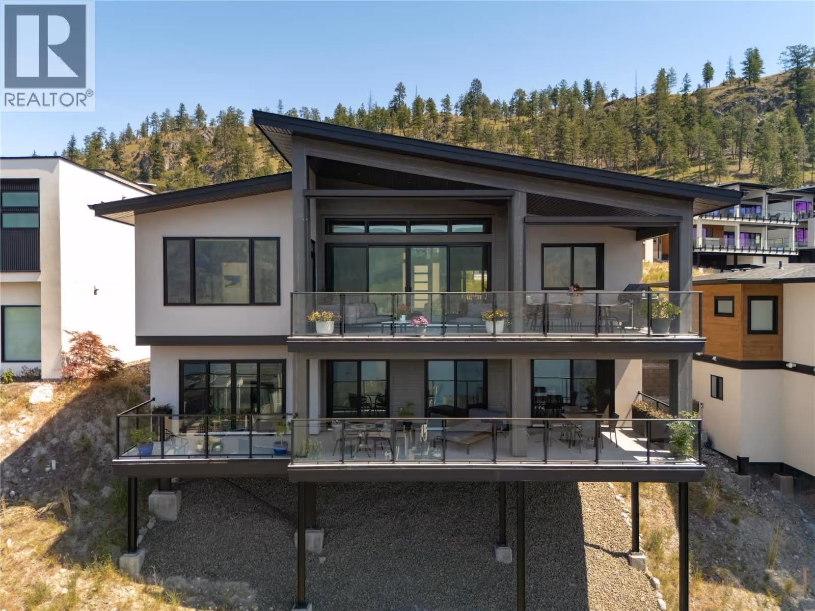 This stunning 6-bedroom, 4-bathroom modern contemporary home in McKinley Beach offers 3,642 SF of thoughtfully designed living space, perfectly positioned to take in the panoramic lake views from both levels. Ideally situated on a dead end street, the home is walking distance to hiking trails, the lake, amenities, & the upcoming Azhadi winery.The main floor features a bright, open-concept layout with expansive windows to take in the incredible views, & a stylish tile fireplace in the great room. The show-stopping kitchen includes a massive quartz island, an induction range, oversized fridge & freezer, and walk-in pantry. 2 large decks finished in Flexstone extend your living space outdoors, with the upper deck featuring power shades to keep you cool on warm summer days.The spacious primary suite offers breathtaking lake views and a spa-like en-suite complete w/ a soaker tub, walk-in glass shower, & heated floors.A 2nd bedroom & full bathroom complete the main level. Downstairs features a rec room with a cozy fireplace, a wet bar & wine fridge, 2 more bedrooms & a full bathroom. The home includes a self-contained 2-bedroom legal suite with a lakeview & its own entrance & laundry.Additional features include an oversized double garage, a spacious driveway, and an electric vehicle plug. McKinley Beach amenities include a private marina with boat, kayak, & paddleboard storage, a gym, indoor pool, hot tub, yoga studio, tennis & pickleball courts, playground & community gardens. (id:62999)