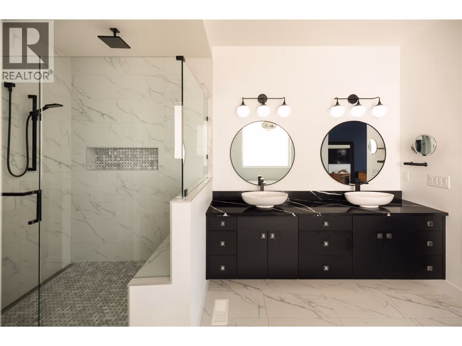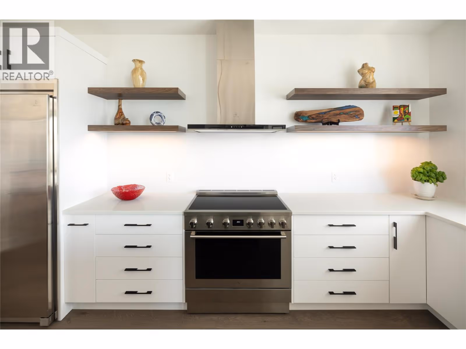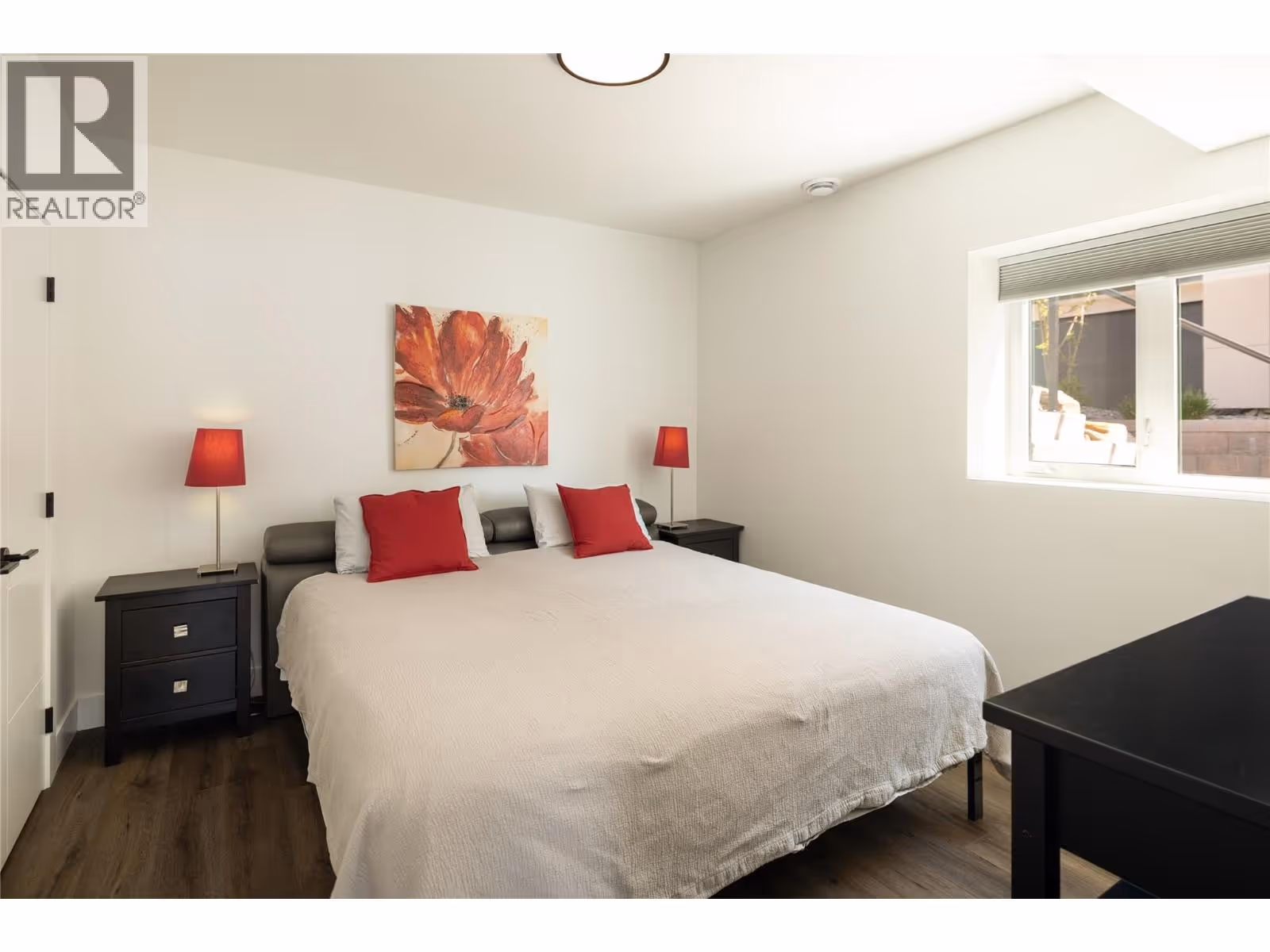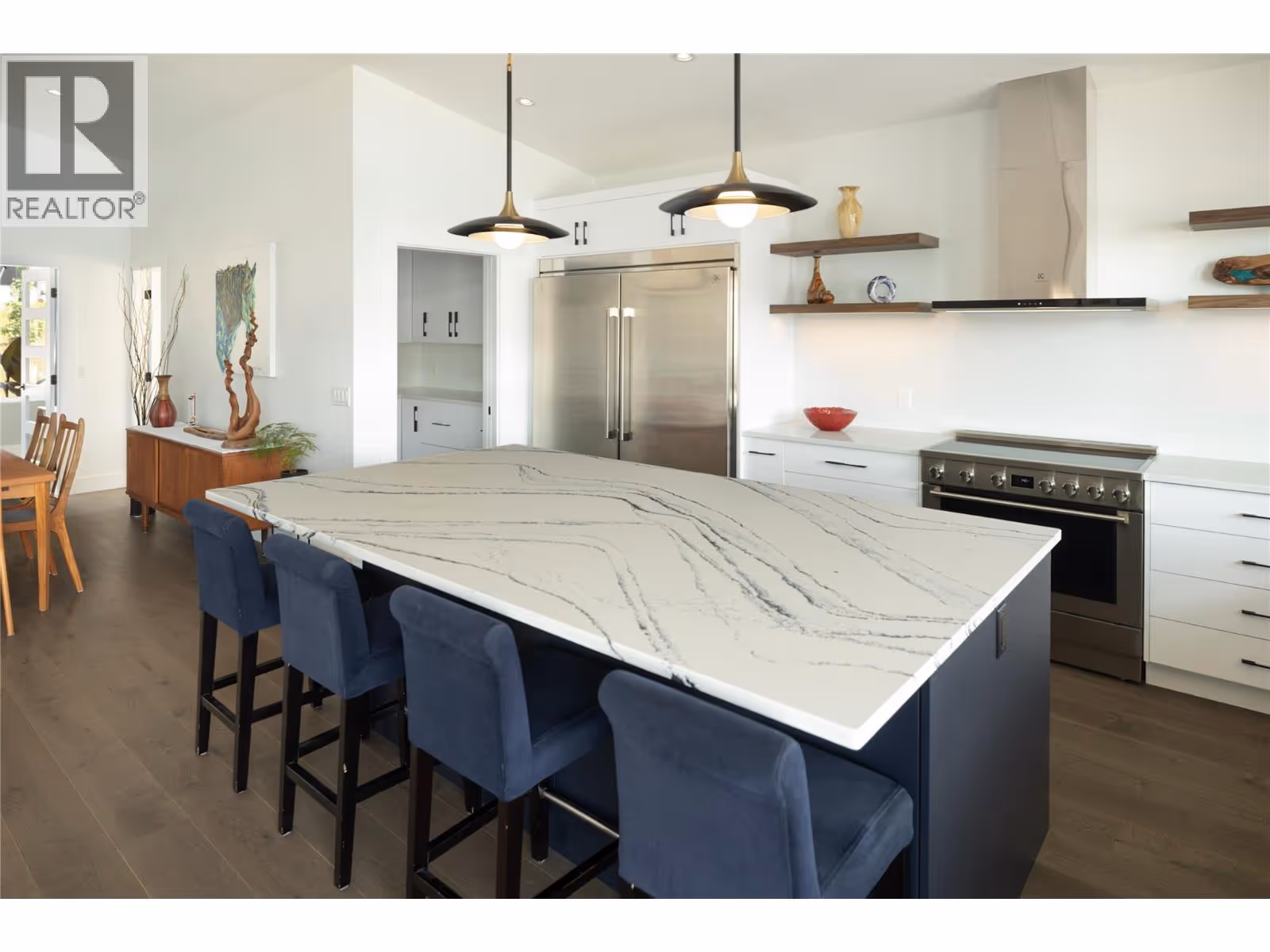 This stunning 6-bedroom, 4-bathroom modern contemporary home in McKinley Beach offers 3,642 SF of thoughtfully designed living space, perfectly positioned to take in the panoramic lake views from both levels. Ideally situated on a dead end street, the home is walking distance to hiking trails, the lake, amenities, & the upcoming Azhadi winery.The main floor features a bright, open-concept layout with expansive windows to take in the incredible views, & a stylish tile fireplace in the great room. The show-stopping kitchen includes a massive quartz island, an induction range, oversized fridge & freezer, and walk-in pantry. 2 large decks finished in Flexstone extend your living space outdoors, with the upper deck featuring power shades to keep you cool on warm summer days.The spacious primary suite offers breathtaking lake views and a spa-like en-suite complete w/ a soaker tub, walk-in glass shower, & heated floors.A 2nd bedroom & full bathroom complete the main level. Downstairs features a rec room with a cozy fireplace, a wet bar & wine fridge, 2 more bedrooms & a full bathroom. The home includes a self-contained 2-bedroom legal suite with a lakeview & its own entrance & laundry.Additional features include an oversized double garage, a spacious driveway, and an electric vehicle plug. McKinley Beach amenities include a private marina with boat, kayak, & paddleboard storage, a gym, indoor pool, hot tub, yoga studio, tennis & pickleball courts, playground & community gardens. (id:62999)