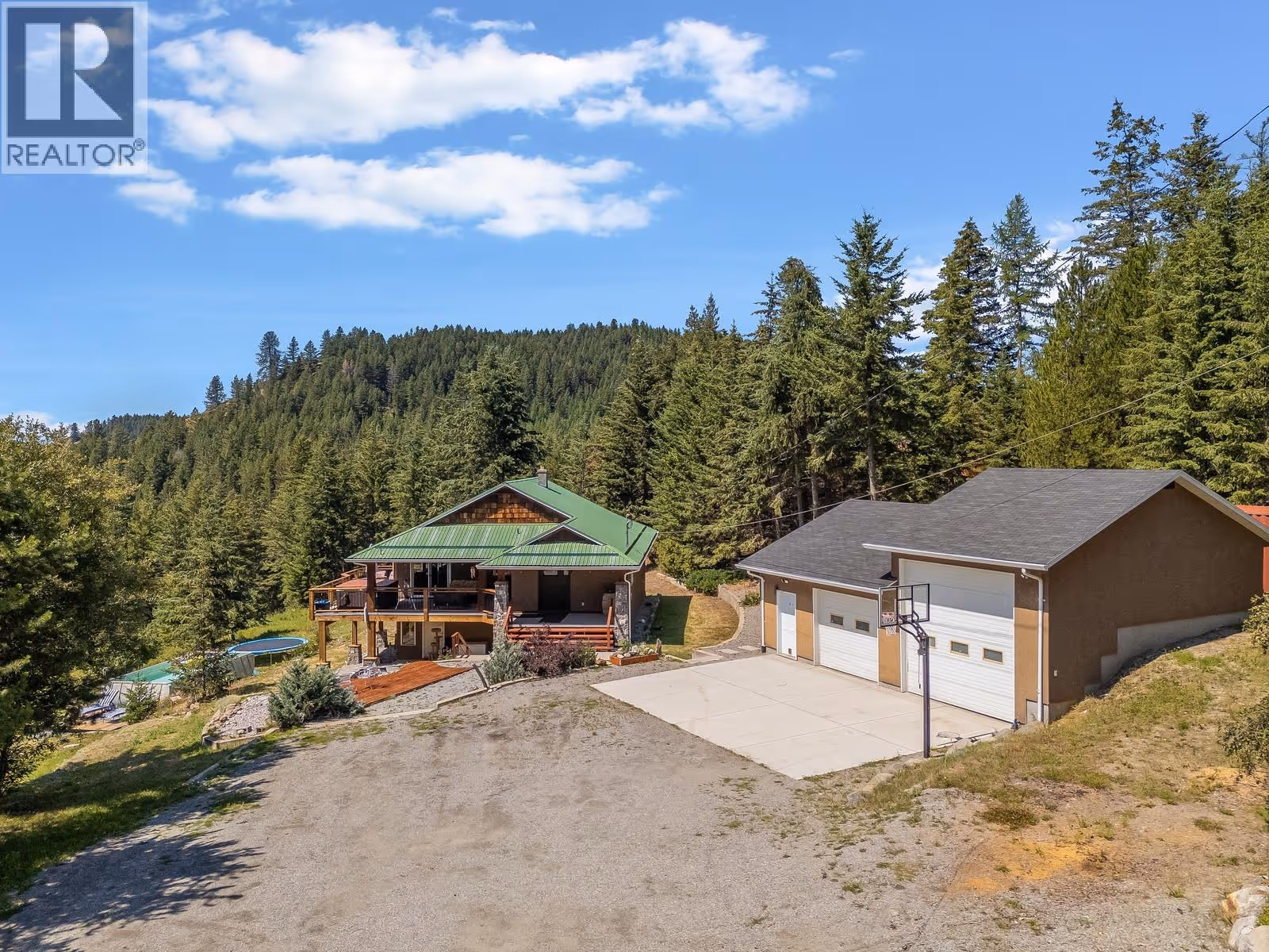 Welcome to 7575 Sun Valley Road, a private 10.03 acre retreat nestled in the peaceful community of Joe Rich. This 3-bedroom + den, 2-bathroom craftsman home offers nearly 2,200 sq.ft. of thoughtfully designed living space with stunning valley and mountain views. Inside, you’ll find rich dark cabinetry, quartz countertops, a stone backsplash, and heated flooring in the main bathroom. The spacious primary suite features an electric fireplace and plenty of natural light. The open-concept layout flows onto a wraparound deck complete with a hot tub, perfect for soaking in the panoramic views. This property is equipped with new windows, a 2019 hot water tank, and a 16 gal/min well pump that was installed in 2019! Also, all plumbing has been updated to PEX! A true highlight is the detached 2-bay shop with 240V and 200 amp service, 15-foot ceilings, 12 ft and 8 ft overhead doors, water, and a wood stove—ideal for hobbyists or trades. There’s also an insulated chicken coop, ready for you to start collecting fresh eggs each morning. Located 30 minutes from Big White Ski Resort and close to small mountain lakes perfect for fishing. You’ll also have easy access to nearby ATV, hiking, and walking trails, all while being just 10 minutes from shopping, groceries, and other amenities. Whether you're looking for space, functionality, or just a quiet place to unwind, this property offers a rare combination of rural living and modern convenience. Schedule your showing today! (id:62999)