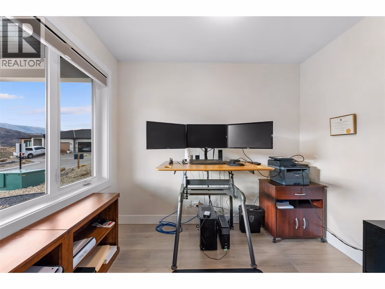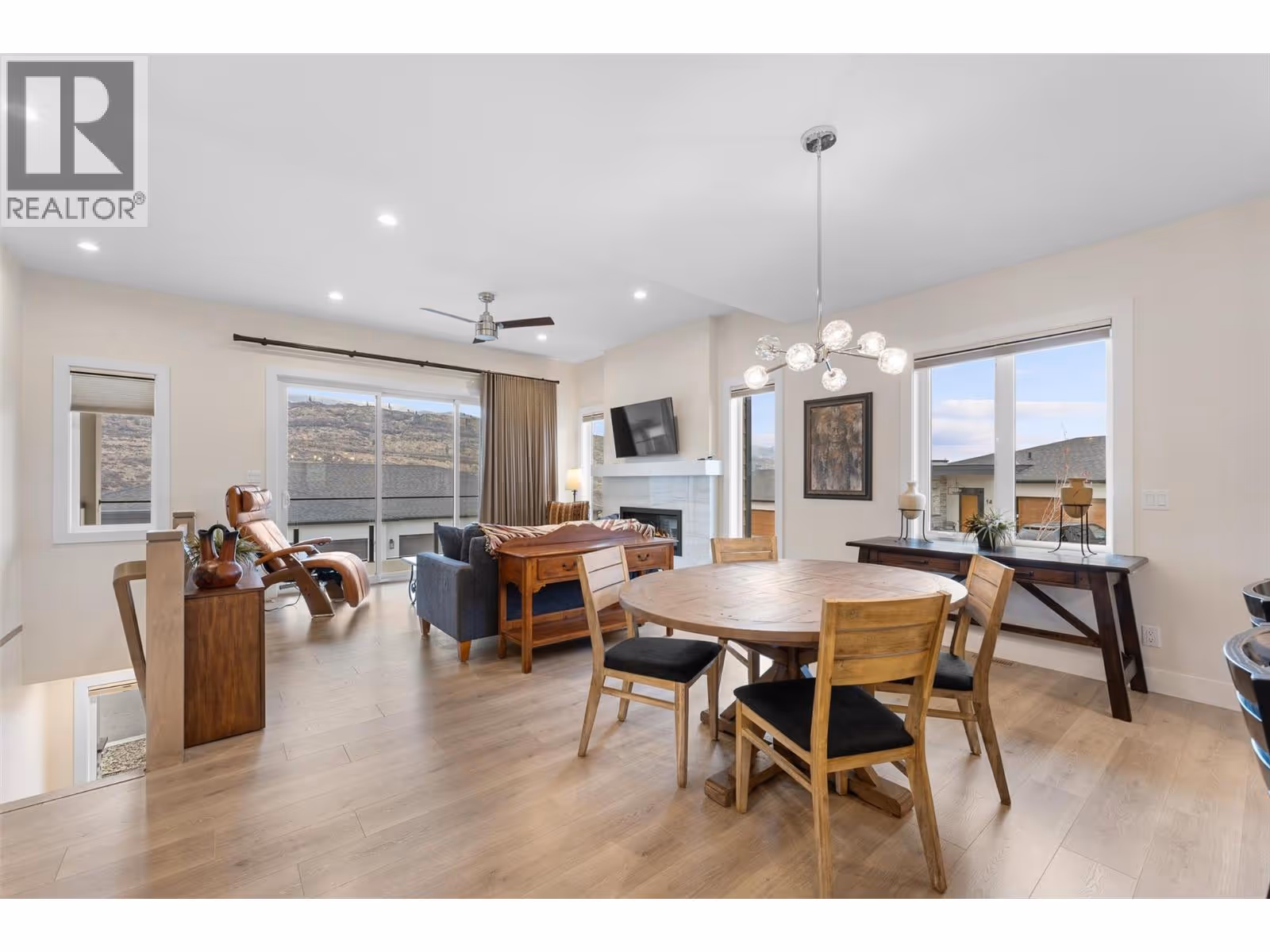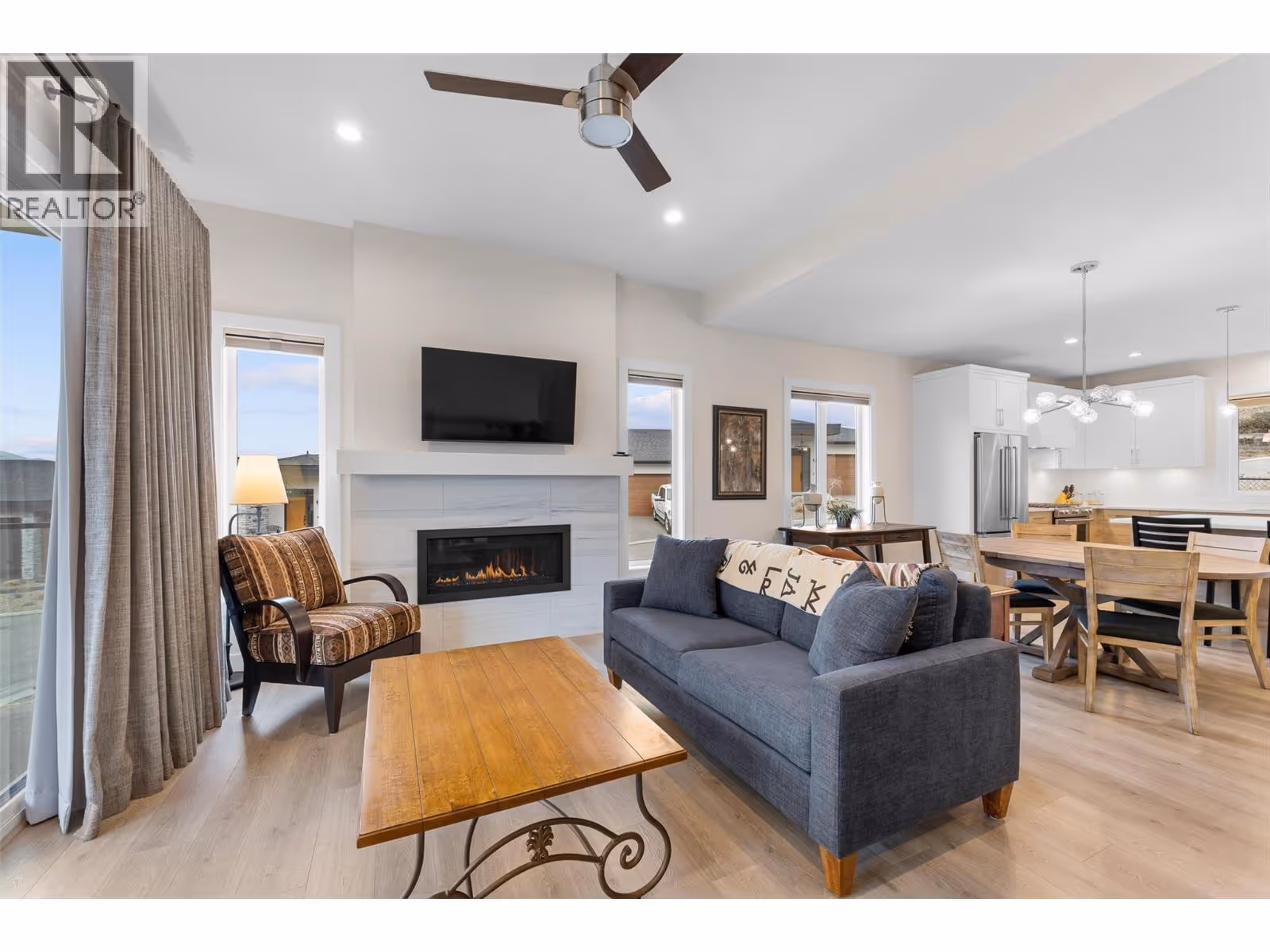 Perched at the edge of Kuipers Peak at South Ridge in the Upper Mission, this corner unit half-duplex has approximately$50K in upgrades. This home was built for people who want to be closer to nature without giving up a single modern convenience. The main level is where the home truly comes alive. High ceilings and natural light pour through generous windows, creating a space that feels both elevated and welcoming. The open kitchen features a large central island with seating for four, two-tone cabinetry, and quartz countertops, flowing seamlessly into the dining and living areas. A gas fireplace anchors the living room, while sliding doors lead to a covered deck with glass railings. The primary suite includes a spa-like ensuite with heated tile floors, a tiled walk-in shower with two shower heads and a built-in bench, plus a walk-in closet. A second bedroom, full bath, butler's pantry with built-in microwave, and laundry complete this level. The lower level offers a bedroom, four-piece bath, dedicated office, and recreation room with a wet bar, ideal for guests or a home gym. Walk out to the fully fenced backyard with a covered patio where sunshades keep you comfortable on warm afternoons. A two-car garage provides parking and storage. Located in a new community with quiet, no-through-access streets, you're three minutes from the new Mission Village shopping center, and steps to the trails of Thomson Flats, where the hills invite you to hike, bike, and explore. (id:62999)