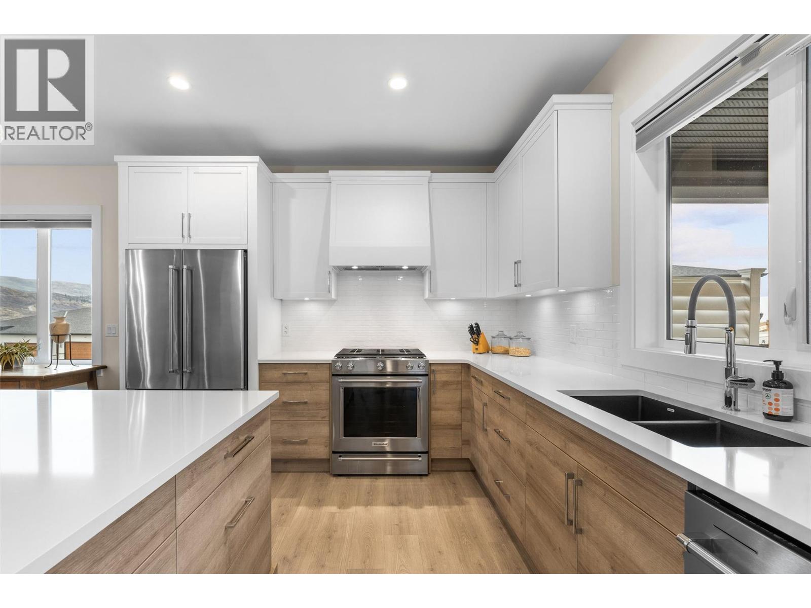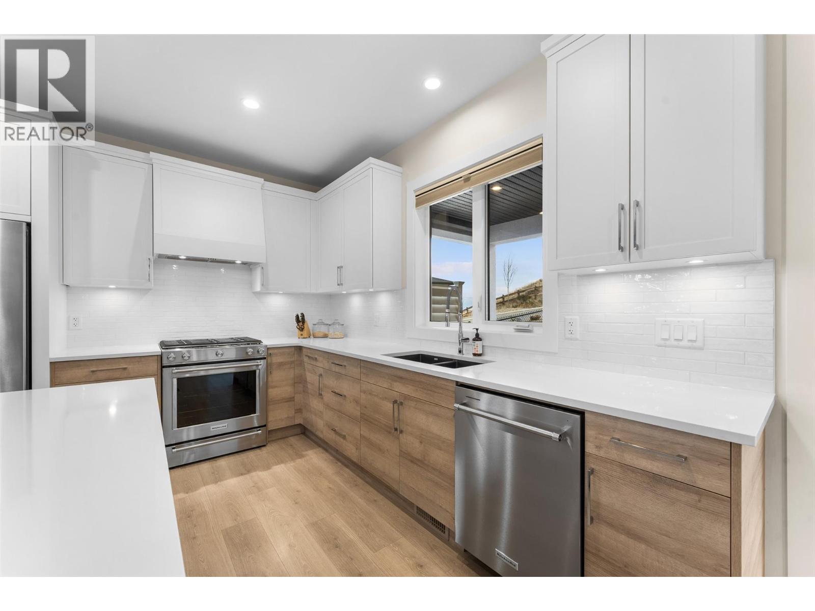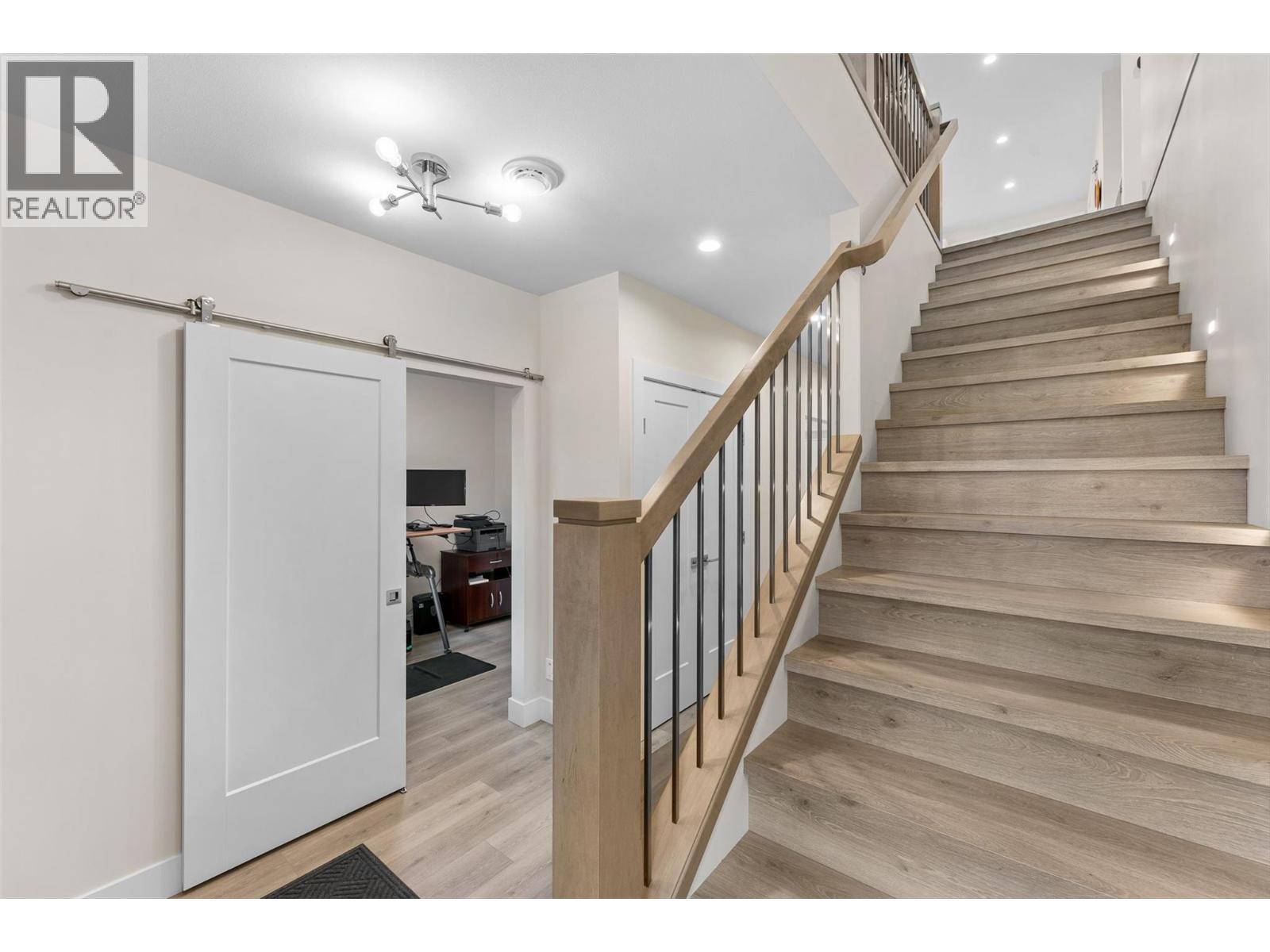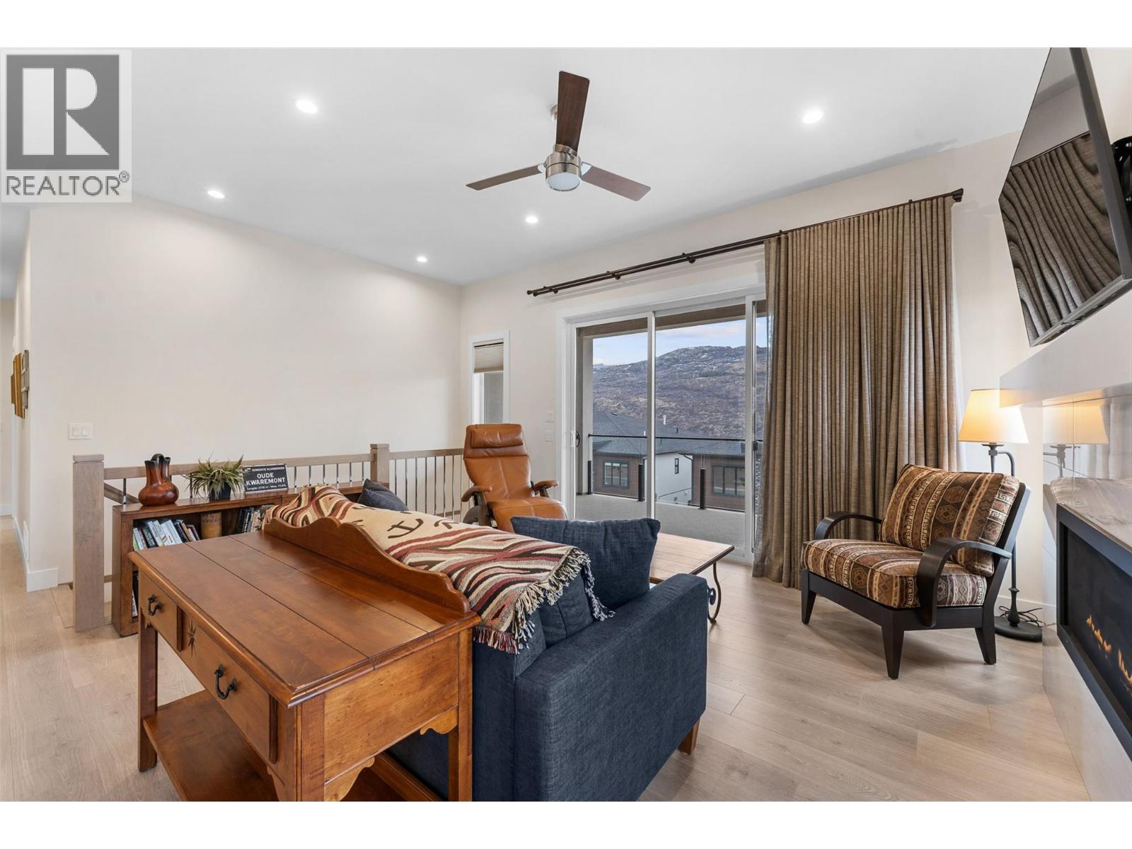 Perched at the edge of Kuipers Peak at South Ridge in the Upper Mission, this corner unit half-duplex has approximately$50K in upgrades. This home was built for people who want to be closer to nature without giving up a single modern convenience. The main level is where the home truly comes alive. High ceilings and natural light pour through generous windows, creating a space that feels both elevated and welcoming. The open kitchen features a large central island with seating for four, two-tone cabinetry, and quartz countertops, flowing seamlessly into the dining and living areas. A gas fireplace anchors the living room, while sliding doors lead to a covered deck with glass railings. The primary suite includes a spa-like ensuite with heated tile floors, a tiled walk-in shower with two shower heads and a built-in bench, plus a walk-in closet. A second bedroom, full bath, butler's pantry with built-in microwave, and laundry complete this level. The lower level offers a bedroom, four-piece bath, dedicated office, and recreation room with a wet bar, ideal for guests or a home gym. Walk out to the fully fenced backyard with a covered patio where sunshades keep you comfortable on warm afternoons. A two-car garage provides parking and storage. Located in a new community with quiet, no-through-access streets, you're three minutes from the new Mission Village shopping center, and steps to the trails of Thomson Flats, where the hills invite you to hike, bike, and explore. (id:62999)