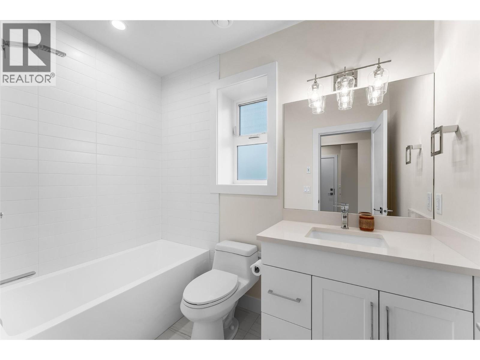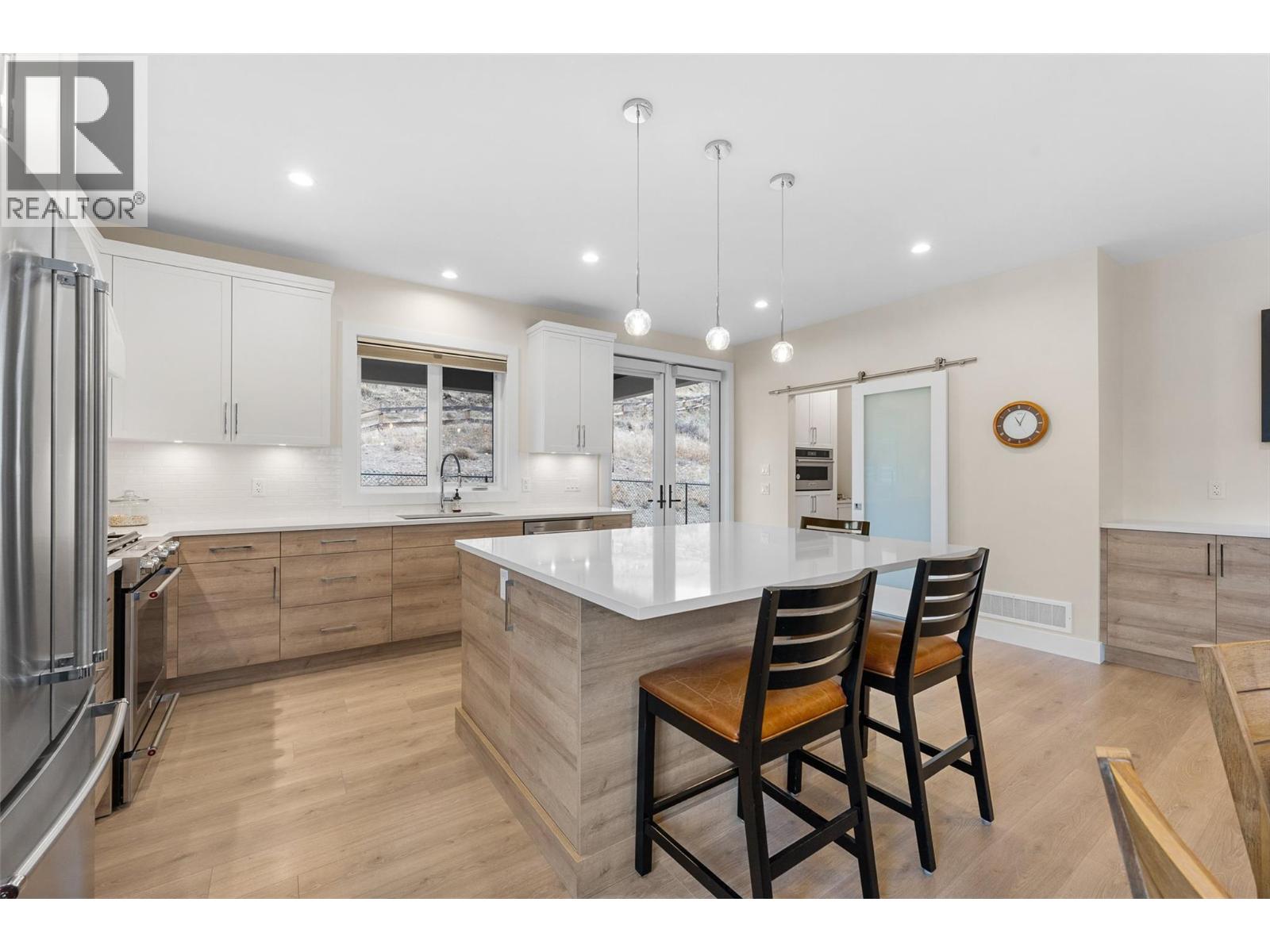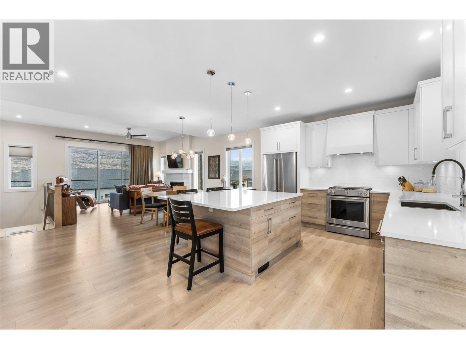 Perched at the edge of Kuipers Peak at South Ridge in the Upper Mission, this corner unit half-duplex has approximately$50K in upgrades. This home was built for people who want to be closer to nature without giving up a single modern convenience. The main level is where the home truly comes alive. High ceilings and natural light pour through generous windows, creating a space that feels both elevated and welcoming. The open kitchen features a large central island with seating for four, two-tone cabinetry, and quartz countertops, flowing seamlessly into the dining and living areas. A gas fireplace anchors the living room, while sliding doors lead to a covered deck with glass railings. The primary suite includes a spa-like ensuite with heated tile floors, a tiled walk-in shower with two shower heads and a built-in bench, plus a walk-in closet. A second bedroom, full bath, butler's pantry with built-in microwave, and laundry complete this level. The lower level offers a bedroom, four-piece bath, dedicated office, and recreation room with a wet bar, ideal for guests or a home gym. Walk out to the fully fenced backyard with a covered patio where sunshades keep you comfortable on warm afternoons. A two-car garage provides parking and storage. Located in a new community with quiet, no-through-access streets, you're three minutes from the new Mission Village shopping center, and steps to the trails of Thomson Flats, where the hills invite you to hike, bike, and explore. (id:62999)