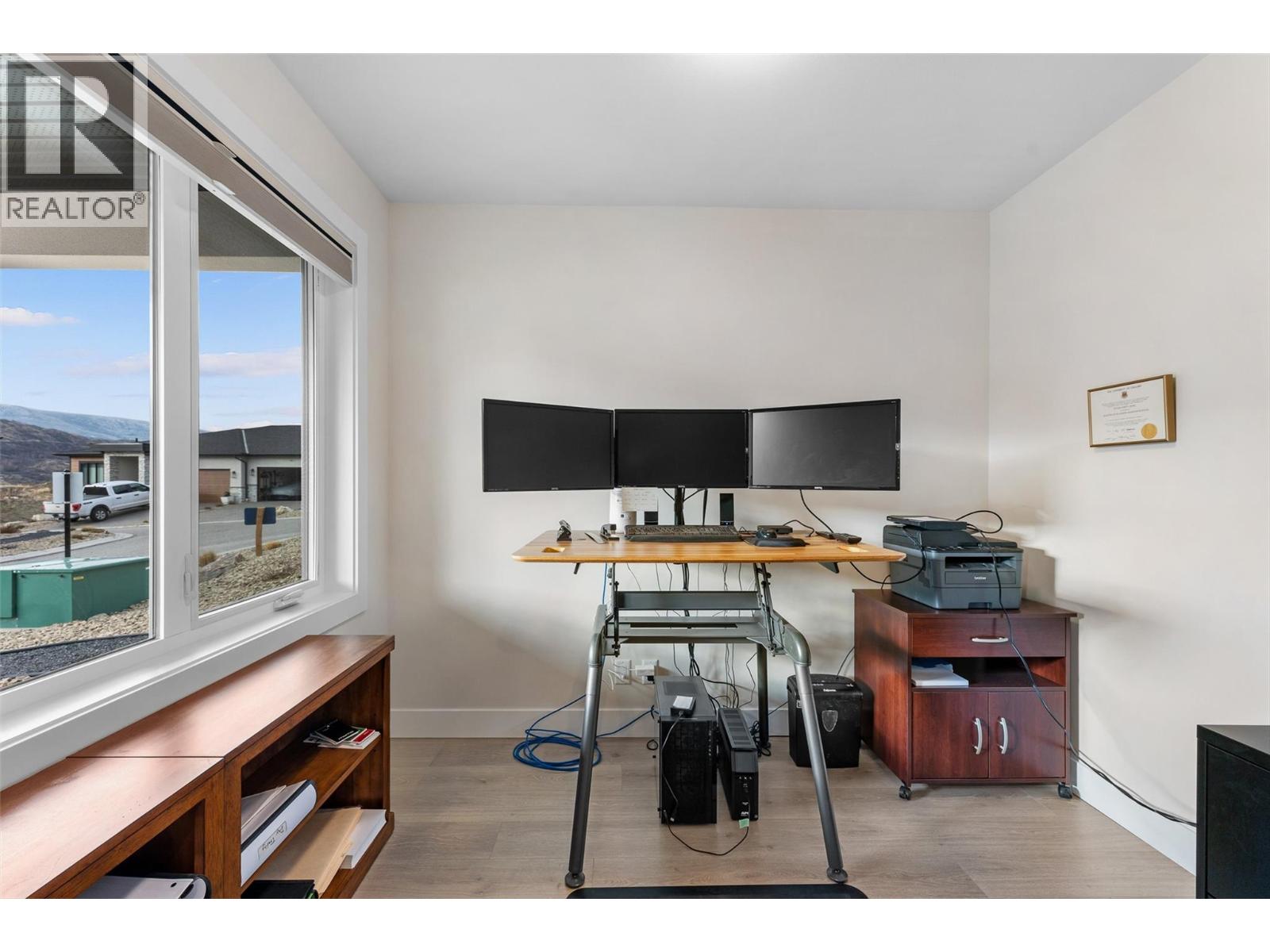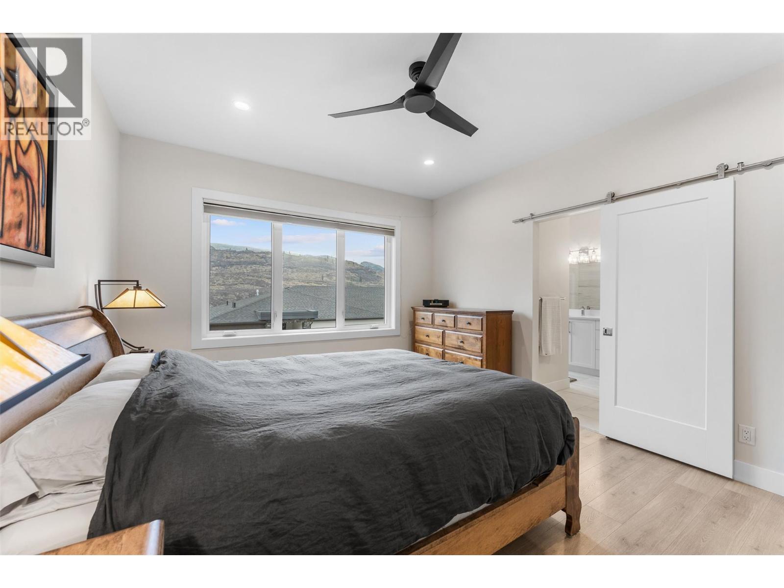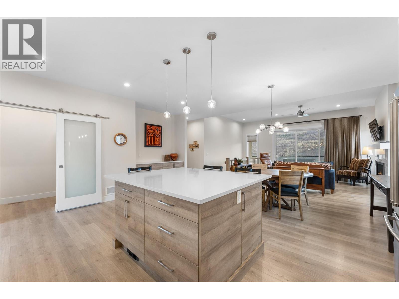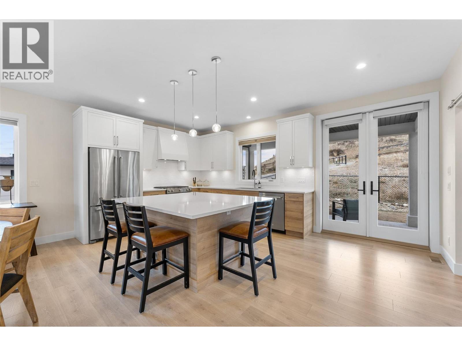Perched at the edge of Kuipers Peak at South Ridge in the Upper Mission, this corner unit half-duplex has approximately$50K in upgrades. This home was built for people who want to be closer to nature without giving up a single modern convenience. The main level is where the home truly comes alive. High ceilings and natural light pour through generous windows, creating a space that feels both elevated and welcoming. The open kitchen features a large central island with seating for four, two-tone cabinetry, and quartz countertops, flowing seamlessly into the dining and living areas. A gas fireplace anchors the living room, while sliding doors lead to a covered deck with glass railings. The primary suite includes a spa-like ensuite with heated tile floors, a tiled walk-in shower with two shower heads and a built-in bench, plus a walk-in closet. A second bedroom, full bath, butler's pantry with built-in microwave, and laundry complete this level. The lower level offers a bedroom, four-piece bath, dedicated office, and recreation room with a wet bar, ideal for guests or a home gym. Walk out to the fully fenced backyard with a covered patio where sunshades keep you comfortable on warm afternoons. A two-car garage provides parking and storage. Located in a new community with quiet, no-through-access streets, you're three minutes from the new Mission Village shopping center, and steps to the trails of Thomson Flats, where the hills invite you to hike, bike, and explore. (id:62999)