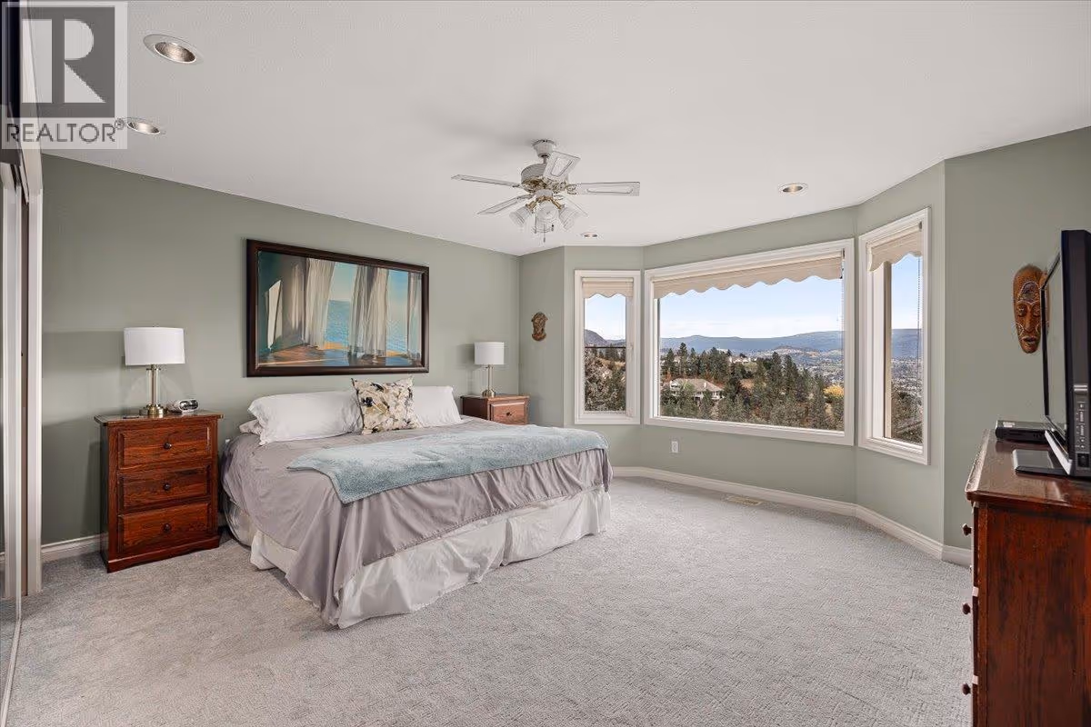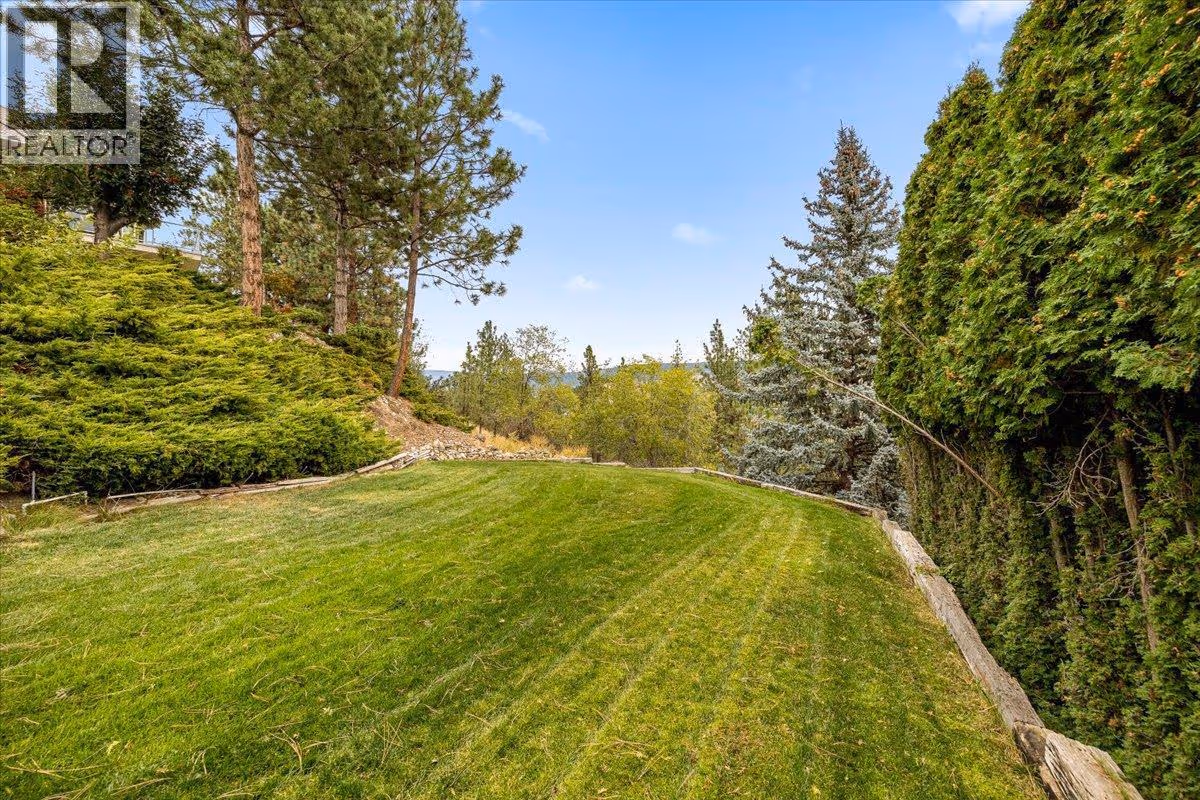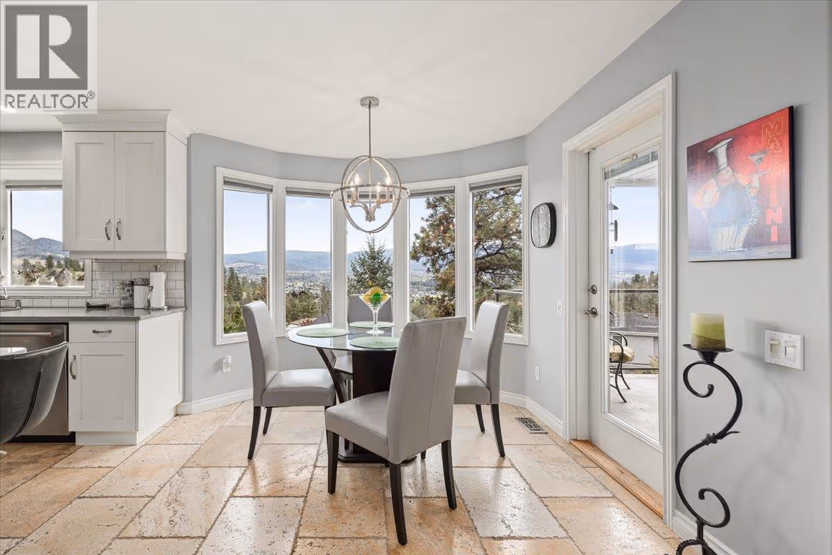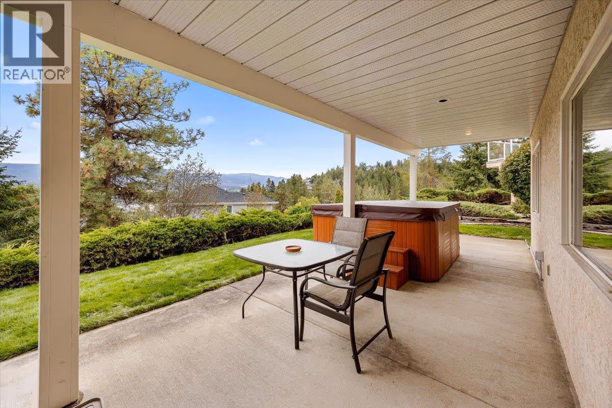 Set on a quiet cul-de-sac in the desirable Dilworth Mountain community, this spacious 4,799 sq. ft. walk-out rancher offers an exceptional blend of space, privacy, and panoramic views. Thoughtfully designed for main-level living, this immaculately maintained residence captures sweeping views of the valley, city, and surrounding mountains from nearly every principal room. The chef’s kitchen is both functional and elegant, appointed with granite countertops, soft-close cabinetry, premium KitchenAid appliances, and a charming bay-window breakfast nook. Seamless indoor-outdoor flow leads to a covered upper deck. The main floor also features a vaulted-ceiling family room with a gas fireplace, a formal dining area, a versatile office or bedroom, and a generously sized primary suite with a private 5-piece ensuite. The fully finished walk-out lower level extends the home’s appeal, offering two spacious bedrooms, a renovated bath, a large recreation room, and an impressive theatre with coffered ceilings and a private kitchenette. Outside, the covered lower patio with hot tub invites quiet relaxation, while the expansive, tiered backyard—complete with mature landscaping and underground irrigation—offers space for a future pool. Situated on a rare, oversized lot in one of Kelowna’s most coveted neighbourhoods, this home blends timeless comfort with boundless potential. Just minutes to downtown, top schools, golf, and trail networks—this is Dilworth living at its finest. (id:62999)