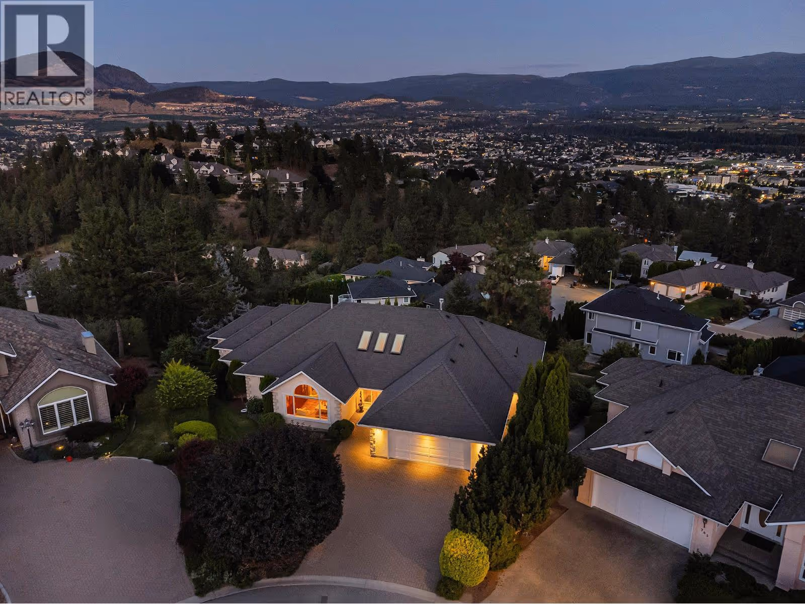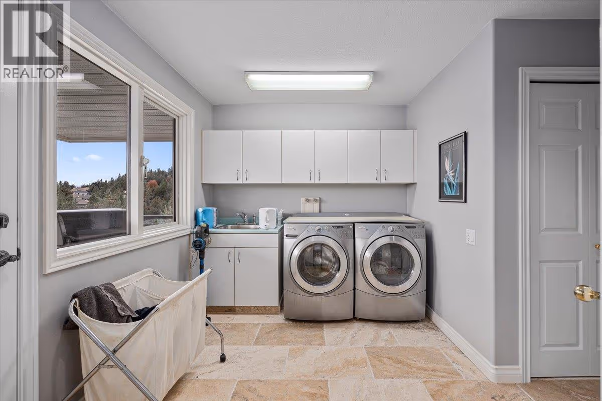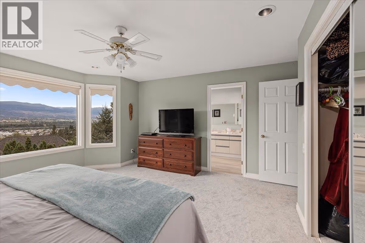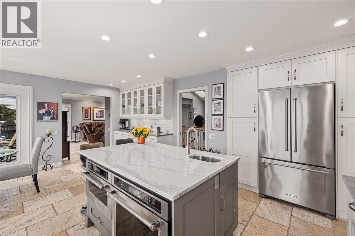 Set on a quiet cul-de-sac in the desirable Dilworth Mountain community, this spacious 4,799 sq. ft. walk-out rancher offers an exceptional blend of space, privacy, and panoramic views. Thoughtfully designed for main-level living, this immaculately maintained residence captures sweeping views of the valley, city, and surrounding mountains from nearly every principal room. The chef’s kitchen is both functional and elegant, appointed with granite countertops, soft-close cabinetry, premium KitchenAid appliances, and a charming bay-window breakfast nook. Seamless indoor-outdoor flow leads to a covered upper deck. The main floor also features a vaulted-ceiling family room with a gas fireplace, a formal dining area, a versatile office or bedroom, and a generously sized primary suite with a private 5-piece ensuite. The fully finished walk-out lower level extends the home’s appeal, offering two spacious bedrooms, a renovated bath, a large recreation room, and an impressive theatre with coffered ceilings and a private kitchenette. Outside, the covered lower patio with hot tub invites quiet relaxation, while the expansive, tiered backyard—complete with mature landscaping and underground irrigation—offers space for a future pool. Situated on a rare, oversized lot in one of Kelowna’s most coveted neighbourhoods, this home blends timeless comfort with boundless potential. Just minutes to downtown, top schools, golf, and trail networks—this is Dilworth living at its finest. (id:62999)