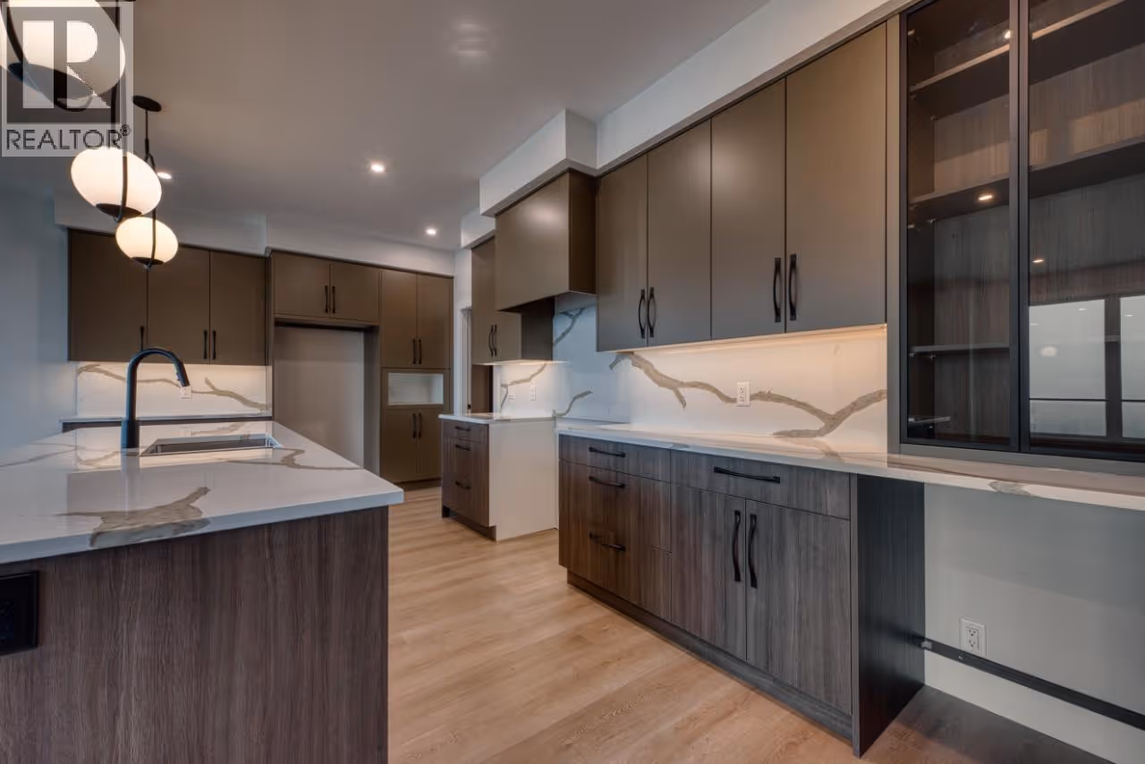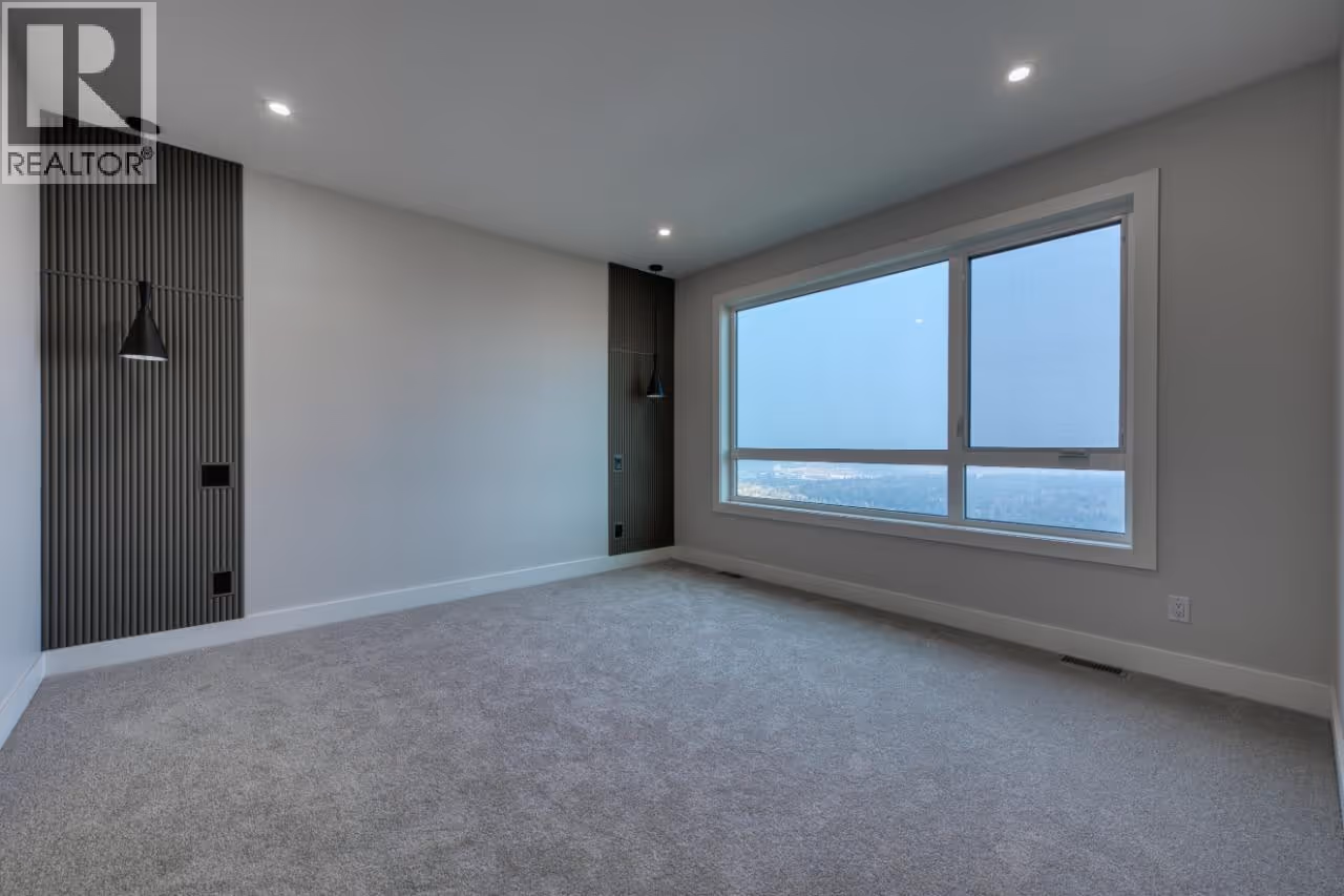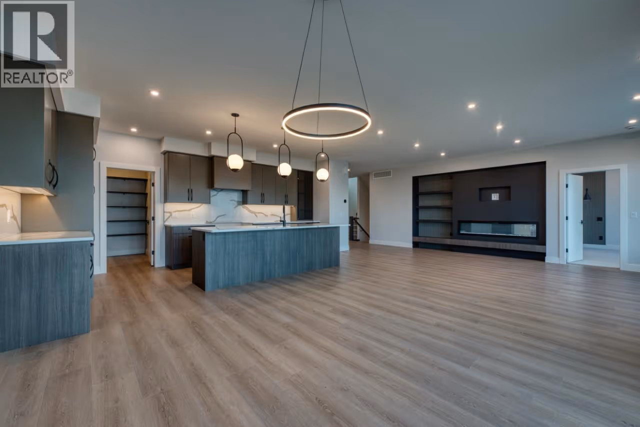 Welcome Home to this newly built residence by Carrington Homes in Trailhead at The Ponds. This 5 bedroom, 4 bath walk-out rancher showcases panoramic lake and city views, a recreation room with bar, and a rooftop patio roughed in for a hot tub. The level entry main floor is designed for effortless living, featuring expansive windows and an open concept layout that captures light, views, and atmosphere. The inviting kitchen includes quality appliances, an oversized island, and a walk-through pantry, flowing seamlessly into the main living space. The primary retreat offers a private sanctuary with dual vanities, glass shower, deep soaker tub, and walk-in closet. A second bedroom and full bath complete the main level. The lower level offers two additional bedrooms, a full bath, and a rec room for the main home, plus a self-contained 1 bedroom legal suite with private entry and in-suite laundry. Finished with a double garage, spacious mudroom, and curated designer details. **GST APPLICABLE (id:62999)