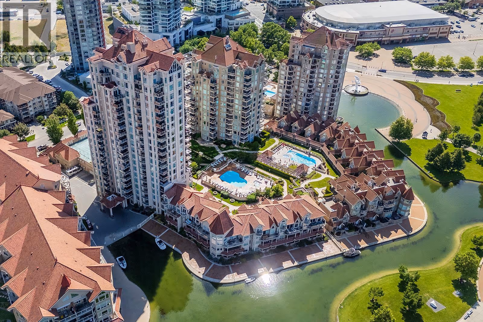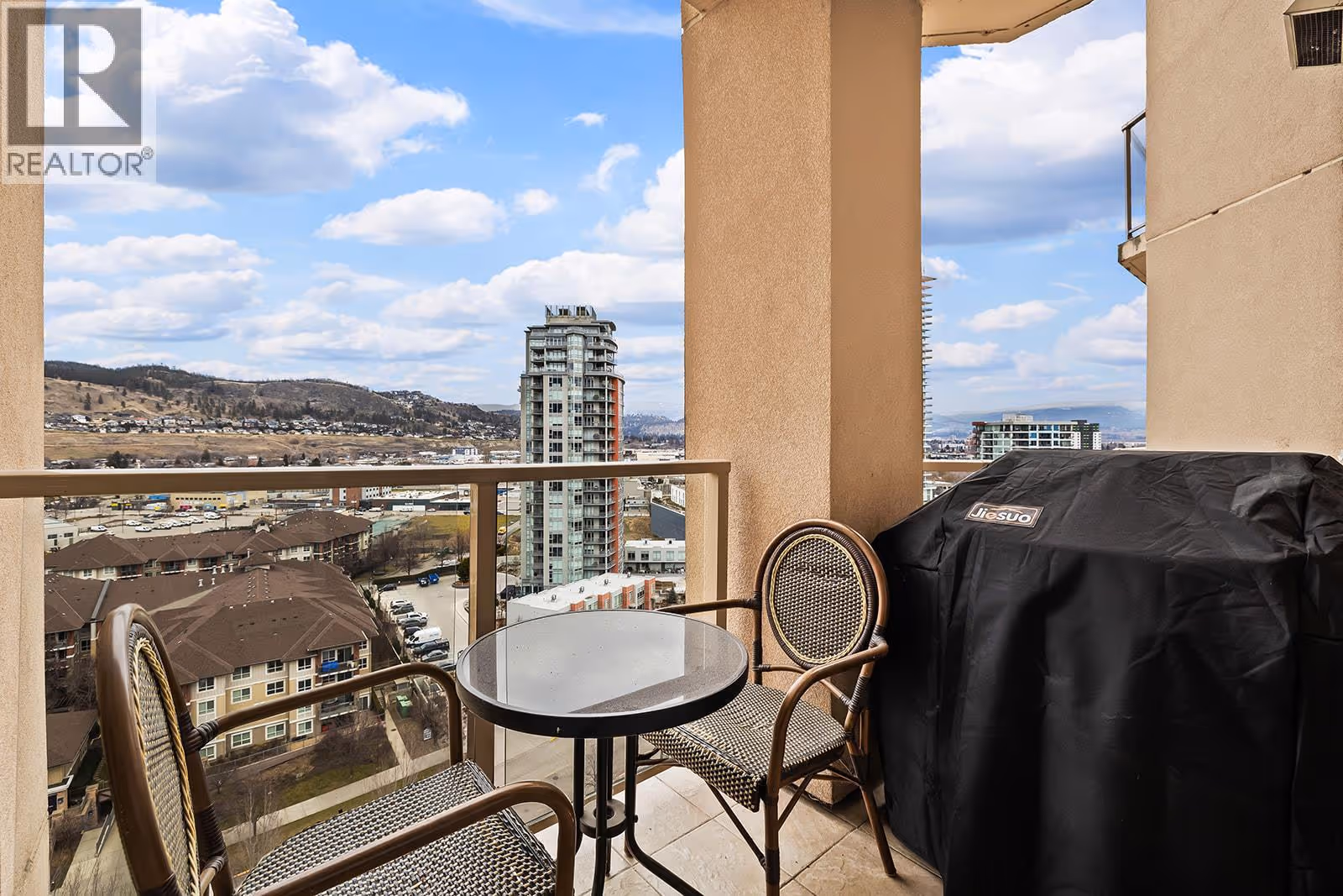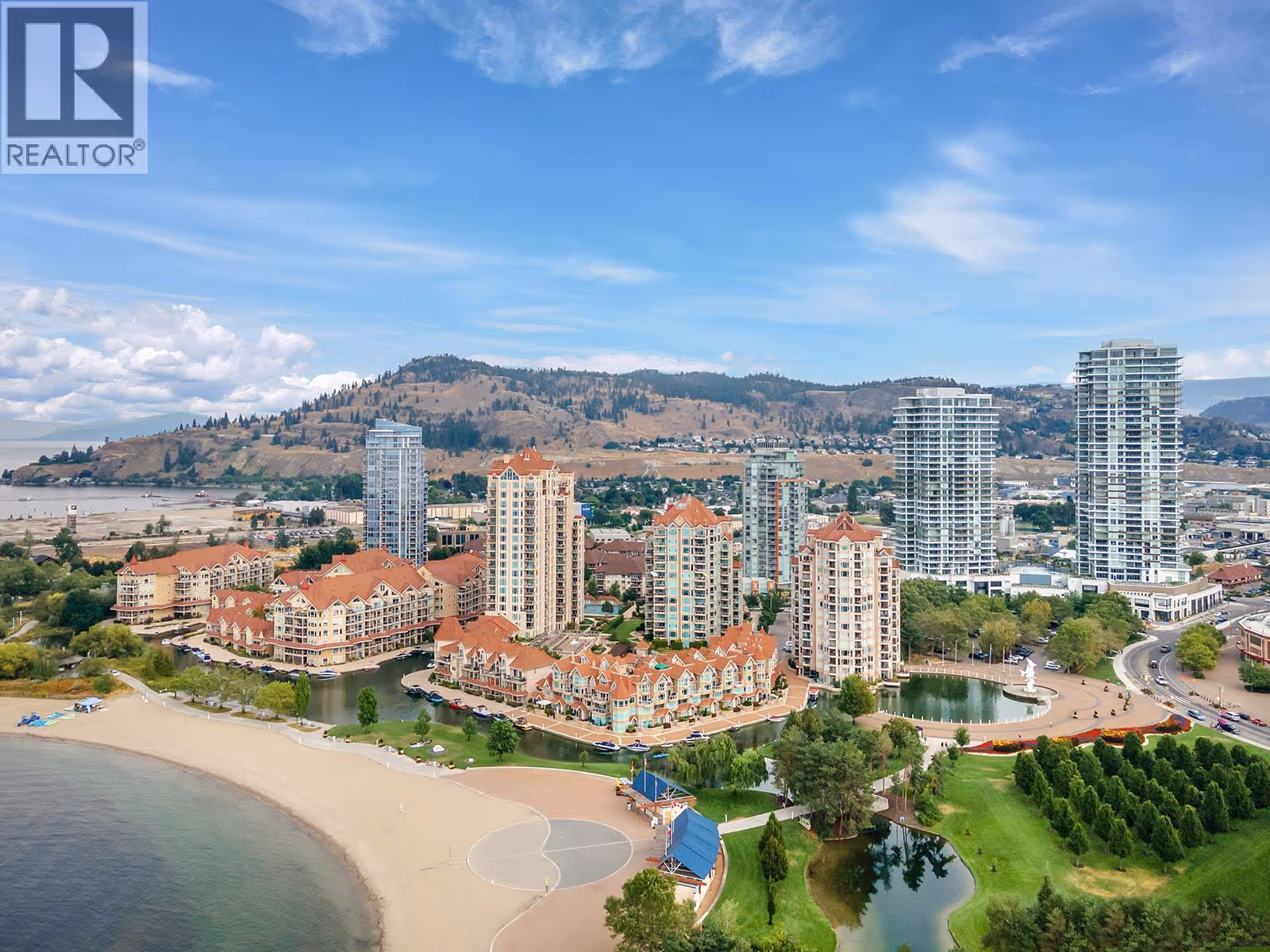 Enjoy elevated downtown living from the 14th floor in the heart of Kelowna’s waterfront district. This well-maintained two-bedroom residence offers an ideal blend of space, location, and versatility, whether you’re looking for a full-time home or a revenue-generating property. The open layout is filled with natural light and showcases expansive city and mountain views from nearly every room. The kitchen offers ample cabinetry and counter space with bar seating, flowing seamlessly into the dining and living areas—complete with a gas fireplace. The primary bedroom features beautiful city views, a three-piece ensuite, and thoughtful upgrades throughout. A spacious second bedroom provides flexibility for guests. Additional highlights include in-suite laundry and a tiled deck with gas BBQ hookup—perfect for taking in the skyline and surrounding scenery. Residents enjoy access to resort-style amenities including pools ( indoor and outdoor ), hot tubs( indoor and outdoor ), steam room, fitness centre, tennis courts, and geothermal heating, all included in the strata fees. A prime downtown location, generous layout, and excellent upkeep make this property a standout opportunity. (id:62999)