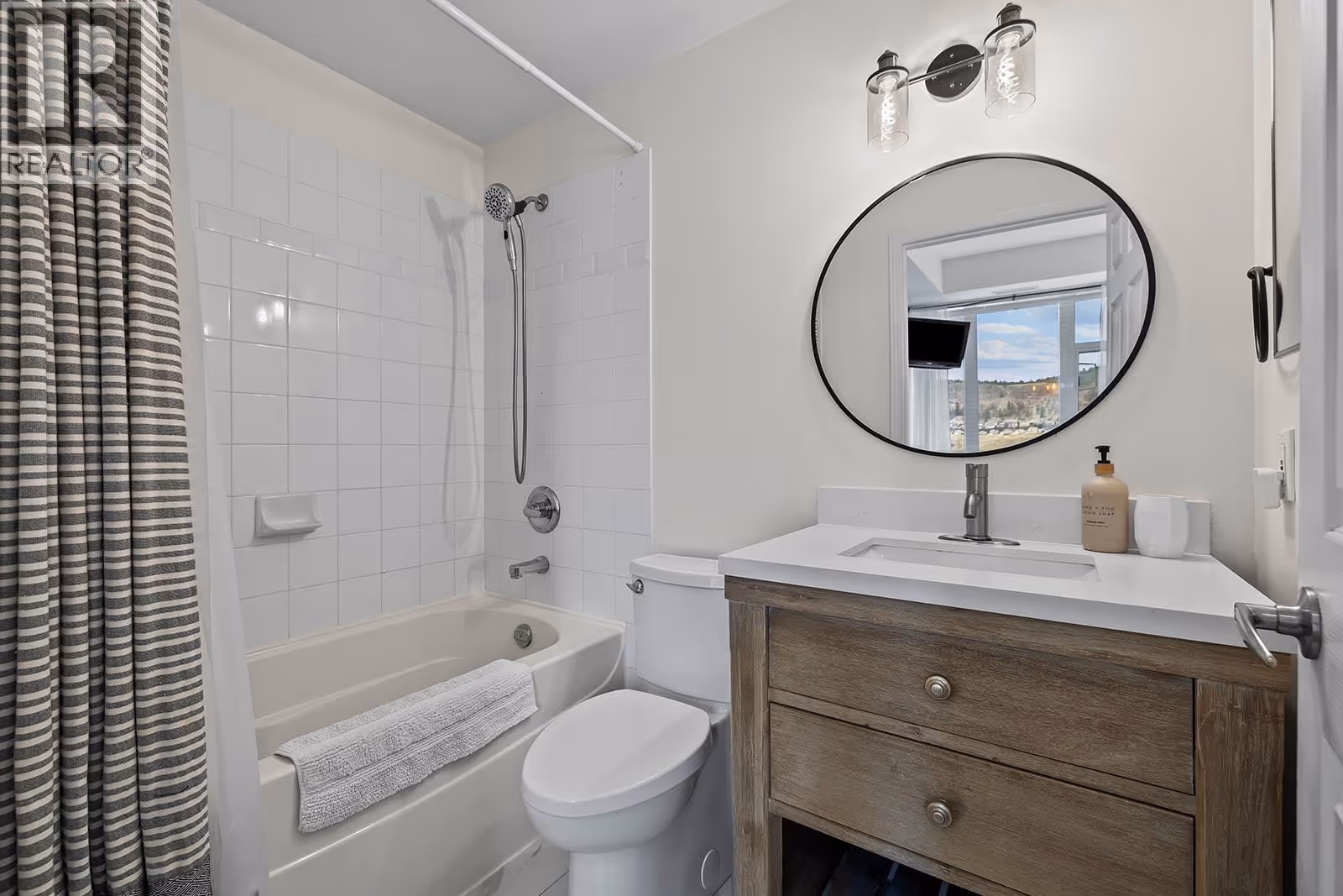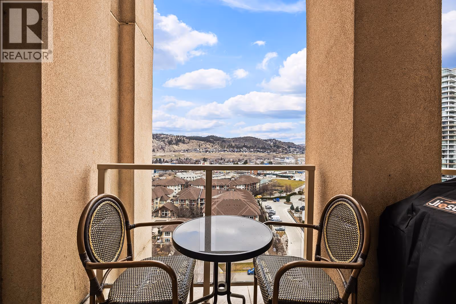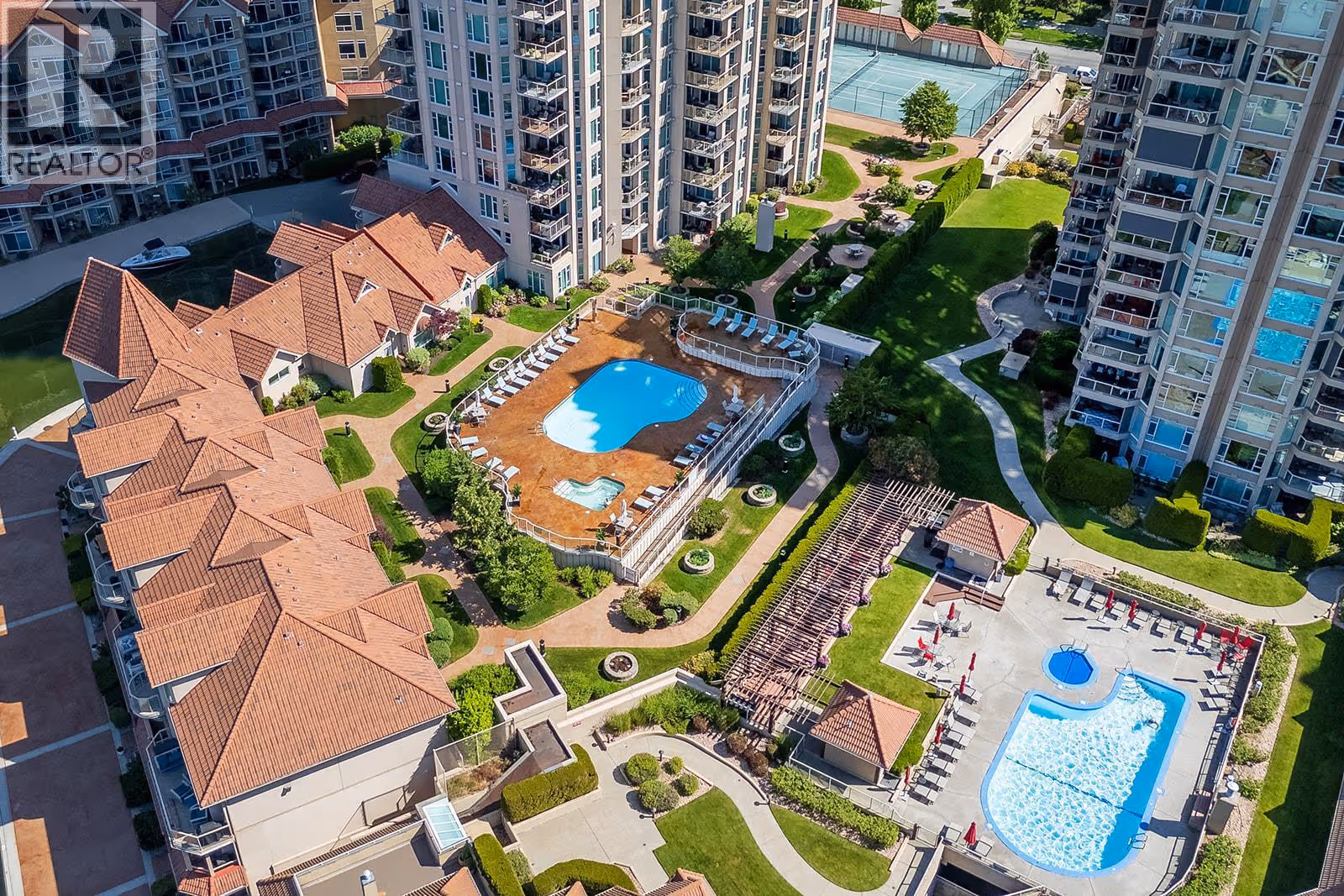 Enjoy elevated downtown living from the 14th floor in the heart of Kelowna’s waterfront district. This well-maintained two-bedroom residence offers an ideal blend of space, location, and versatility, whether you’re looking for a full-time home or a revenue-generating property. The open layout is filled with natural light and showcases expansive city and mountain views from nearly every room. The kitchen offers ample cabinetry and counter space with bar seating, flowing seamlessly into the dining and living areas—complete with a gas fireplace. The primary bedroom features beautiful city views, a three-piece ensuite, and thoughtful upgrades throughout. A spacious second bedroom provides flexibility for guests. Additional highlights include in-suite laundry and a tiled deck with gas BBQ hookup—perfect for taking in the skyline and surrounding scenery. Residents enjoy access to resort-style amenities including pools ( indoor and outdoor ), hot tubs( indoor and outdoor ), steam room, fitness centre, tennis courts, and geothermal heating, all included in the strata fees. A prime downtown location, generous layout, and excellent upkeep make this property a standout opportunity. (id:62999)