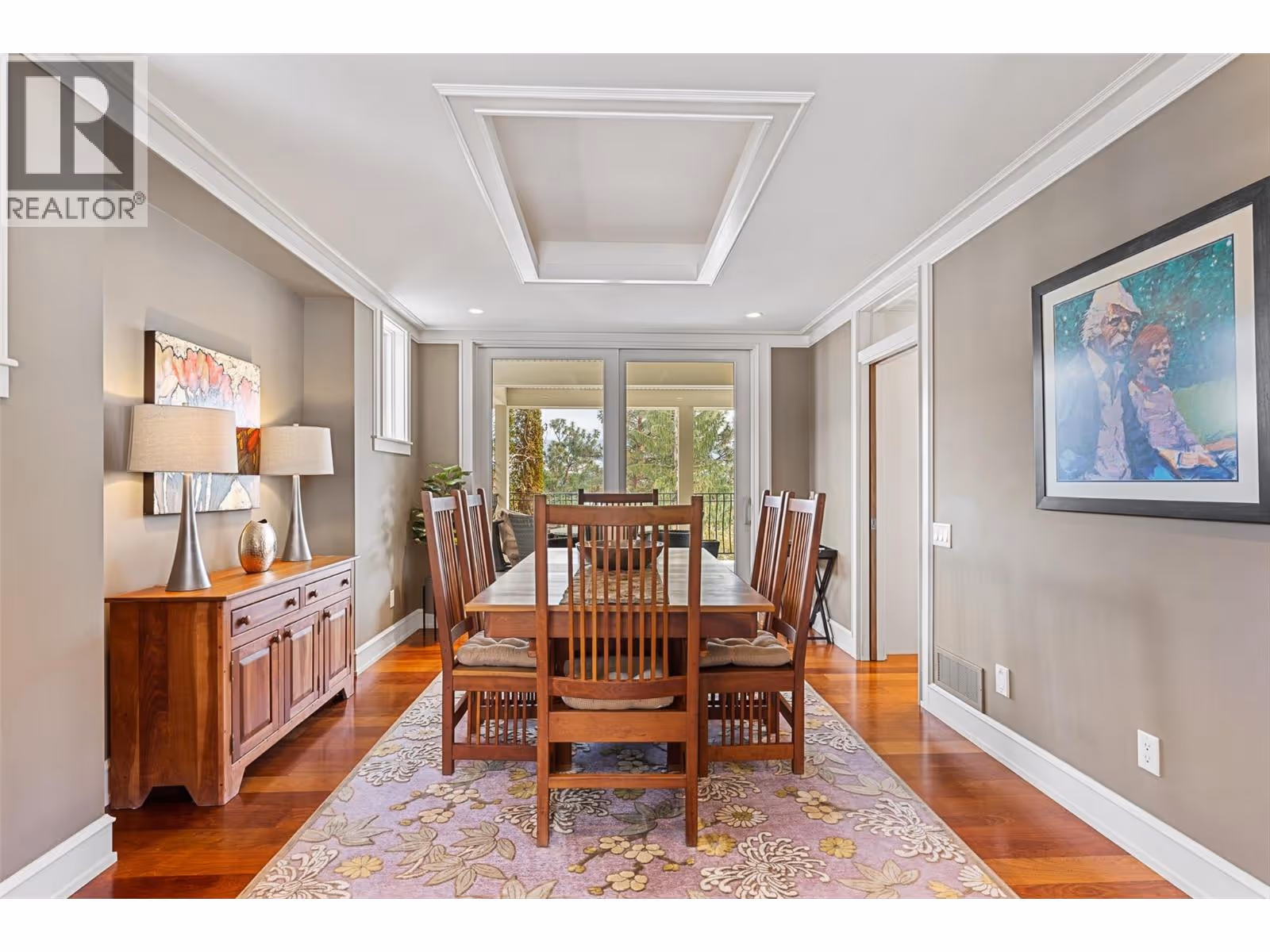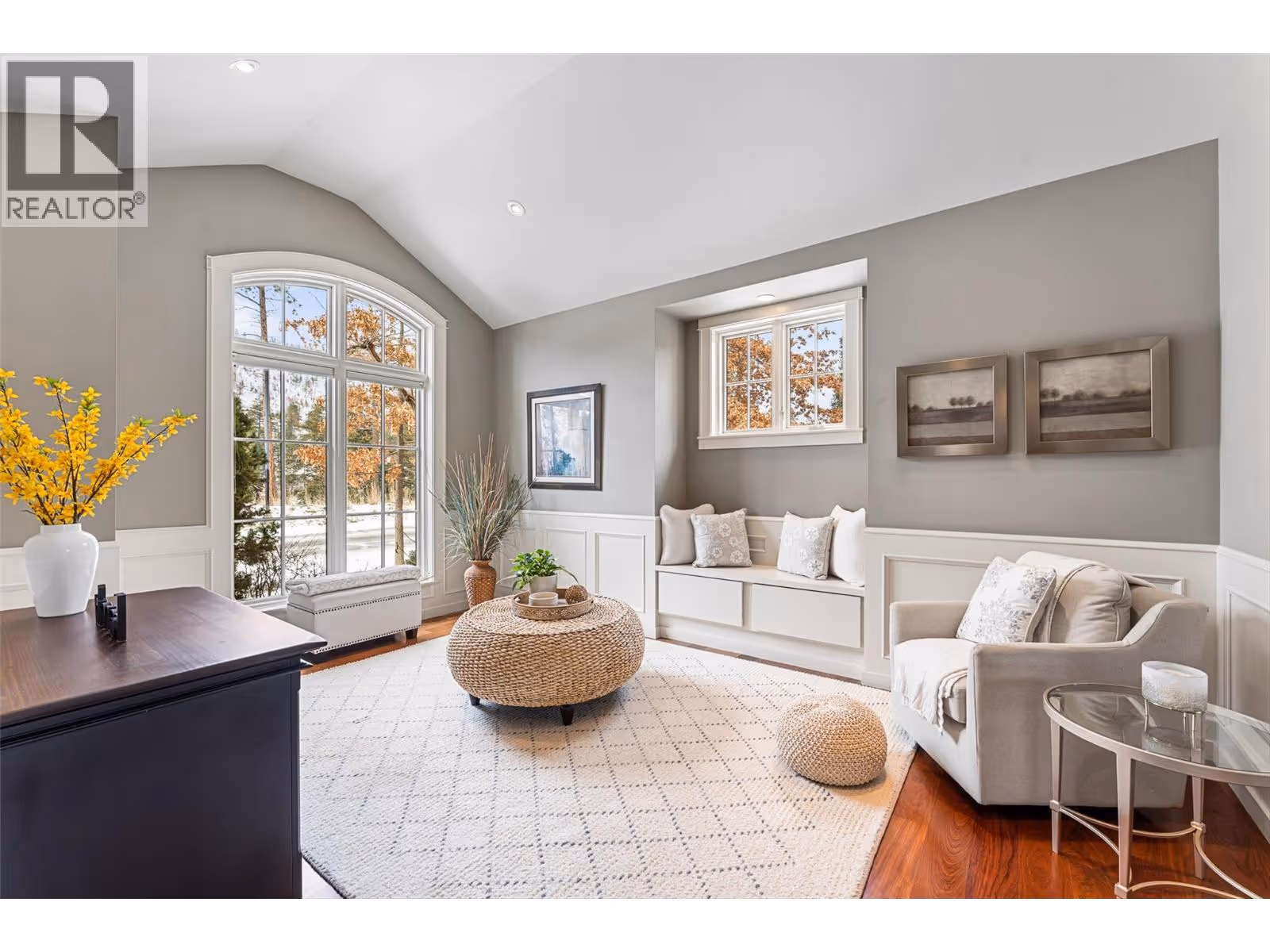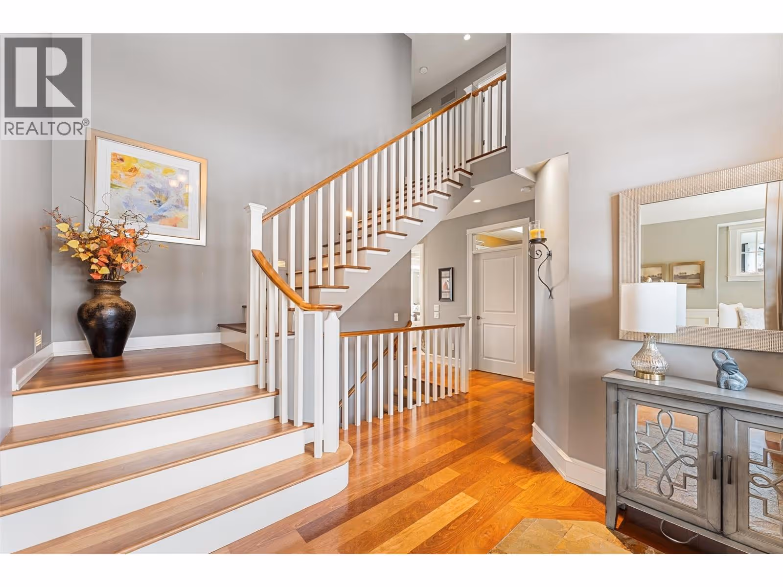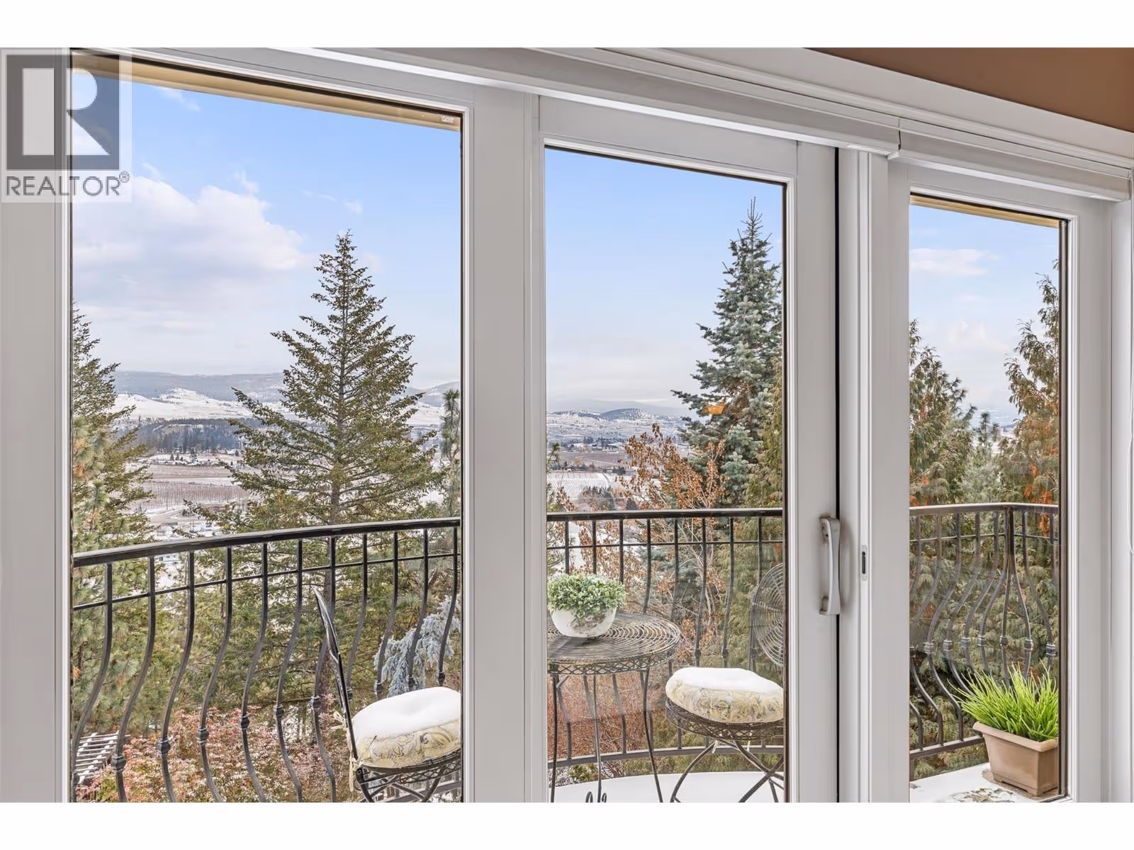Beautiful home built by Fawdry Homes in the sought-after community of Wilden. This home impresses with a timeless French Country design, soaring ceilings, and impeccable craftsmanship on a private 0.38-acre hillside lot with sweeping valley and mountain views. Designed for both luxury and accessibility, this home features a barrier free entry, wider hallways and staircase and an accessible bathroom on the main floor. The bright great room and crisp white kitchen flow seamlessly into formal dining and living areas, making it perfect for hosting family and friends, or spending time with the family. The expansive primary suite occupies nearly half the upper level, complete with a spa-inspired ensuite. The lower level features a family/games room with a built-in wall bed, sauna, and full bath—ideal for guests. Flexible floor plan provides the opportunity to potentially create an add'l 2 beds. Outside, enjoy a pitch-and-putt golf green, sand trap, lush gardens, and water features. Additional highlights include slop-dash stucco, geothermal heating and cooling, heat recovery ventilation, water filtration, and cherry wide-plank hardwood floors. A detailed list of extras is available by request. Located just minutes from UBCO, the airport, and Kelowna’s best amenities. (id:62999)