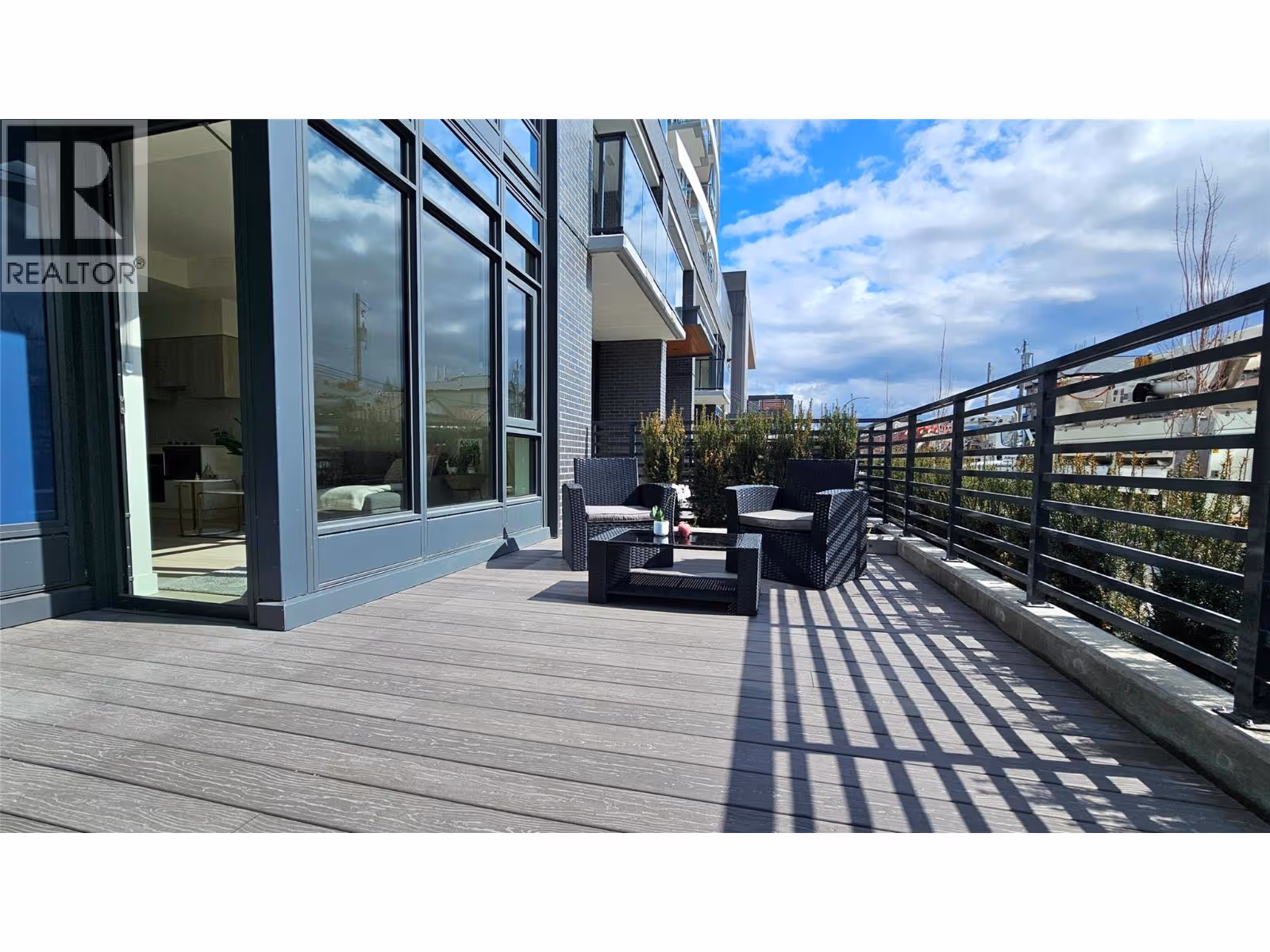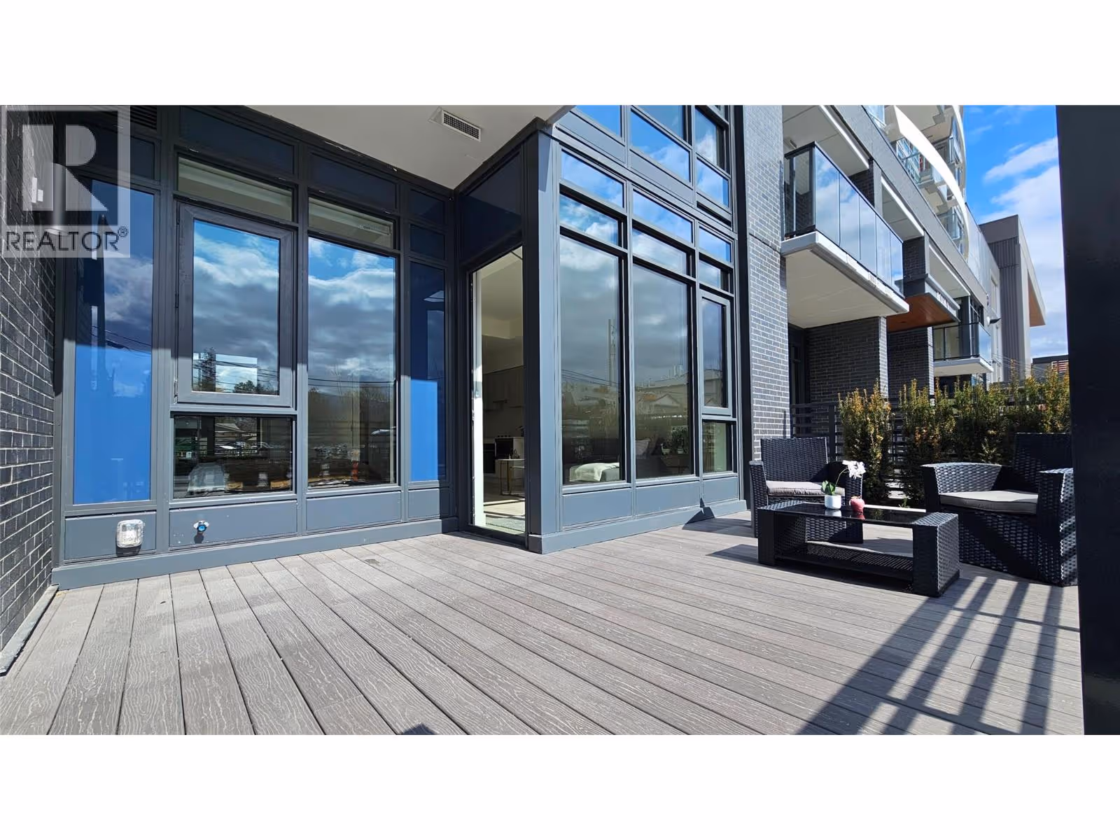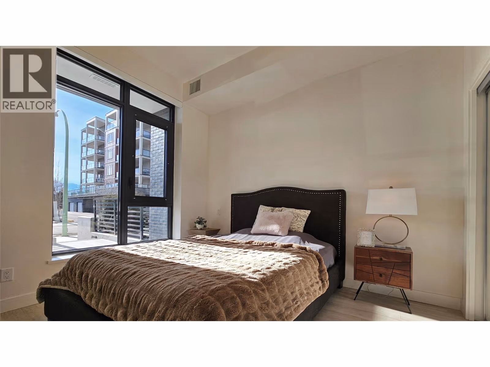 Welcome to lakeside luxury resort-style living at AQUA. Embrace the essence of waterfront relaxation in this South-Facing ground floor unit with extra large private terrace patio. 1 Bedroom and 1 Bathroom unit with 1 secured covered parking. Dive into a lifestyle of leisure as you immerse yourself in the world-class Aqua Boat Club, ready to embark on adventures of surf and sun across Lake Okanagan. This 15-story solid concrete construction offers peace of mind, with 8 inches of concrete between floors, oversized windows, central hot water system included in the strata fees. Enjoy quiet & efficient heating & cooling through VRV (variable refrigerant volume) & ERV (energy recovery ventilator), along with fiber-optic wiring, quartz countertops, premium stainless-steel appliance package, upgraded microwave and trim kit, wine fridge, waterfall island, 10 feet high ceiling. AQUA is pet-friendly with no size restrictions, offers an outdoor pool, hot tub on the 5th floor, lounge seating, landscaped BBQ area, two-story 2000 sq ft gym & yoga/meditation area, co-workspace, poolside fireside lounge, shared kitchen, conference room & dog wash station, paddle board storage. Priority access to membership opportunities at onsite world-class Aqua Boat Club, at current market rates, subject to availability. 2-5-10 year new home warranty. Quick possession possible. Price plus GST. (id:62999)