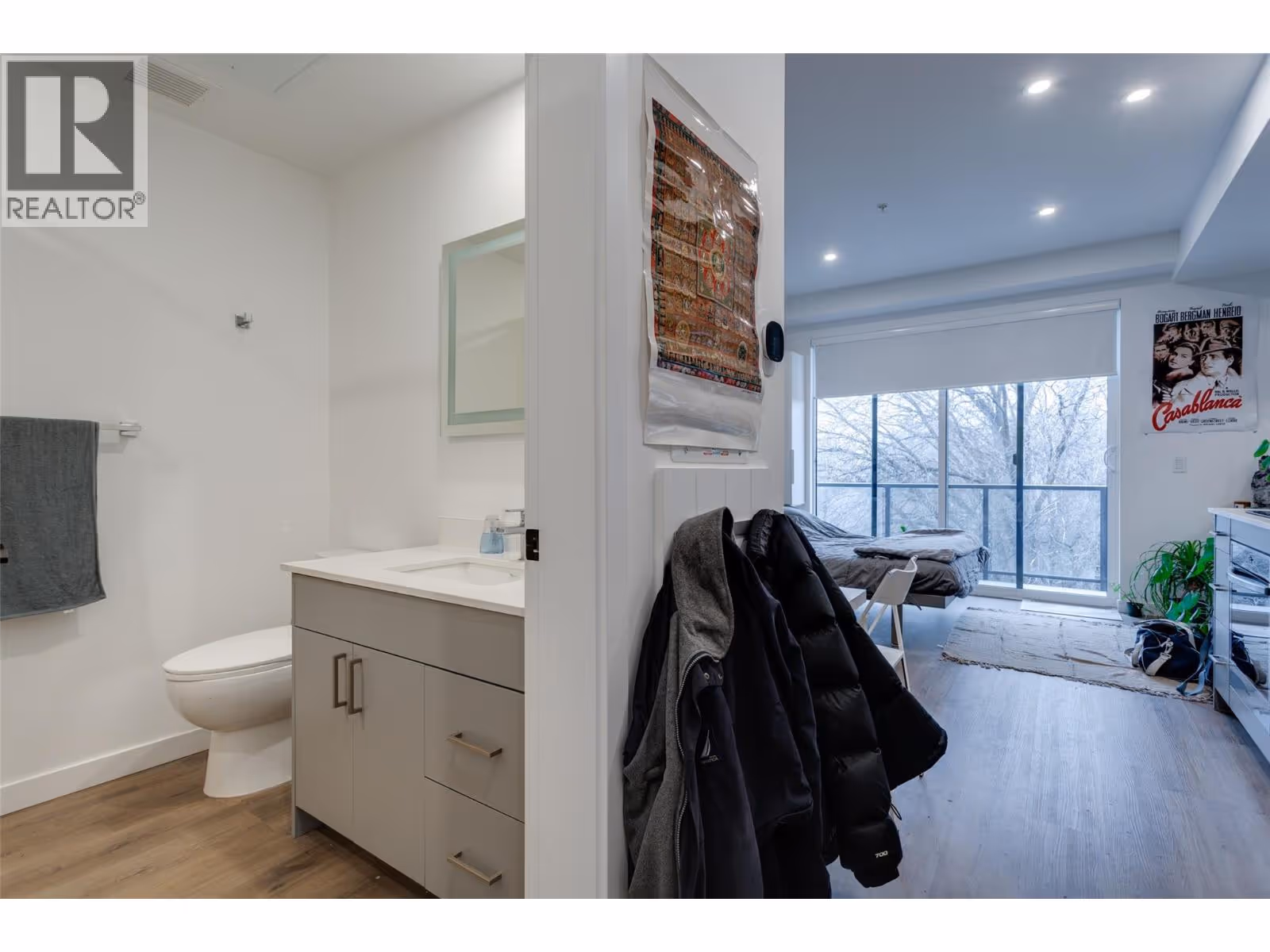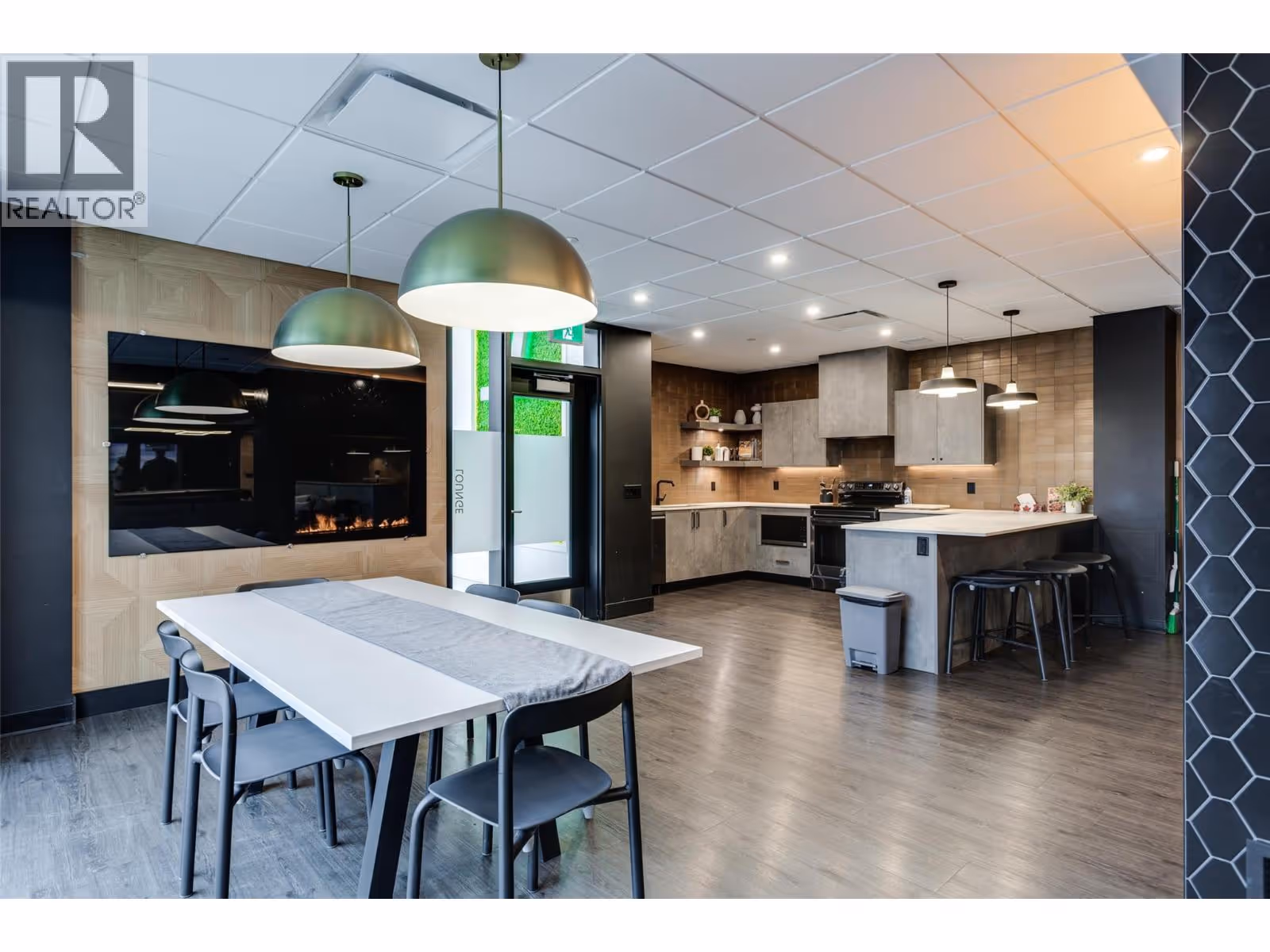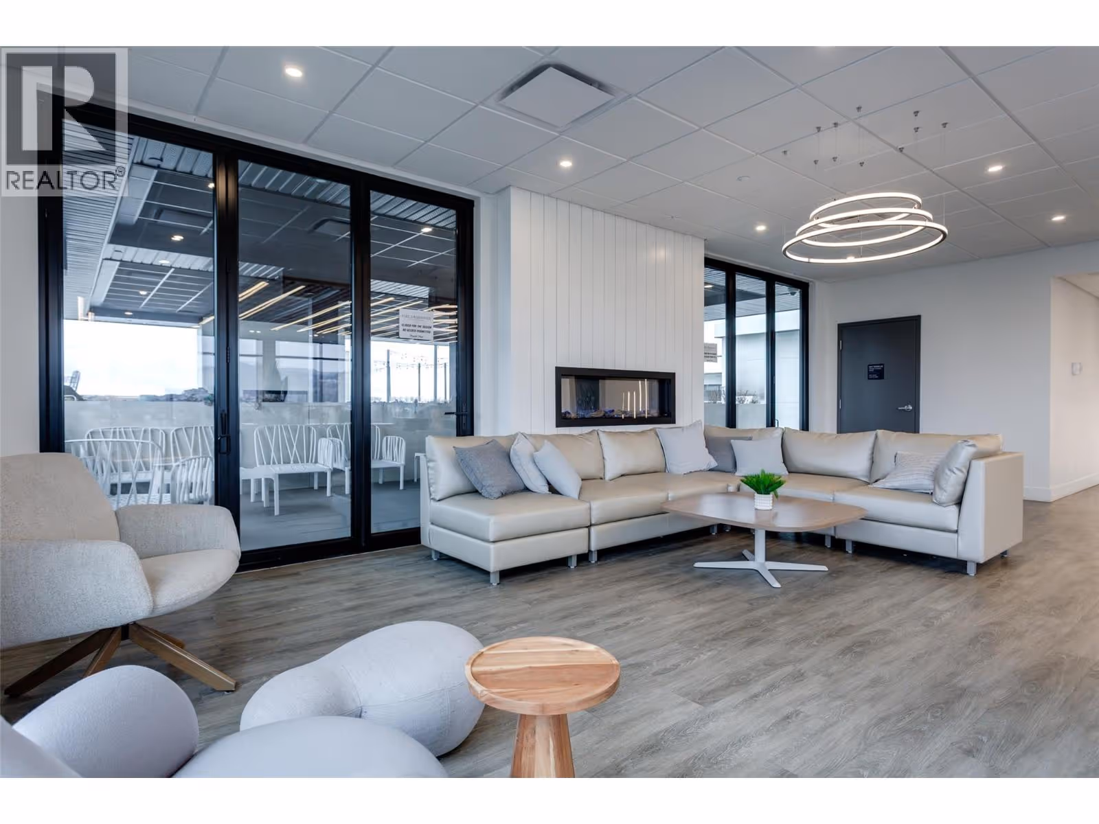 New Smart-Suite at Five Crossings – Urban Living Redefined. Welcome to Five Crossings, one of Kelowna’s most amenity-rich and lifestyle-driven buildings. This thoughtfully designed new smart-suite maximizes every inch of space with a Queen Murphy bed, built-in storage, home office, media cabinet, genie table, and a $22,000 furniture package—perfect for modern urban living or a high-performing investment. GST Paid. The sleek galley kitchen features built-in appliances, push-to-open cabinetry, and a heat pump for efficient heating and cooling. With no age restrictions and pet-friendly bylaws (2 cats or dogs, no size limits), this home offers exceptional flexibility for first-time buyers, students, professionals, and investors alike. Five Crossings delivers true resort-style amenities, including a state-of-the-art fitness centre, co-working space, dog wash, bike storage and repair station, shared garden plots, and a stylish residents’ lounge with a full kitchen, golf simulator, pool table, projection screen, and fireplace. The sixth-floor rooftop features a yoga/zen lounge, BBQ area, covered outdoor dining with fireplace, multiple fire pits, and stunning city and mountain views. Ground-level amenities include a bocce court, dog run, MODO car share, and EV charging. Ideally located across from a park and just steps to Capri Shopping Centre, restaurants, and transit, with easy access to UBCO & Okanagan College 16 mins, downtown 8 mins, and KGH 8 mins. Book your showing today! (id:62999)