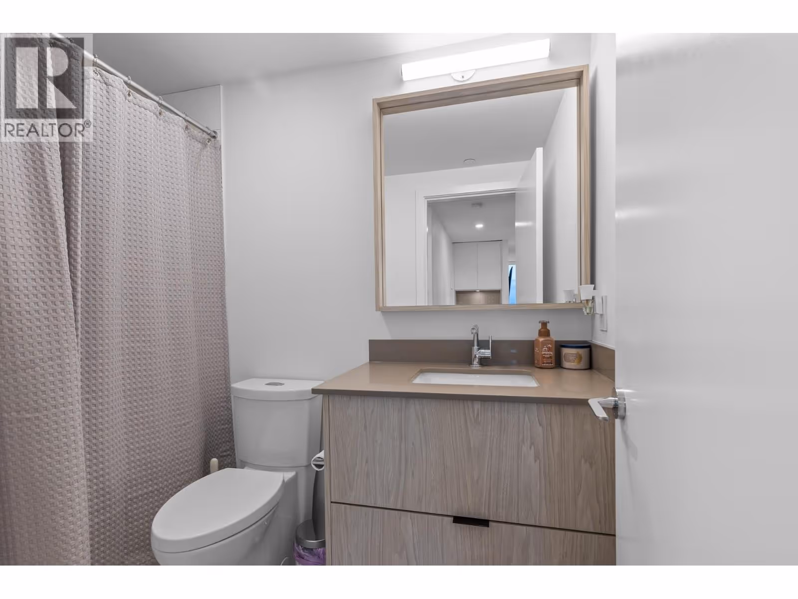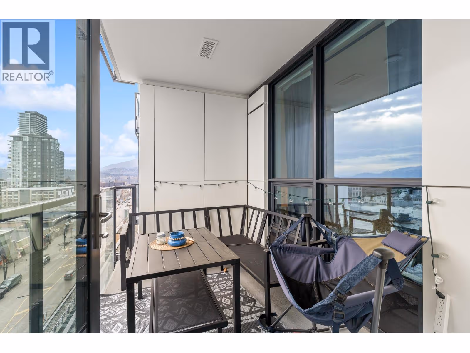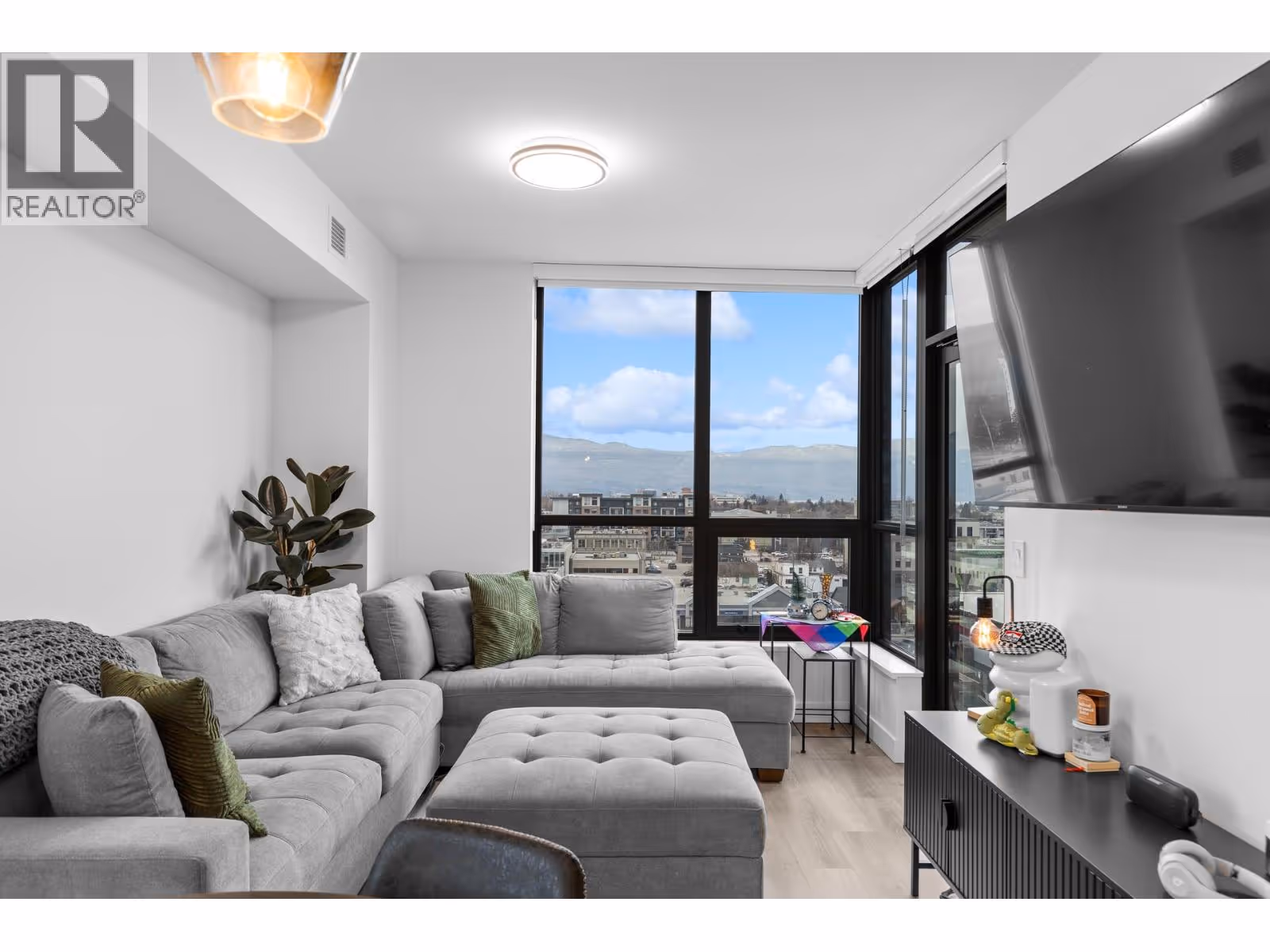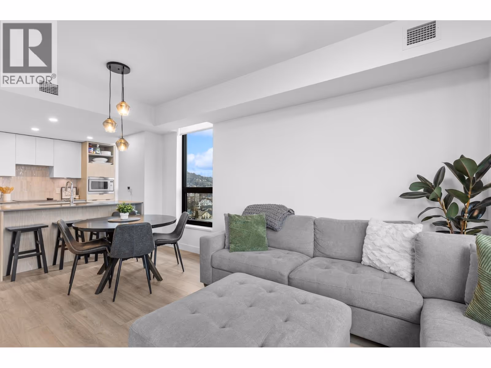 Welcome to Bertram, where elevated living meets an effortless lakeside lifestyle. This beautifully appointed corner unit offers two bedrooms and two bathrooms and is ideally positioned to capture sweeping lake views, abundant natural daylight, and stunning sunsets. Completed in 2024, this residence is wrapped in expansive windows that fill the home with sunshine throughout the day while showcasing views of Lake Okanagan, the city skyline, and surrounding valley. The thoughtfully designed split-bedroom layout provides excellent privacy, while the open-concept living and dining areas create a seamless flow for both everyday living and entertaining. The contemporary kitchen features quartz countertops, stainless steel appliances, and clean modern cabinetry, delivering a timeless and functional design. Step out onto the covered balcony to enjoy morning coffee or unwind in the evening as the sun sets over the lake. Residents of Bertram enjoy an impressive collection of resort-style amenities, including a rooftop heated pool and spacious hot tub with panoramic 360-degree views, outdoor BBQ and lounge areas, bocce ball court, community gardens, fully equipped fitness centre, dog run and dog wash station, secure bike room, and multiple indoor lounges and work-from-home spaces. This home includes one secure parking stall and a private bike locker. (id:62999)