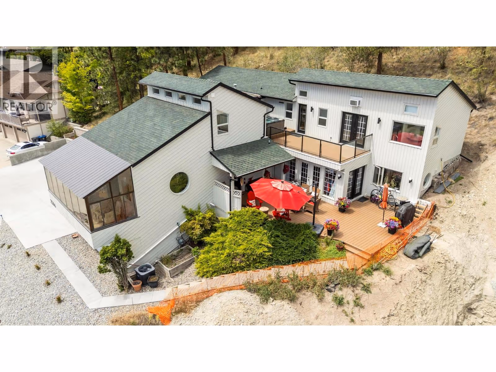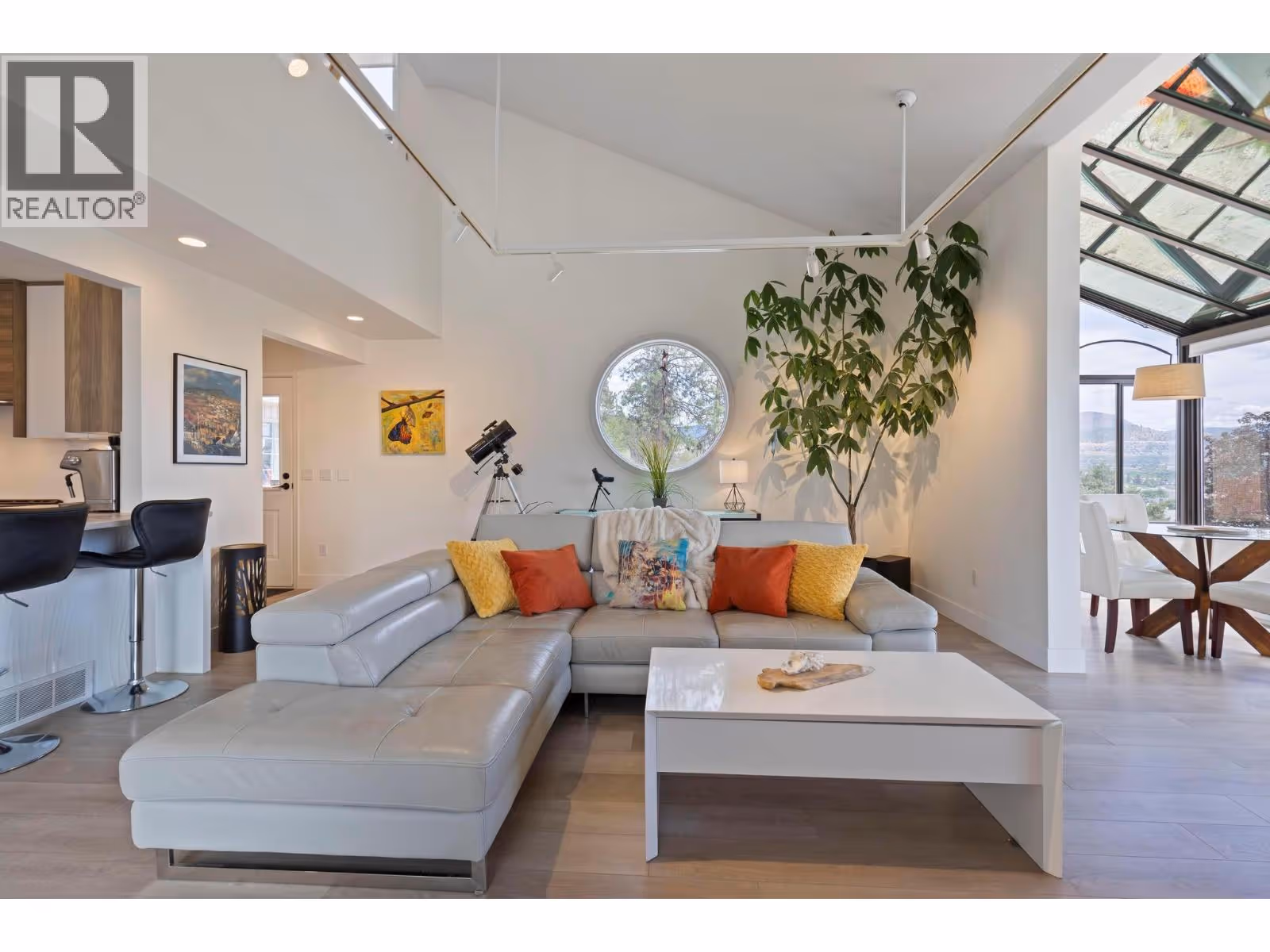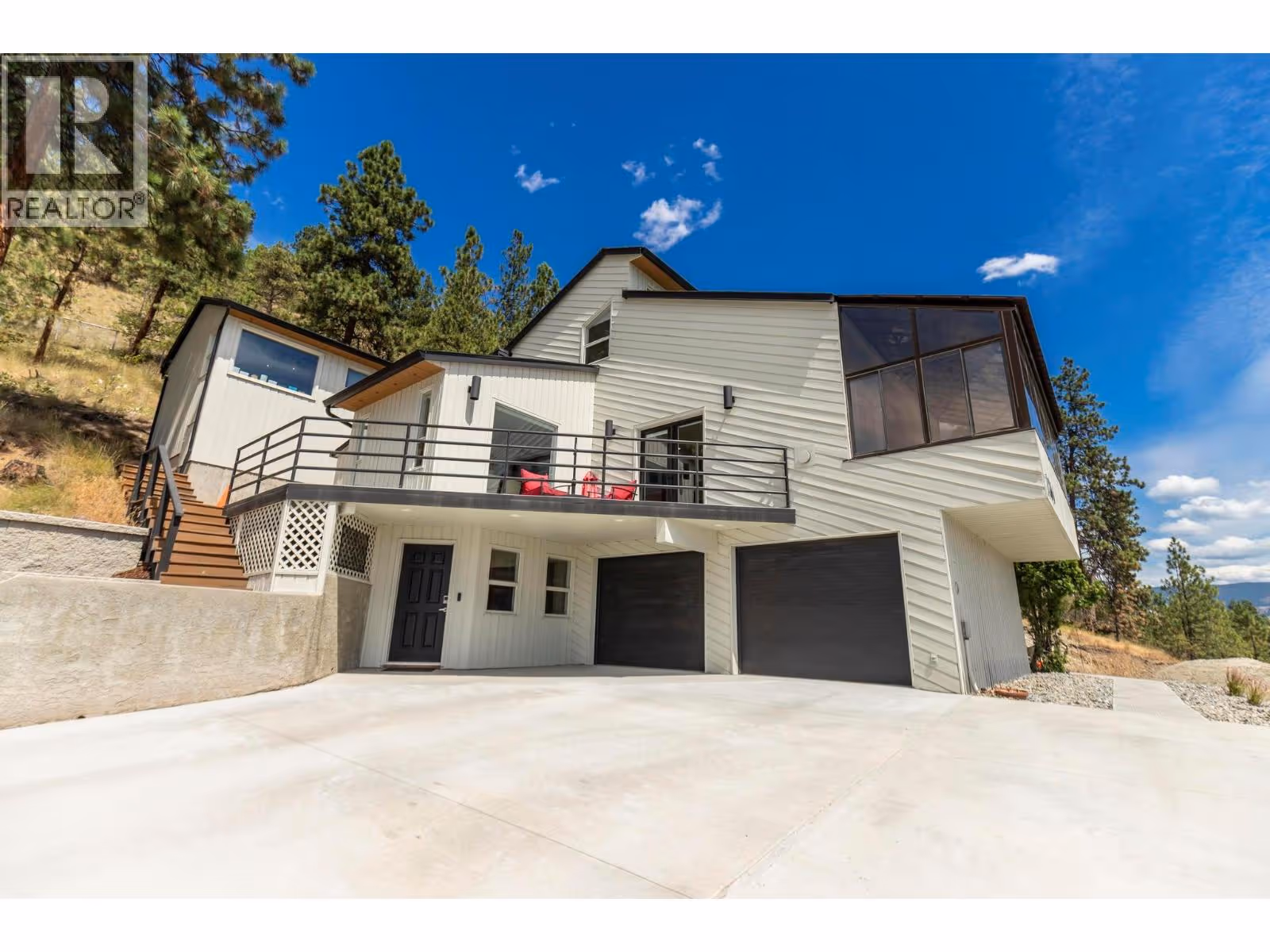 Channeling the spirit of L.A.’s iconic hillside homes, this architectural West Coast Contemporary masterpiece has been completely reimagined with sophistication and style. With around $400K in updates, every inch has been thoughtfully redesigned while preserving its original charm. Set on prestigious Dilworth Mountain, just minutes to downtown Kelowna, this 4-bed, 4.5-bath showpiece blends modern luxury with timeless character. Vaulted ceilings, a sleek gas fireplace, and a bold quartz kitchen with stainless steel appliances make the main living space unforgettable. The lofted area flex space is ideal for a home office, workout space, artistic retreat, or can be used as a bedroom. Enjoy breathtaking lake and mountain views from the solarium, oversized balcony, or your private hot tub patio off the vaulted primary suite. The spa-inspired ensuite, huge walk-in closet, and sunrise views elevate everyday living. Complete with a separate dining room, in-law suite, and incredible indoor-outdoor flow with multiple entertaining patios. Double garage plus plenty of extra parking. There’s even room to add a pool—perfectly positioned to capture the view and complete your mountainside oasis. Omineca Place isn’t just a home—it’s a vibe. (id:62999)