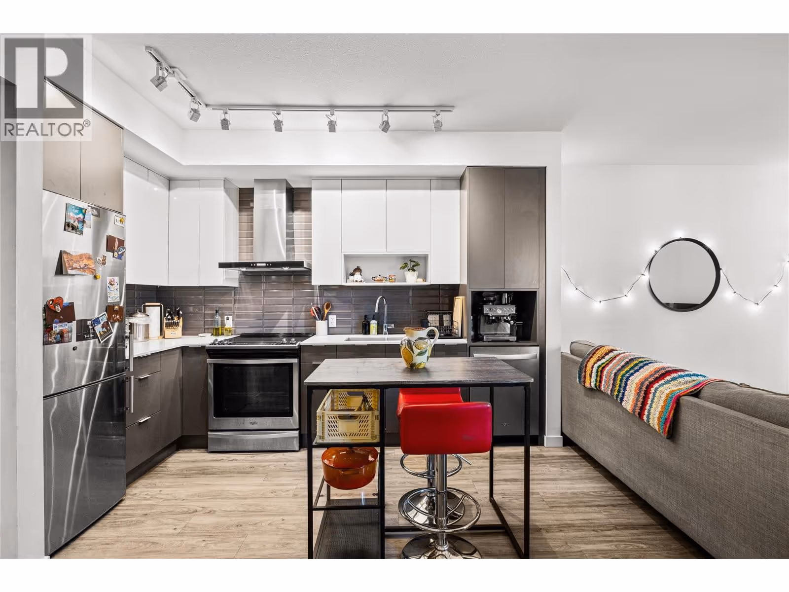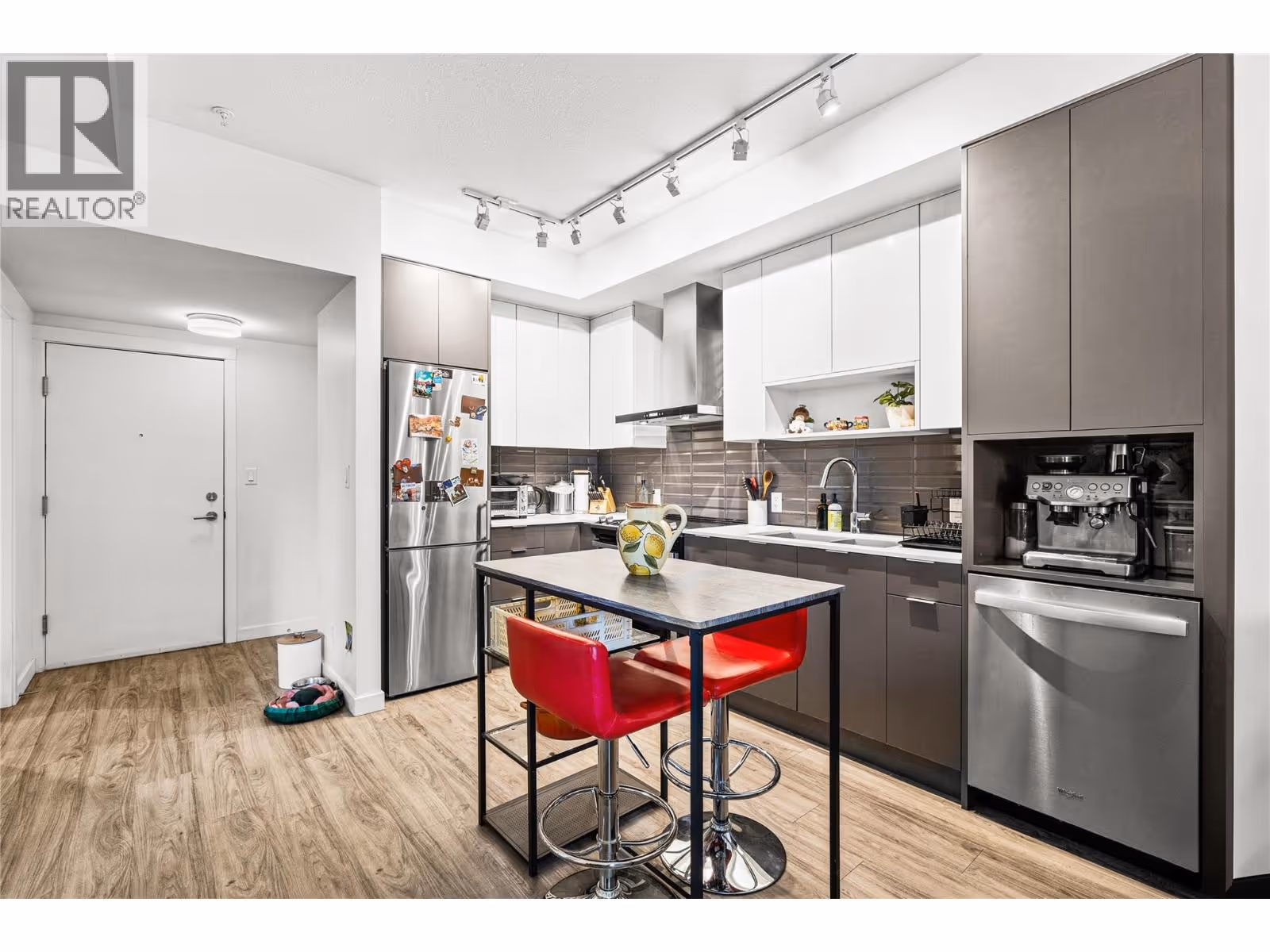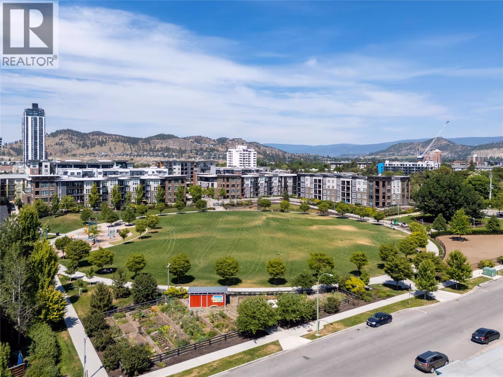 Bright & modern 1 bed condo with large, ground level patio at Central Green! Welcome to your peaceful urban retreat in the heart of Kelowna. This stylish one bedroom, one bathroom condo is tucked away on the quiet courtyard side of the sought-after, LEED-certified Central Green 2 development, a pet-friendly community directly beside Rowcliffe Park. Rarely offered, this unit features an extra-large patio, perfect for outdoor relaxation, entertaining and pets. Inside, enjoy the airy feel of higher ceilings and an open-concept layout. The kitchen is outfitted with sleek quartz countertops and stainless steel appliances and brand new stove, offering a clean, modern aesthetic. The home comes with one secure underground parking stall and a private storage locker for added convenience. Located just steps from downtown via the new Bertram pedestrian overpass, you're within walking distance to restaurants, shops, groceries, beaches, and schools. Kelowna General Hospital is only a five-minute drive away. Rowcliffe Park features a community garden and a fully fenced dog park, making this area ideal for all everyone. (id:62999)