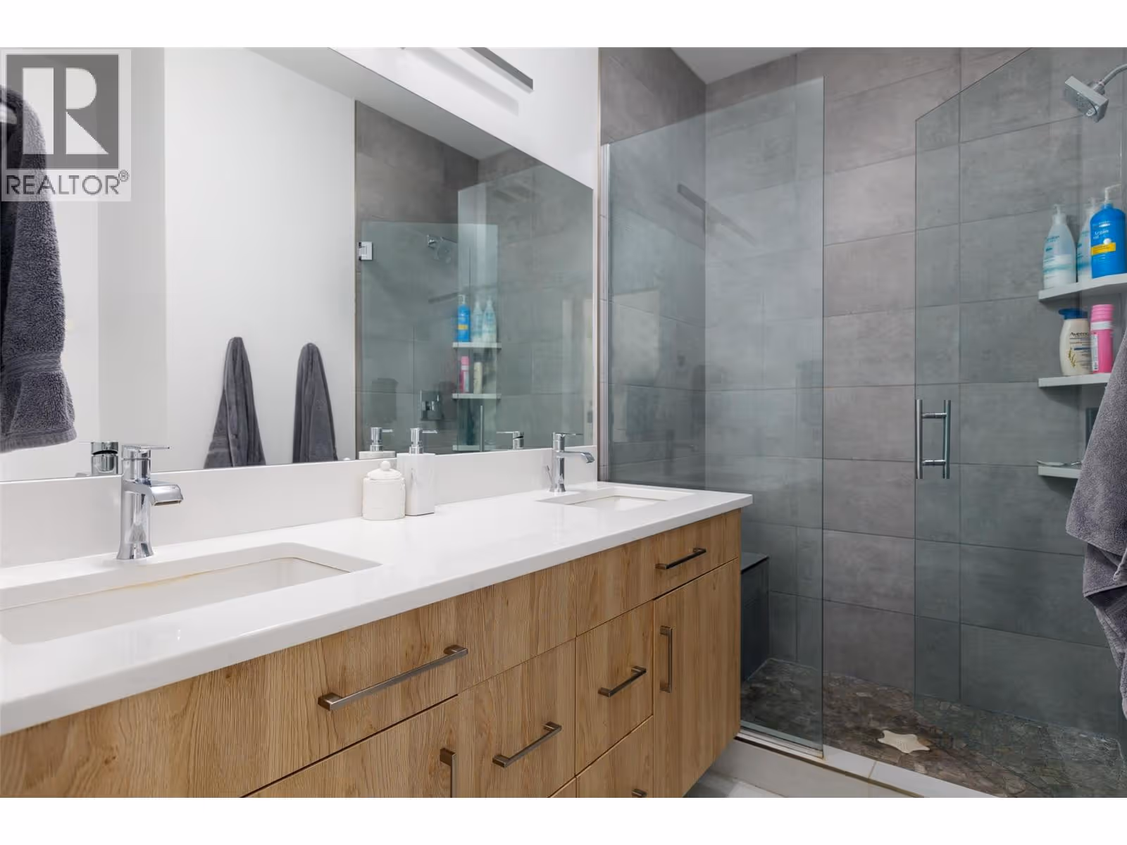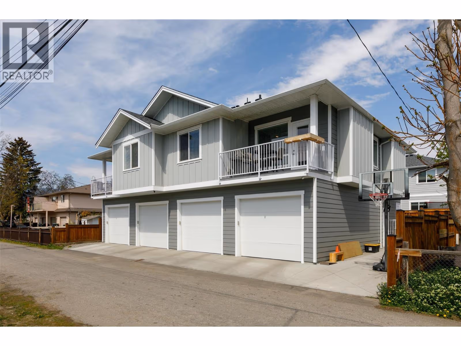 Welcome to this rare half duplex in an exclusive four-unit strata community, offering maximum affordability with the perfect blend of privacy, luxury finishes, and unbeatable walkability in one of Kelowna’s most desirable neighbourhoods. This two-storey home is ideally situated within walking distance to the beach, the vibrant Pandosy Corridor, Kelowna General Hospital, Raymer Elementary, KLO Middle School, Kelowna Secondary School, Okanagan College, and numerous parks and recreation. A truly exceptional location for families, professionals, or anyone seeking convenience and lifestyle. Inside, you’ll find a thoughtfully designed layout featuring a gourmet kitchen with clean white cabinetry, quartz countertops, and premium KitchenAid stainless steel appliances, perfect for entertaining or everyday living. Luxury finishes continue throughout the home, highlighted by central air and heat, plus ceramic heated floors in the spa-inspired primary ensuite complete with a 5-piece layout, tile and glass walk-in shower, and elegant undermount cabinet lighting. Step outside to your partially covered deck with natural gas hookup, ideal for year-round BBQs while enjoying peaceful mountain views and added privacy. Additional features include a single secured garage with durable epoxied floor, ample storage throughout, and affordable strata fees. This is a rare opportunity to own a stylish, low-maintenance home in a prime Kelowna location, perfect for families or those looking to enjoy the very best of Okanagan living. (id:62999)