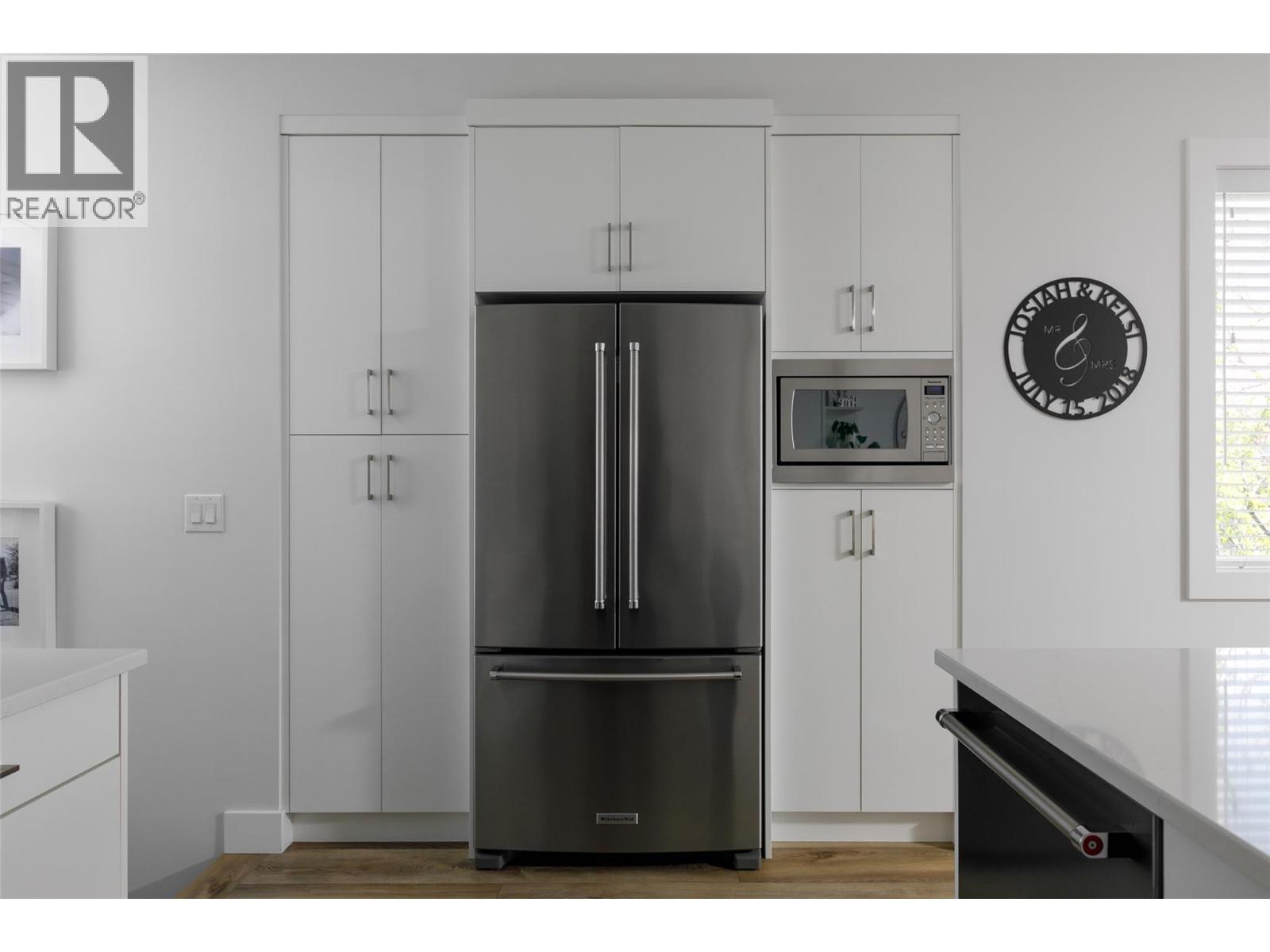Welcome to this rare half duplex in an exclusive four-unit strata community, offering maximum affordability with the perfect blend of privacy, luxury finishes, and unbeatable walkability in one of Kelowna’s most desirable neighbourhoods. This two-storey home is ideally situated within walking distance to the beach, the vibrant Pandosy Corridor, Kelowna General Hospital, Raymer Elementary, KLO Middle School, Kelowna Secondary School, Okanagan College, and numerous parks and recreation. A truly exceptional location for families, professionals, or anyone seeking convenience and lifestyle. Inside, you’ll find a thoughtfully designed layout featuring a gourmet kitchen with clean white cabinetry, quartz countertops, and premium KitchenAid stainless steel appliances, perfect for entertaining or everyday living. Luxury finishes continue throughout the home, highlighted by central air and heat, plus ceramic heated floors in the spa-inspired primary ensuite complete with a 5-piece layout, tile and glass walk-in shower, and elegant undermount cabinet lighting. Step outside to your partially covered deck with natural gas hookup, ideal for year-round BBQs while enjoying peaceful mountain views and added privacy. Additional features include a single secured garage with durable epoxied floor, ample storage throughout, and affordable strata fees. This is a rare opportunity to own a stylish, low-maintenance home in a prime Kelowna location, perfect for families or those looking to enjoy the very best of Okanagan living. (id:62999)