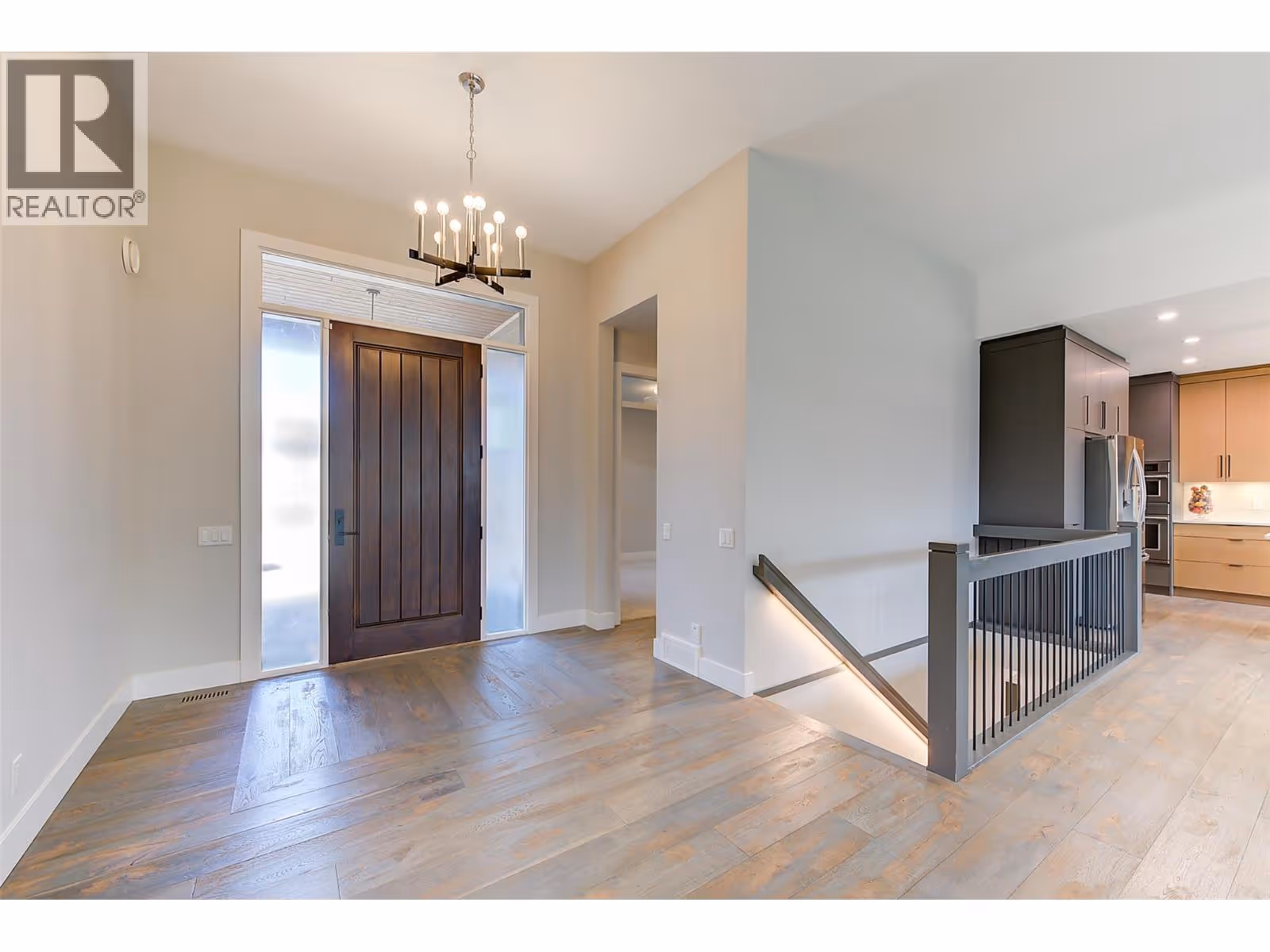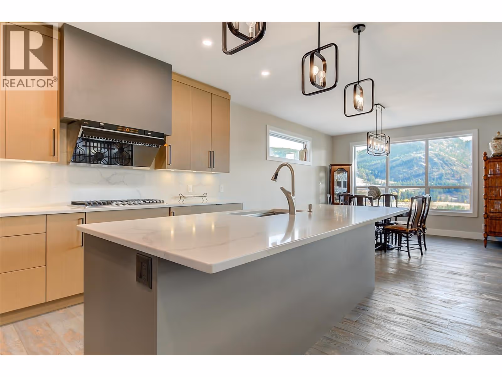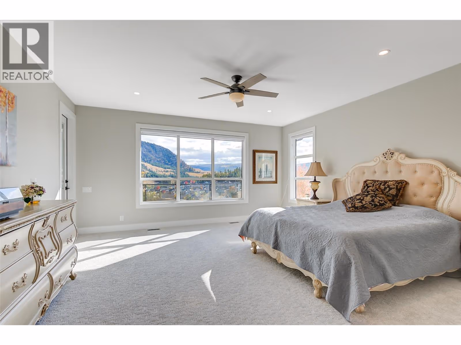 GORGEOUS EXECUTIVE WALK OUT RANCHER WITH DRAMATIC UNOBSTRUCTED 180 DEGREE MORNING SUN VIEW OVER BLACK MOUNTAIN GOLF COURSE, MOUNTAINS AND VALLEY plus a SUITE! Impressive Spacious Open plan with huge windows that take in the amazing View! Indirect Triple Garage and Exposed aggregate driveway offers an impressive Entry for guests and parking. Step into this Dream home and you will love the High Ceilings, Quality Wide plank engineered OAK hardwood floors, and Massive windows that flood the home with natural light. Massive Great Room with gas fireplace. Modern and Classy 2 tone wood kitchen with Upscale Professional series S/S appliances, Gas stove with Glass stove hood, Huge island, pullouts is a Chef's Dream! Large walk though butler's pantry with quartz counters and second sink. Big Mudroom & cubbies to Huge triple Garage for all the Toys! Spacious open dining room with glass doors to a huge semi covered deck for seamless in/out enjoyment of the stellar view. Primary Bedroom is fit for a King, with a stunner morning sun view! Walk in closet, built-ins. Lavish 5 piece Ensuite with Queens Royal free standing tub, massive walk in double tiled shower, raised under lit counters and more! 2 Beds up, 2 Beds down, Big family room, and Big Glass enclosed patio down set up for a gym! ADDITIONAL Self contained 1 bed Suite is beautiful and bright. An amazing home and property backing onto Natural zoned area offering Unhindered View...Wow! (id:62999)