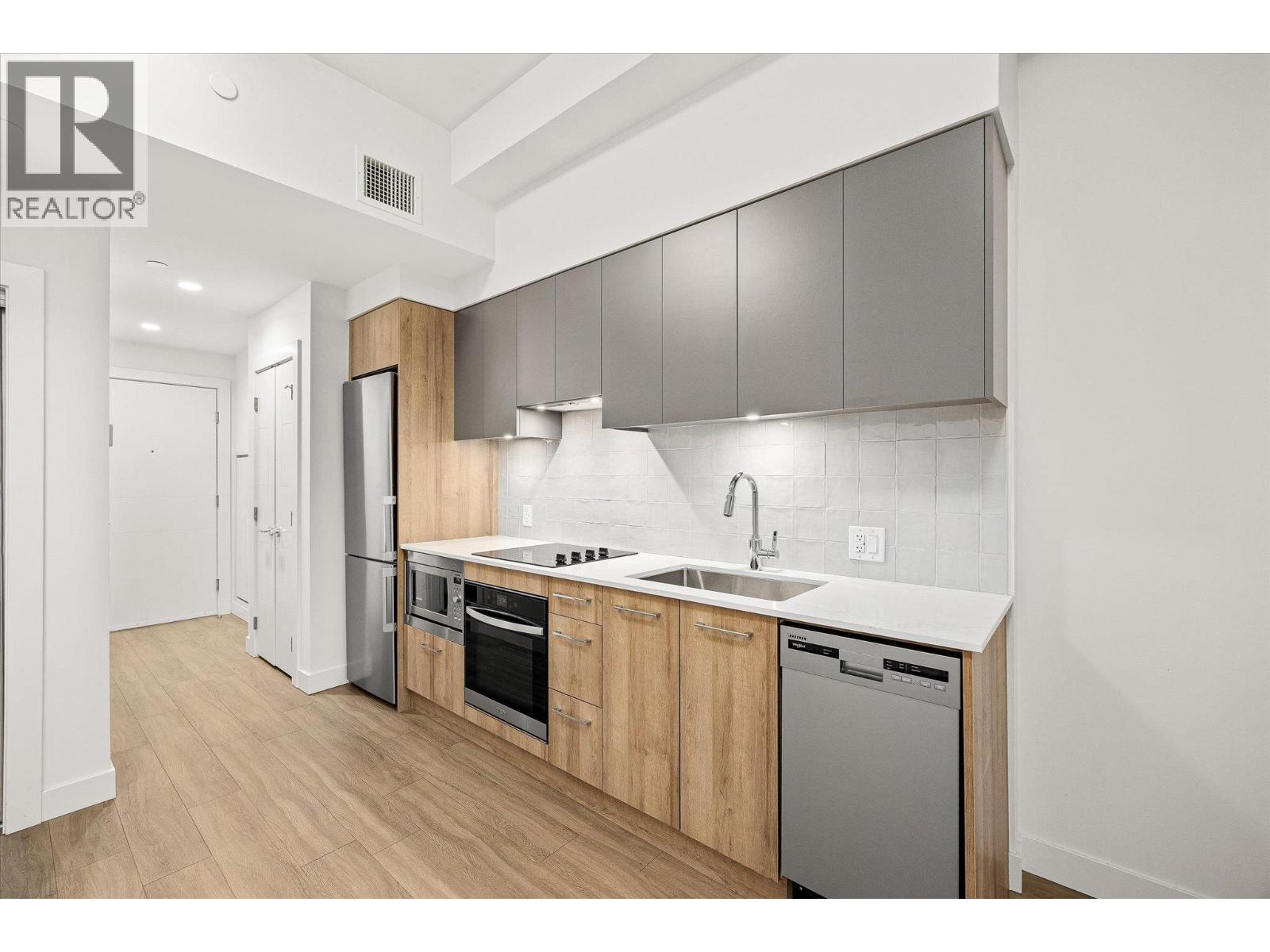 RARE A4 STUDIO. EV PARKING. XL COVERED PATIO. An exceptional opportunity to own a premium studio residence in AQUA, Kelowna’s landmark waterfront community, offering a rare combination of EV-parking, private storage, bike locker, and an oversized covered patio ideal for year-round use. This intelligently designed studio lives larger than expected, with living and sleeping area, 10 ft. ceilings, oversized windows, and a full kitchen finished with quartz countertops, stainless steel appliances, and custom closet organizers. Built with solid concrete construction, AQUA delivers superior soundproofing and long-term durability, complemented by efficient VRV heating and cooling, ERV ventilation, and a centralized hot water system. Residents enjoy access to resort-style amenities including an outdoor pool, rooftop hot tub, expansive fitness and wellness centre, fireside lounge, shared entertaining spaces, and more. Pet-friendly with priority access to the Aqua Boat Club. A compelling option for buyers seeking flexibility, lifestyle, and long-term value in a highly desirable waterfront setting, whether as a personal retreat or strategic holding in a unique building with limited studio supply. (id:62999)