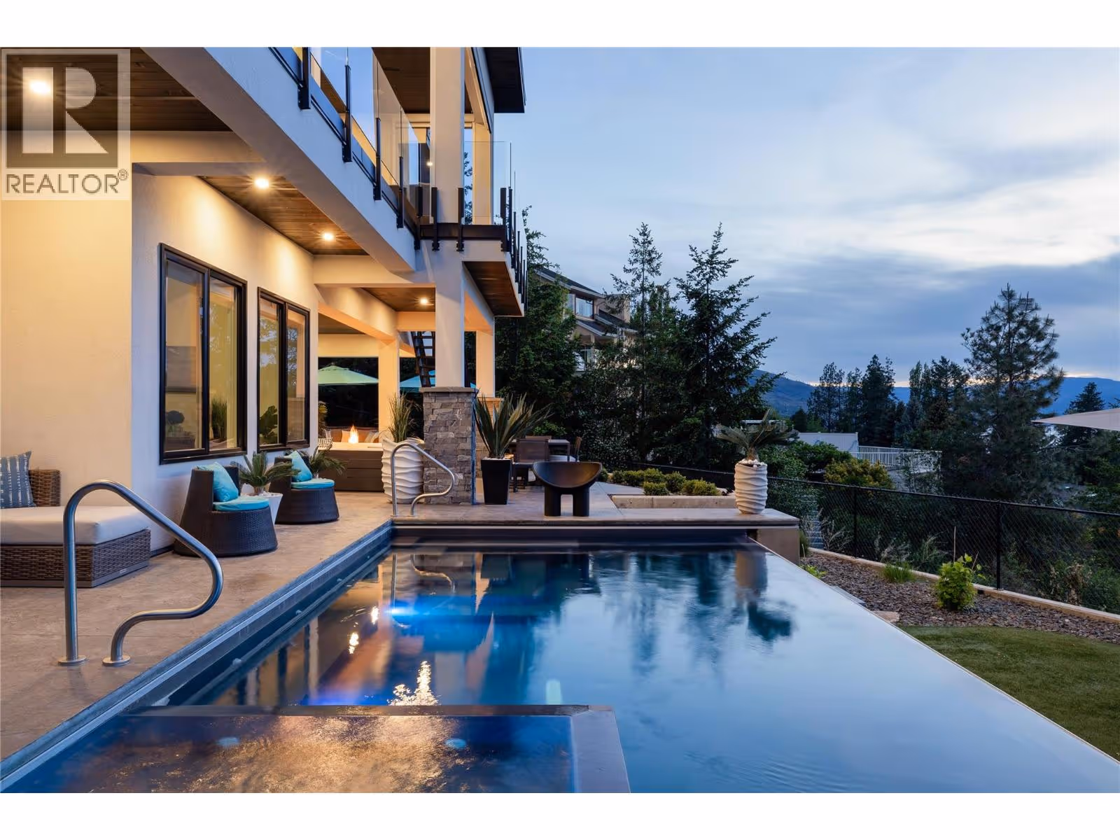 WELCOME to this exquisite 4641 sq ft walk-out rancher, perfectly situated to offer spectacular views of the lake, city and valley. This luxurious home features resort-style indoor- outdoor living. Enjoy the infinity edge swimming pool and hot tub complemented by expansive deck spaces on both levels- providing perfect spots for entertaining or simply soaking in the views. Inside you will find a gym area, theatre room, wet bar and temp controlled wine room as a few ""added extras"". This 2021 built home boasts 4 generous sized bedrooms all with lake views. The main floor primary bedroom with large walk in closet and laundry and 5 piece ensuite is designed for age in place living providing comfort and convenience. A spacious 3 car garage offers plenty of room for your vehicles and toys and a heated drive. Upper and Lower floors have in floor radiant heat. Do you have a cook in the family? WELL- this kitchen is truly an entertainer/chefs delight with a large servery. A fully fenced yard with pet friendly synthetic turf. This truly is an exceptional home- where every detail has been carefully considered for your utmost comfort. There's so many details that it truly needs to be seen. * measurements taken from the I guide floor plan in supplements (id:62999)