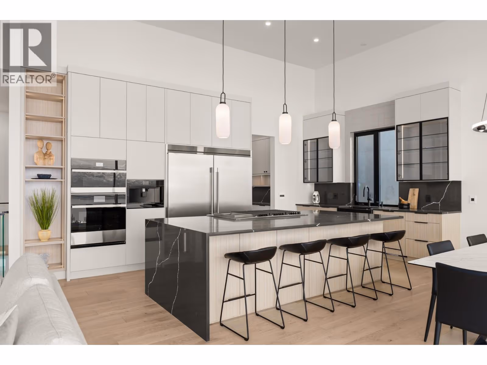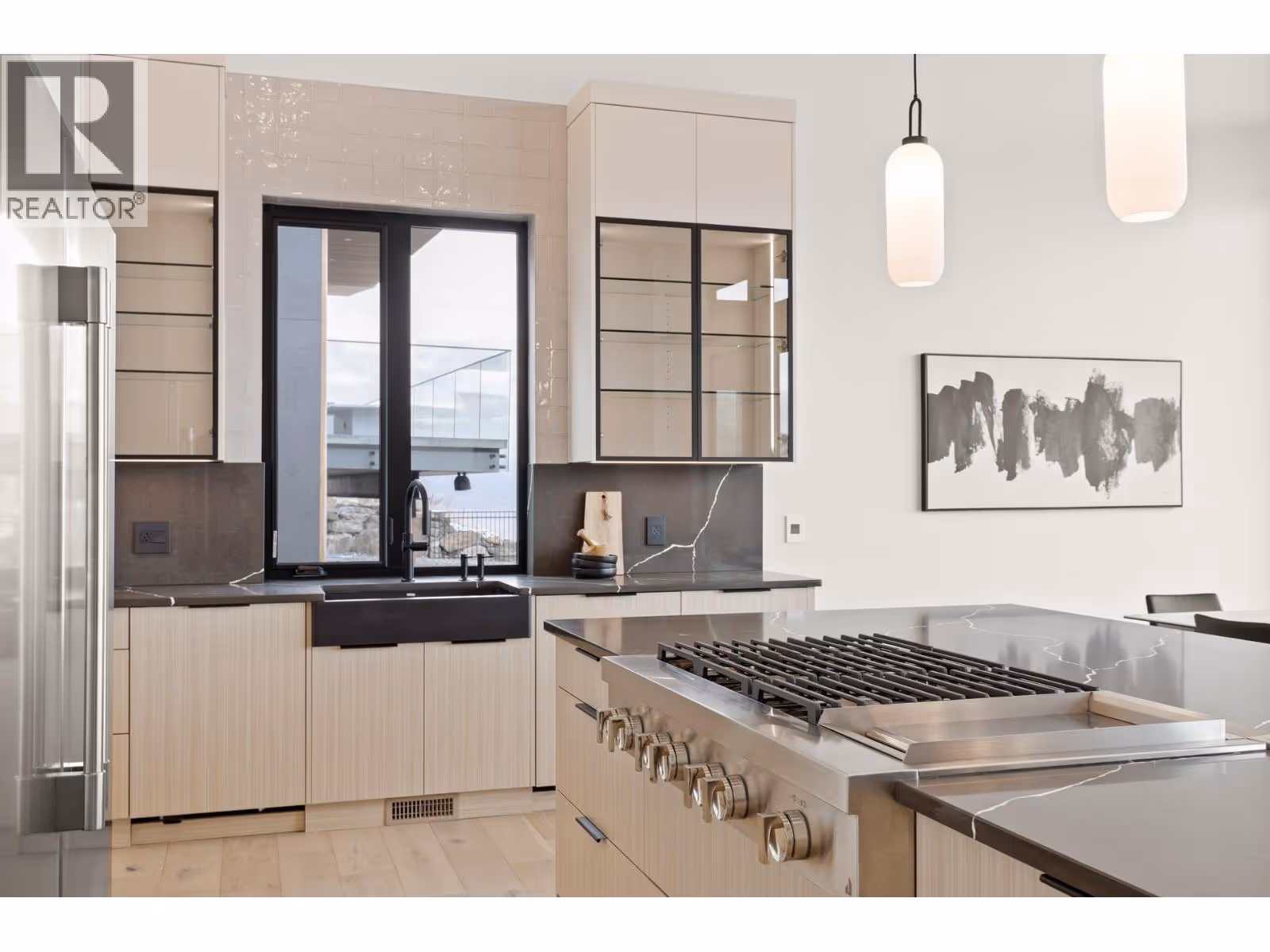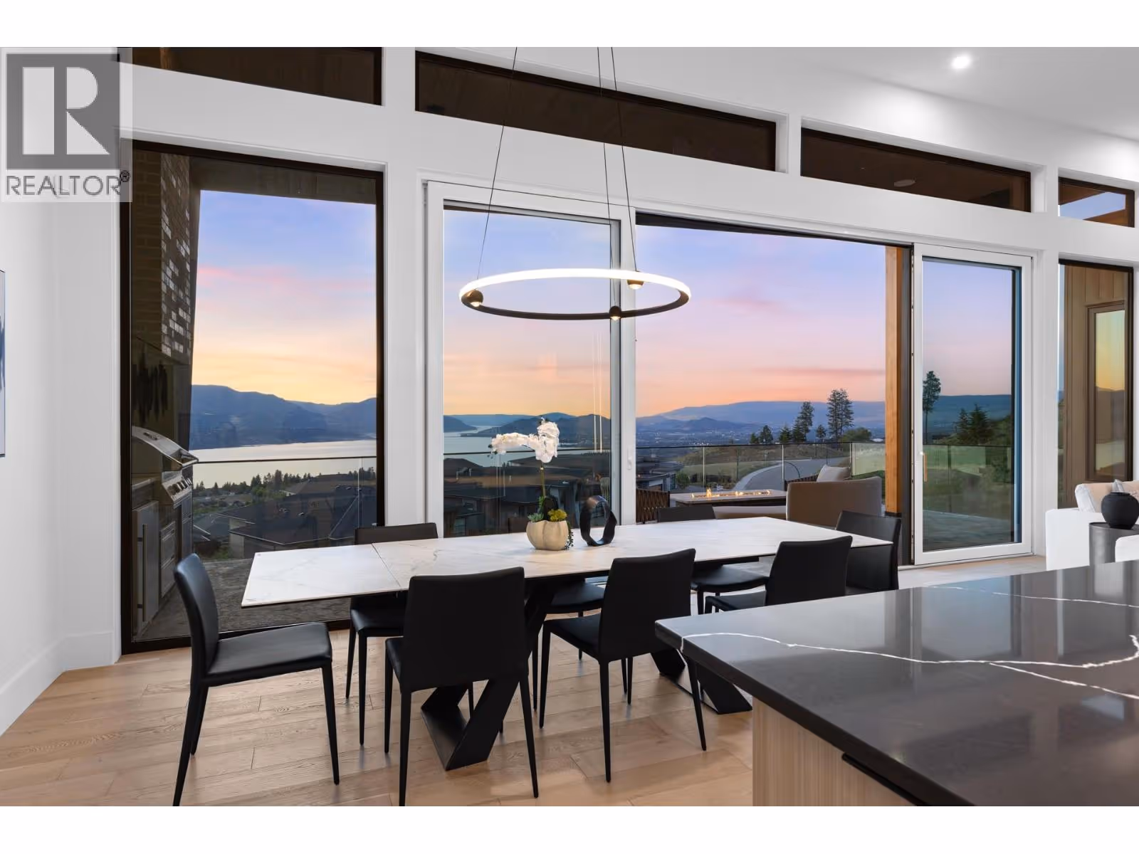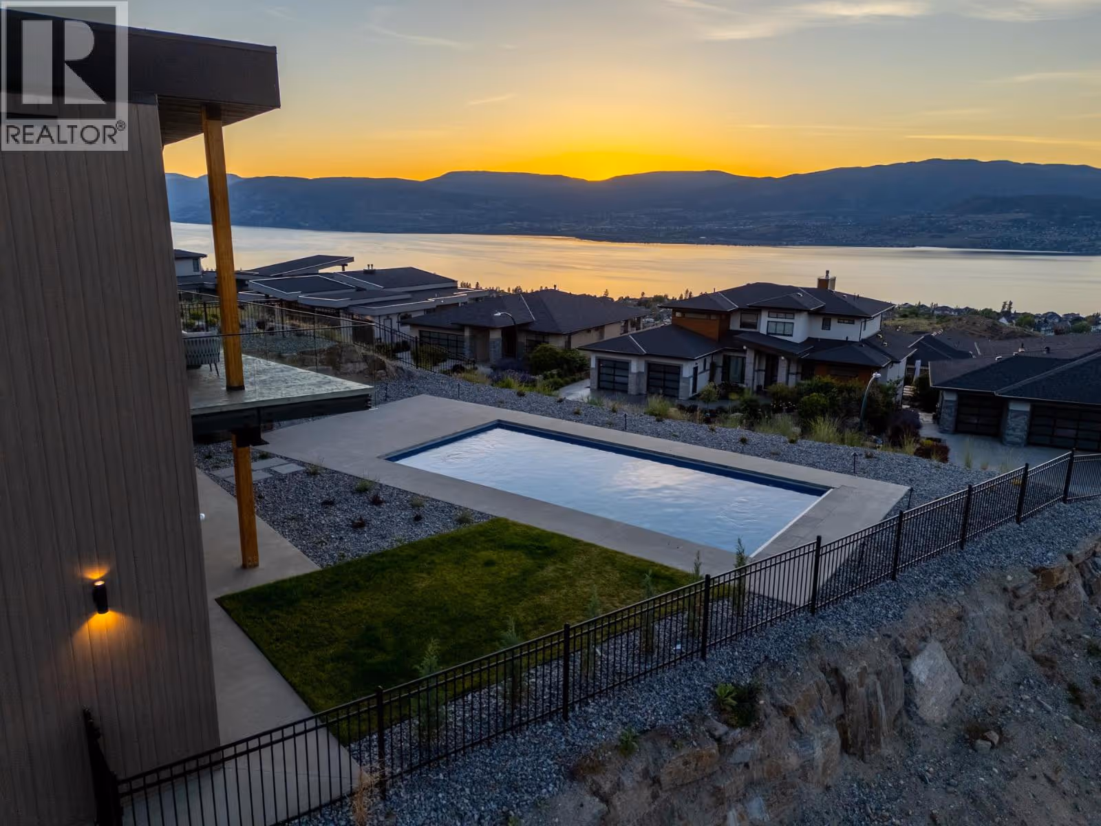 Experience modern Okanagan luxury in this brand-new custom-built walkout rancher, designed to impress with striking architecture, high-end finishings, and breathtaking lake, sunset, and city views. This home seamlessly blends contemporary elegance with functional design, delivering an unmatched indoor-outdoor lifestyle. The open-concept main level is highlighted by floor-to-ceiling sliding doors that expand to a spacious covered patio, complete with built-in BBQ, fire table, and panoramic views. The chef’s kitchen is a showstopper with premium Jennair appliances including a 6-burner gas cooktop, built-in oven, full-size fridge/freezer, double dishwashers, and built-in coffee station. A walk-through pantry connects directly to the laundry room and heated garage for everyday convenience. The luxurious primary bedroom features spa-inspired ensuite with fluted freestanding tub, steam shower, and large walk-in closet. A private office and a designer guest powder room with preserved moss wall and onyx sink complete the main level. Downstairs is designed for entertaining, opening directly to your backyard oasis with 16x32 pool (with auto cover), hot tub, and a second built-in BBQ area. Inside, enjoy the wet bar, theater room, gym with sports flooring, and ample storage. The legal 1-bedroom suite (option for a 2nd bdrm) offers flexibility for guests or rental income. Oversized heated garage features epoxy floors, an 11-foot door for RV or boat access, and roughed-in A/C. (id:62999)
