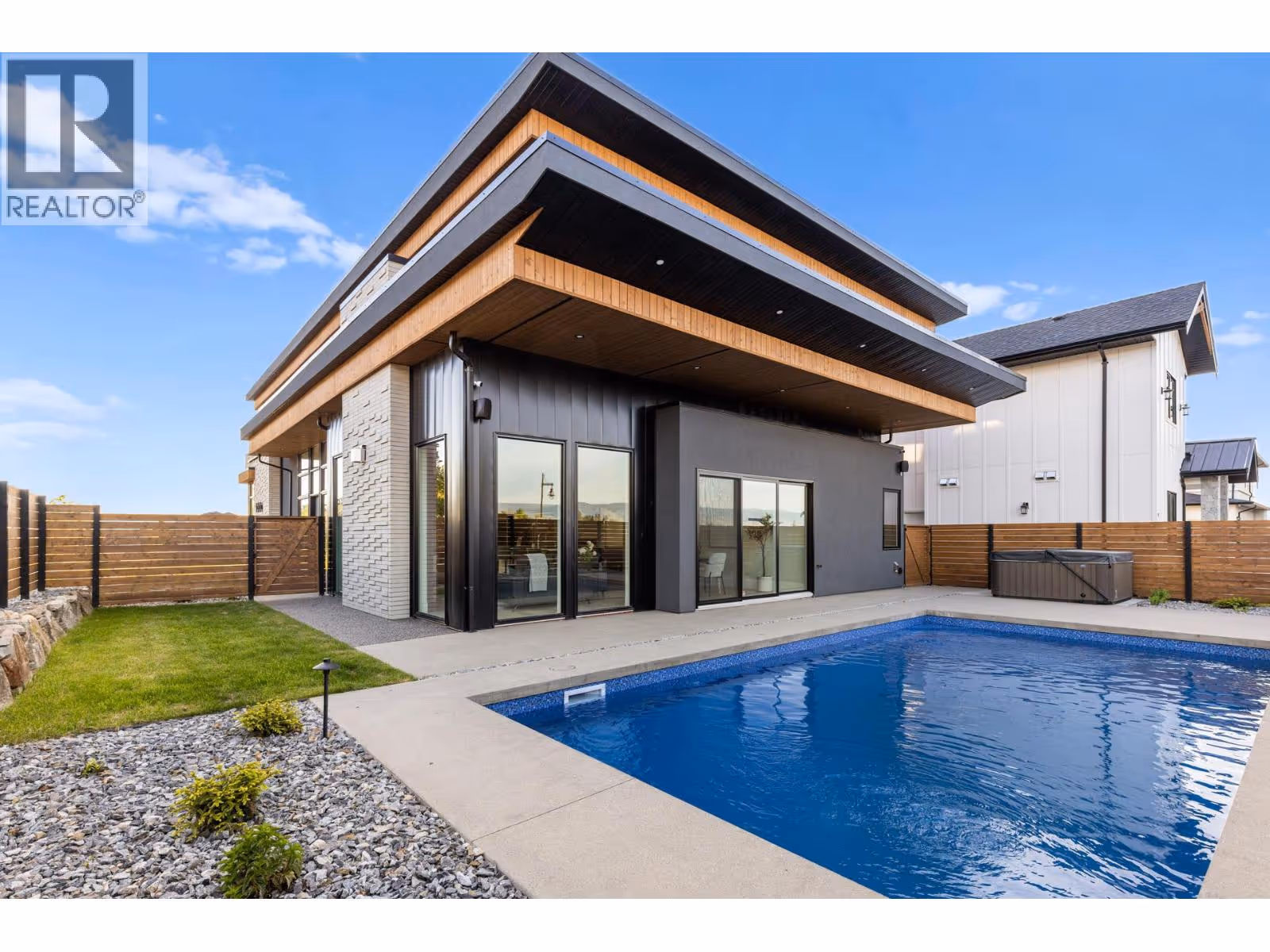 Brand new, high quality home with unique modern architecture, luxurious finishes, inground pool, hot tub and even a one bedroom legal suite! Open-concept main floor HIGH END designer kitchen features oversized island with sleek Deckton porcelain counters, bar area, full-sized fridge/freezer, gas cooktop, built-in oven and oversized floor to ceiling windows that fill the home with natural light. Upstairs offers 4 spacious bedrooms, along with a versatile loft and flex space perfect for a playroom, study, or additional storage. The primary suite is a private retreat, boasting a steam shower and an oversized walk-in closet. A second primary-style bedroom has its own ensuite and shared balcony, to provide added comfort for family or guests. A bright den/office on the main floor provides an ideal workspace. The property also includes a self-contained one-bedroom legal suite, ideal for extended family, guests, or rental income. Navien on-demand H20, SONOS sound system and built-in wall vacuums enhance everyday living. The backyard is surprisingly private with its fenced yard around your private oasis - a sparkling 14x28 saltwater POOL and HOT TUB, perfect for relaxation or entertaining. Best of all you are walking distance to the new middle school and shopping centre! New Home Warranty and Price Plus GST. Click VIRTUAL TOUR link for a 3D walkthrough, all photos, video and downloadable floorplans. (id:62999)