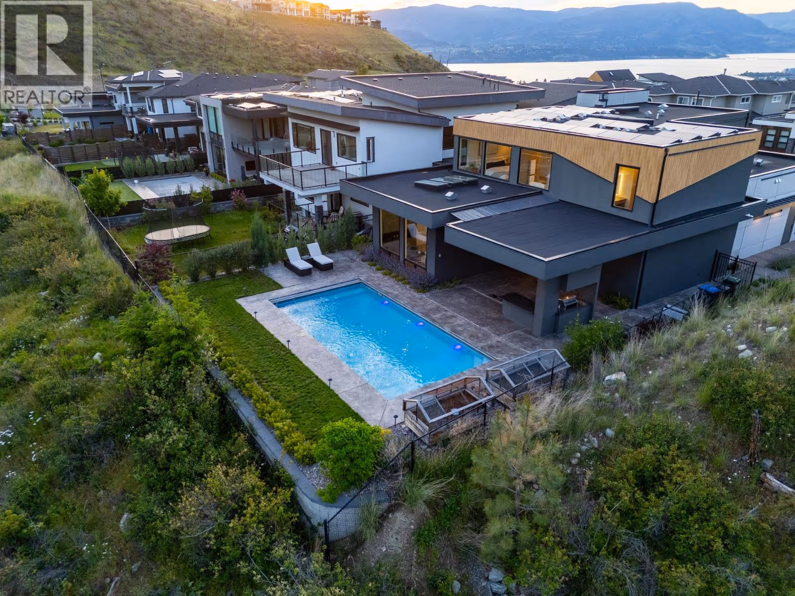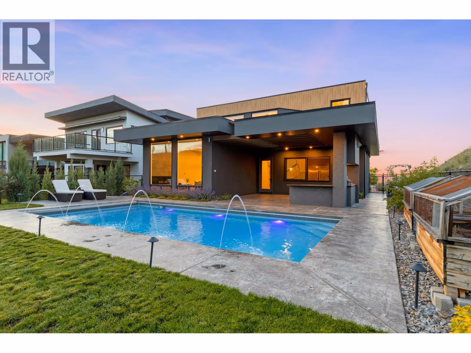 Welcome to 1297 Jack Smith Road in Kelowna’s Upper Mission at The Ponds! Custom built in 2021, this modern, contemporary 2 storey home backs onto nature and offers luxury living without GST. (This was previously the builders residence and is now VACANT.) The open-concept main floor features skylights, floor-to-ceiling windows, a sleek gas fireplace with LED accents, and a stylish kitchen with Dekton countertops, an induction cooktop, built-in oven, full sized fridge/freezer, optional live edge eating bar (can be removed) and pass-through window to the outdoor kitchen/BBQ area. The backyard is an entertainer's dream with a 16x32 saltwater pool, auto cover, and covered patio overlooking nature. Upstairs, the primary suite boasts a spa-like en-suite with a steam shower, soaker tub, heated towel rack, and walk-in closet. Three additional bedrooms, including one with an ensuite, provide plenty of space. Additional features include a heated garage with an 11-foot door, on-demand hot water, water softener, Factor sound system, security system, and solar panels. All this, just minutes from the new middle school and shopping center. This home is the perfect mix of style, comfort, and convenience! Click VIRTUAL TOUR link for a 3D walkthrough, all photos, video and downloadable floorplans. (id:62999)