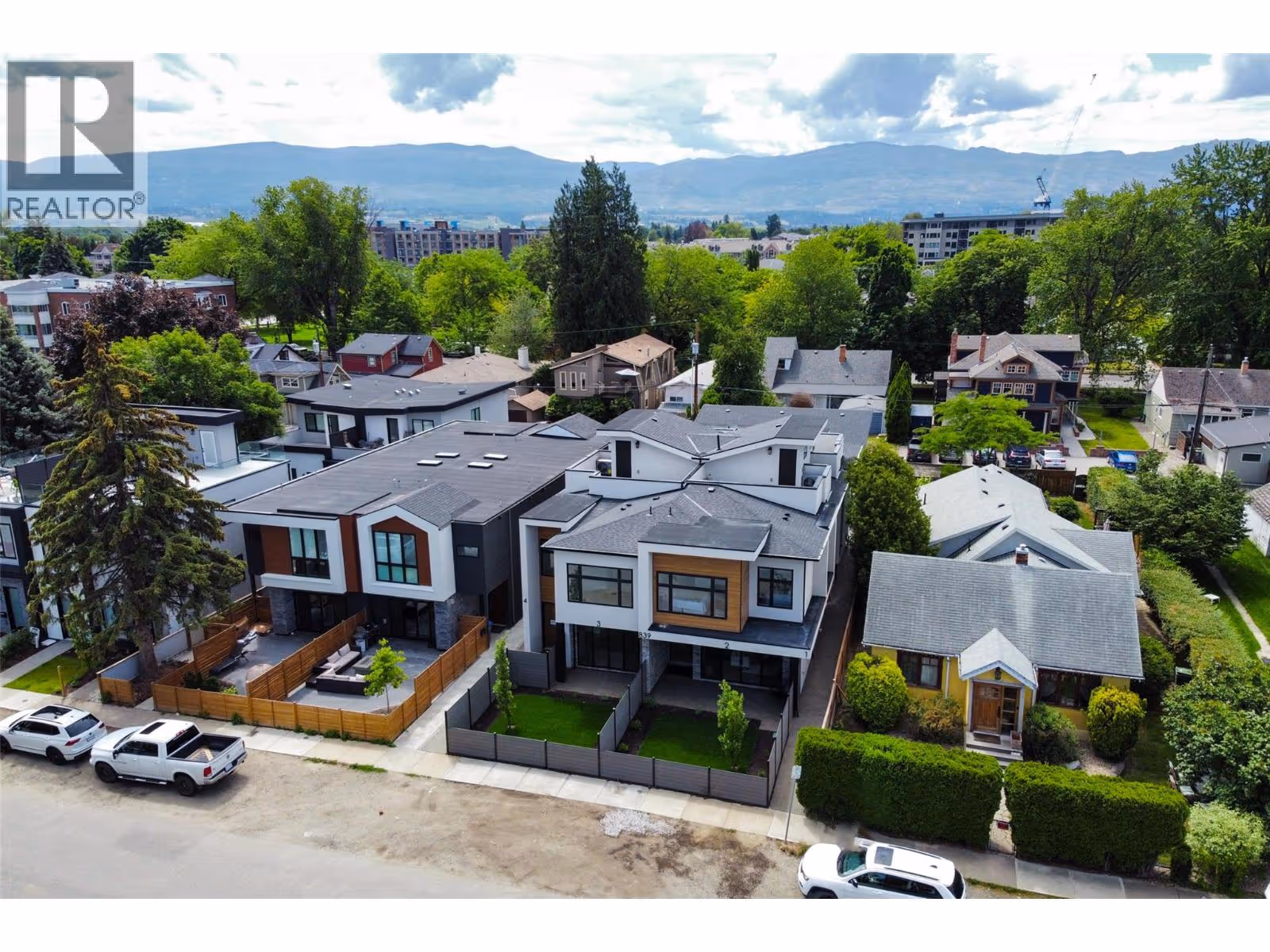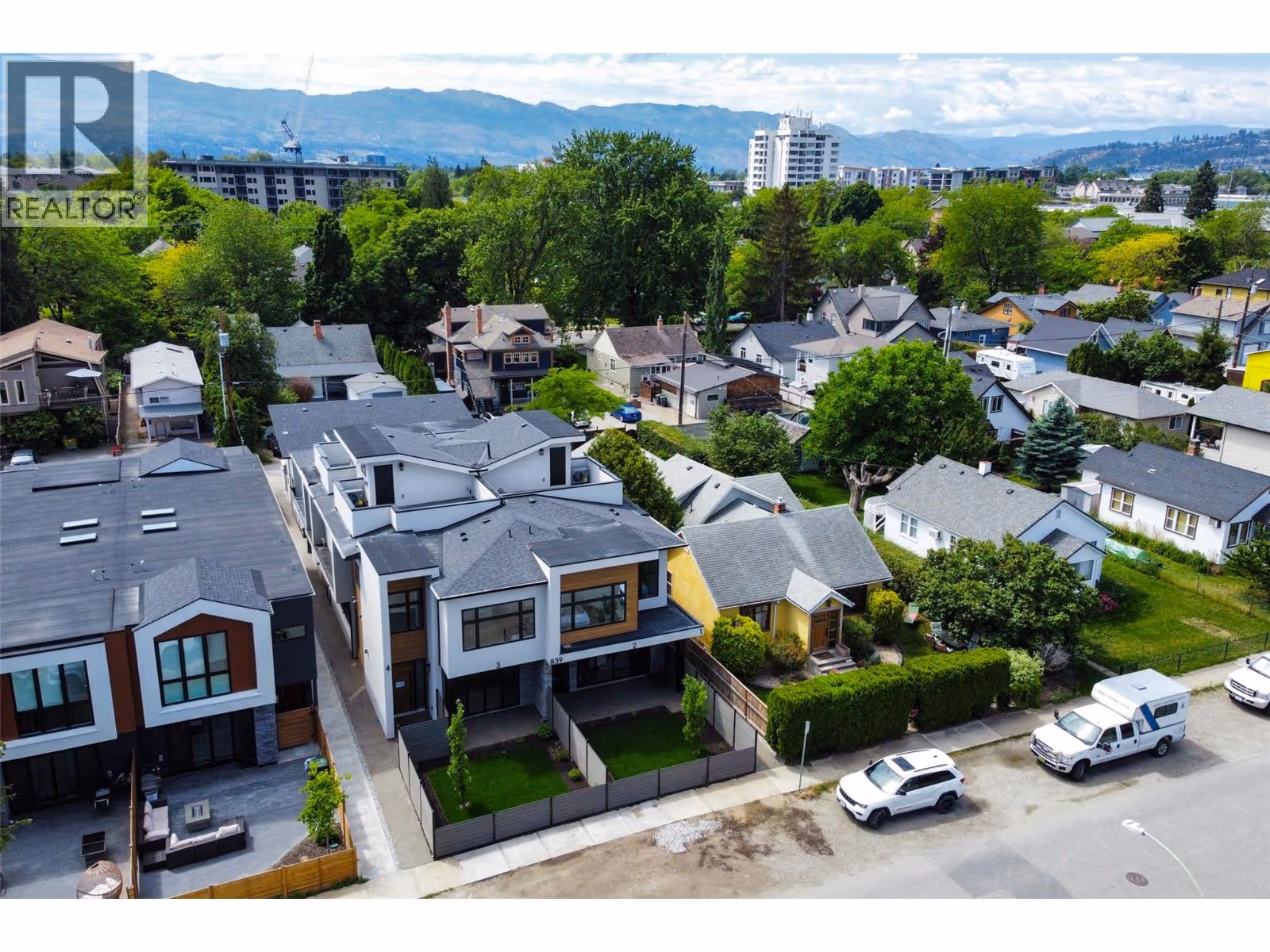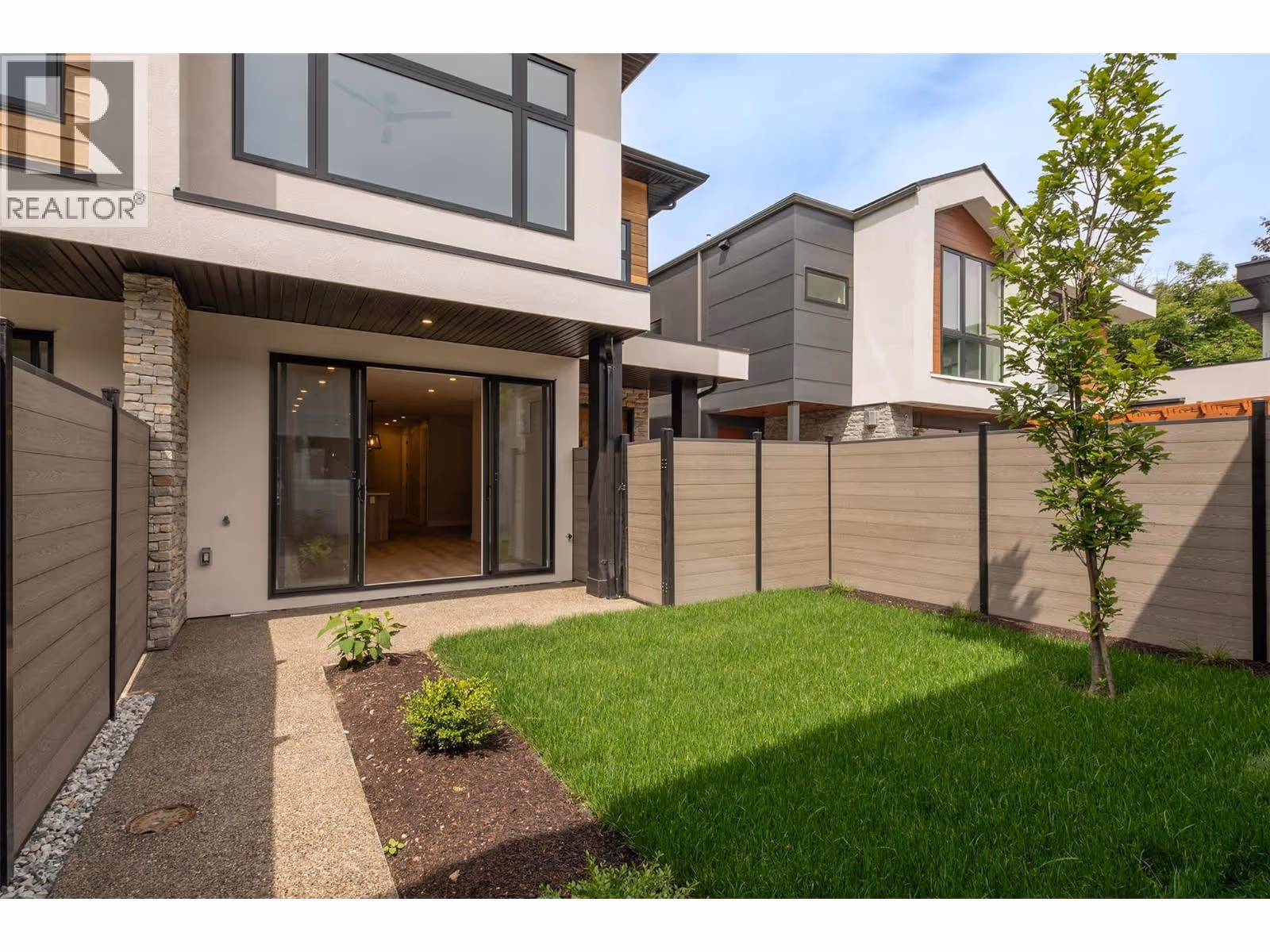 Discover Luxury Downtown Living - Step into this custom-built, North-facing townhome, offering 3 bedrooms, 2.5 bathrooms, and two stories of exquisite design. Topped with a rooftop patio prepped for a hot tub, this home invites you to embrace the Okanagan’s signature outdoor lifestyle. Every detail has been carefully curated to exude sophistication. Expansive windows fill the space with natural light, complementing the modern exterior of concrete and wood finishes. Inside, the chef-inspired kitchen stands out with a large island, stainless steel appliances, quartz countertops, and a custom backsplash framing the gas stove and 28-inch hood range fan. Throughout the home, premium flooring, a built-in fireplace, and contemporary light fixtures enhance the luxurious ambiance. The primary suite features a spa-like ensuite with a double vanity and a sleek walk-in shower. A large crawl space on the main floor offers ample storage, while the private yard with a covered patio creates your personal oasis. Completing the home is a covered single-car garage with rough-in for an EV charging station, blending convenience with modern living. This townhome isn’t just a residence—it’s a statement of style, comfort, and urban sophistication. Make it yours and elevate your lifestyle today. GST applicable. (id:62999)