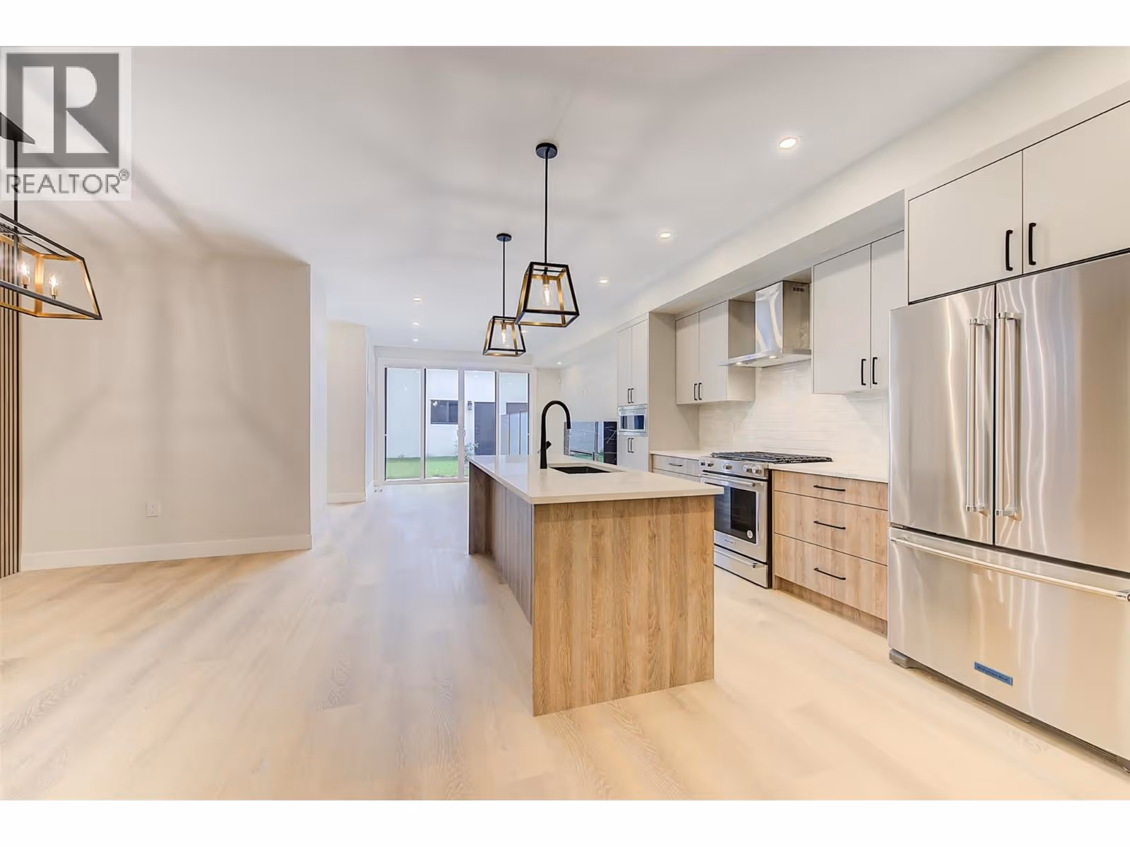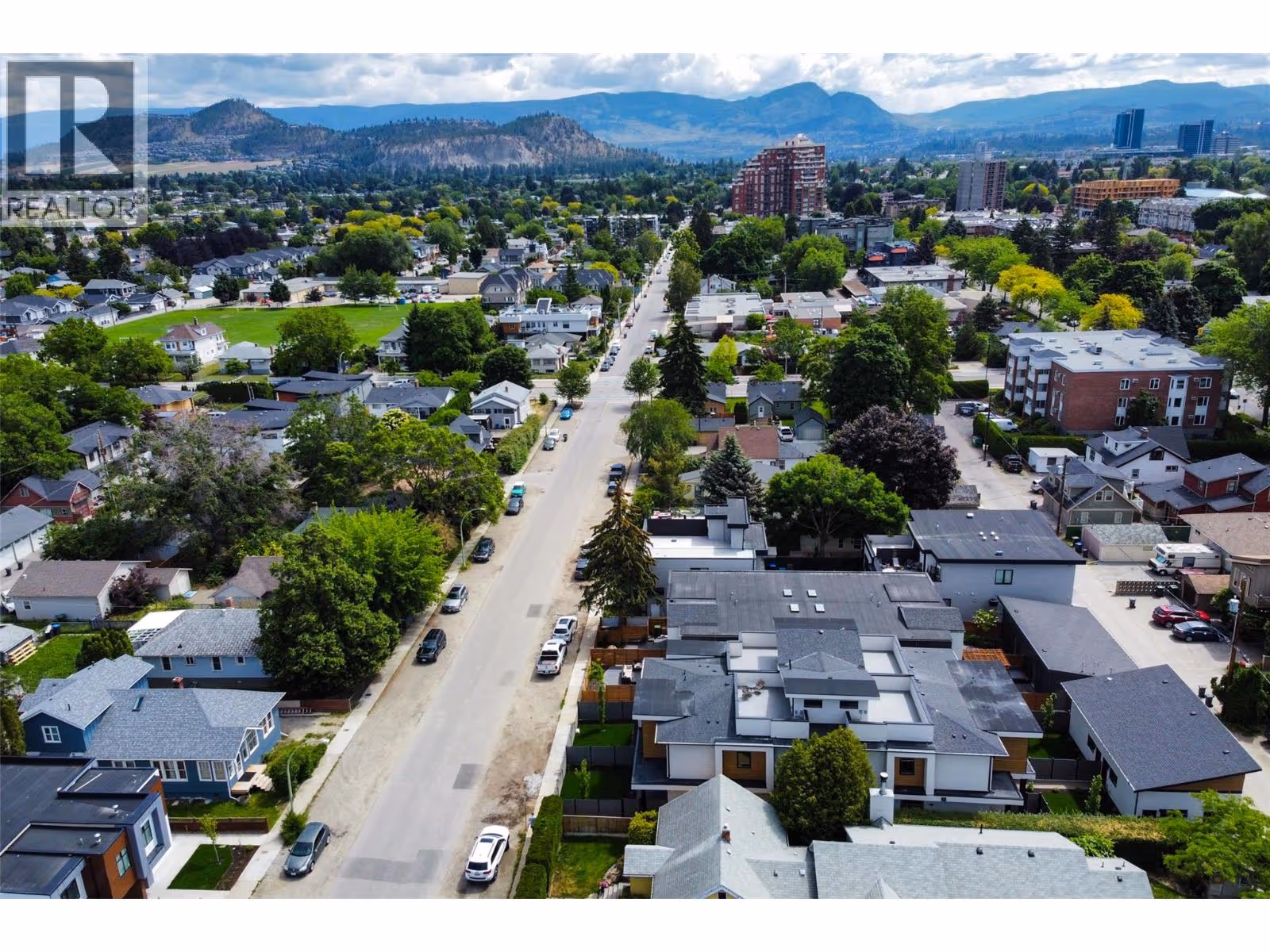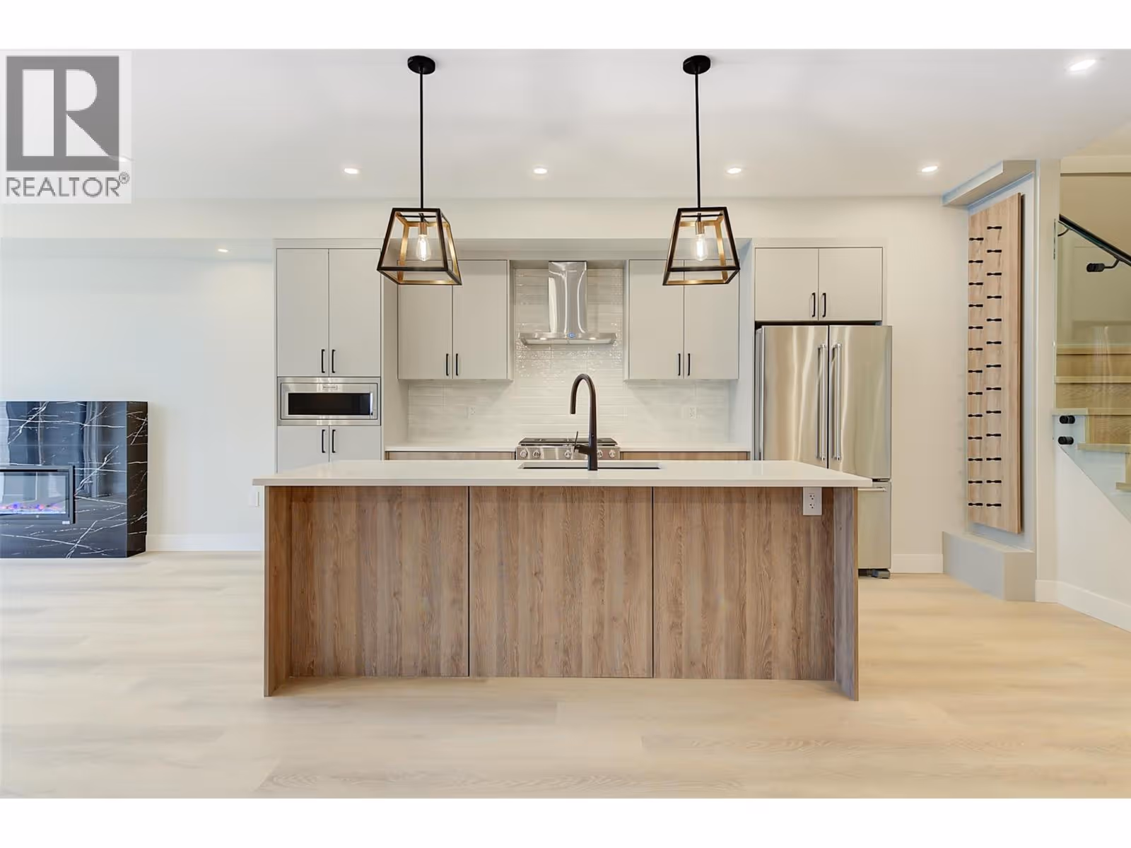 Discover Luxury Downtown Living - Step into this custom-built, North-facing townhome, offering 3 bedrooms, 2.5 bathrooms, and two stories of exquisite design. Topped with a rooftop patio prepped for a hot tub, this home invites you to embrace the Okanagan’s signature outdoor lifestyle. Every detail has been carefully curated to exude sophistication. Expansive windows fill the space with natural light, complementing the modern exterior of concrete and wood finishes. Inside, the chef-inspired kitchen stands out with a large island, stainless steel appliances, quartz countertops, and a custom backsplash framing the gas stove and 28-inch hood range fan. Throughout the home, premium flooring, a built-in fireplace, and contemporary light fixtures enhance the luxurious ambiance. The primary suite features a spa-like ensuite with a double vanity and a sleek walk-in shower. A large crawl space on the main floor offers ample storage, while the private yard with a covered patio creates your personal oasis. Completing the home is a covered single-car garage with rough-in for an EV charging station, blending convenience with modern living. This townhome isn’t just a residence—it’s a statement of style, comfort, and urban sophistication. Make it yours and elevate your lifestyle today. GST applicable. (id:62999)