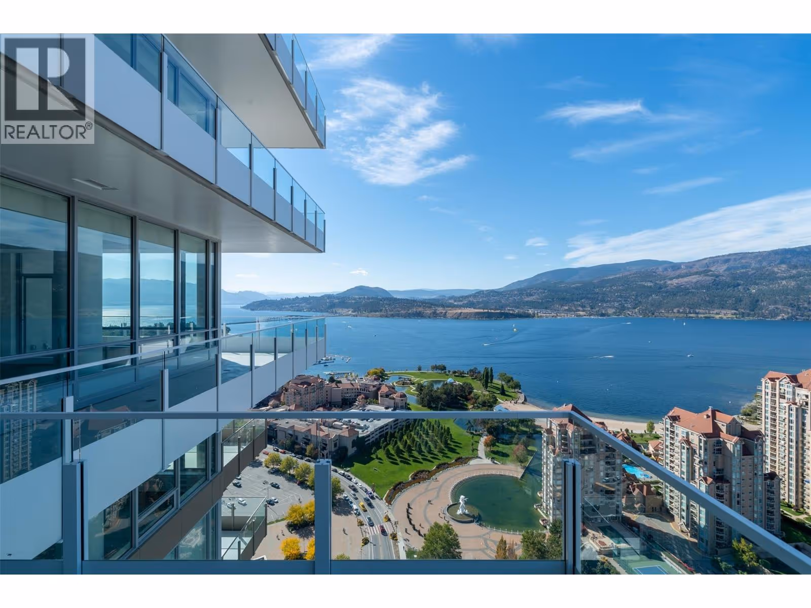 Discover elevated living in this exquisite 2607 sq. ft. sub-penthouse, situated within the prestigious ONE Water Street, a premier condo development in the heart of downtown Kelowna’s vibrant waterfront community. From the 27th floor of the West Tower enjoy panoramic vistas of Okanagan Lake and the City of Kelowna. Every turn of this 3 bed and 3.5 bath home is adorned with upscale finishes with a contrasting light and dark colour palette. The gourmet kitchen is a chef’s haven, offering top-of-the-line appliances including a Sub-Zero refrigerator and dual zoned wine cooler, Wolf cooktop and wall ovens. Step through the sliding glass doors to Indulge in the epitome of indoor-outdoor living on the over 1000+ sq. ft. terrace. From here bask in the natural beauty of the Okanagan and watch the sun glimmer on the lake. For added convenience the SMART home package allows for seamless control of audio, blinds and lights. Parking for two cars and a convenient storage locker. Residents of ONE Water Street enjoy exclusive access to The Bench, an unparalleled amenity space. Immerse yourself in the finest offerings, including two pools, a hot tub, an outdoor lounge with fire pits, a well-equipped gym with a yoga/pilates studio, lounge area, a business center, a pickleball court, a pet-friendly park, and guest suites for visiting friends and family. This is your opportunity to embrace a sophisticated and rewarding lifestyle in one of Kelowna's most coveted communities. (id:62999)