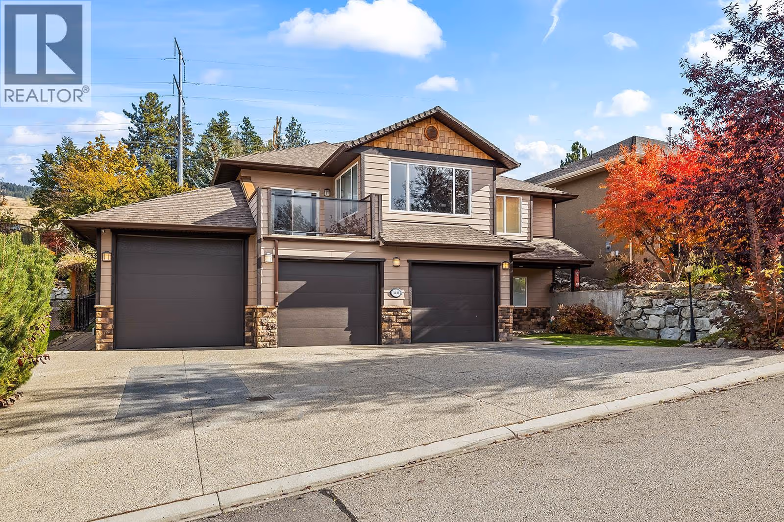 Welcome to this exceptional family home where space, functionality, and lifestyle come together. Offering over 3,100 sq. ft. of living space, this home truly stands out, starting with the 920 sq. ft. triple garage. Designed with car enthusiasts, hobbyists, or active families in mind, the garage features an oversized bay, car lift, 220 power, and room for all your toys. Add in the expansive driveway and extra parking, and you’ll never be short on space for vehicles, trailers, or guests. Inside, vaulted ceilings and a gas fireplace anchor the bright and welcoming main living area. The kitchen is well-appointed with stainless steel appliances and granite countertops, flowing into a sun-filled sitting area with a bar top and pass-through window—perfect for entertaining and extending your living space outdoors. The flexible layout includes 3 bedrooms, 3 bathrooms, plus a spacious office that easily functions as a 4th bedroom. The primary suite offers a walk-in closet and 4-piece ensuite and main-floor laundry adds everyday convenience. Downstairs, a massive rec room provides endless options for family time, games, or movie nights. Step outside to a fully fenced, private backyard with no rear neighbors, a rear deck, and an upper terrace capturing peaceful valley views. Best of all, Sunset Ranch Golf Club is right outside your door. A rare opportunity in one of Kelowna’s most desirable communities offering outstanding parking, an oversized garage, and a lifestyle that’s hard to beat (id:62999)