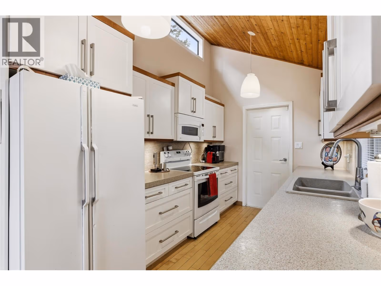 Welcome to this beautifully maintained home in Glenmore, one of Kelowna’s most sought-after, family-friendly neighbourhoods. Set in a mature and quiet area, this home features stunning Okanagan Lake views from nearly every room. Inside, you will find 16’ cedar ceilings, expansive windows framing the lake views & a cozy fireplace that anchor the main living space. Designed for family living, the home offers two separate living areas, four bedrooms, and three bathrooms, all thoughtfully laid out across four levels, providing both space and privacy for everyone. Additional highlights include a double car garage, a dedicated workshop & an RV/boat friendly driveway. An unfinished 12’ high, 470 sqft(approximately) concrete walled crawl space has excellent future potential. The deep tree lined backyard not only shades the house in the summer but offers a tranquil, nature-rich setting for outdoor enjoyment and recreation. Recent upgrades include front yard perennial garden w/ waterfall and pond, 50 year warrantied aluminum fire safe roof w/ leaf filter gutters & the connection to municipal sewer. The school bus stop is located a short walk from the home, and select neighbouring properties benefit from lake access via easement, enhancing this established community. Located 10 minutes from Central Kelowna w/ convenient access to schools, shopping & everyday amenities. A fantastic opportunity to settle into a true family neighbourhood, this home is ready to be enjoyed for years to come. (id:62999)