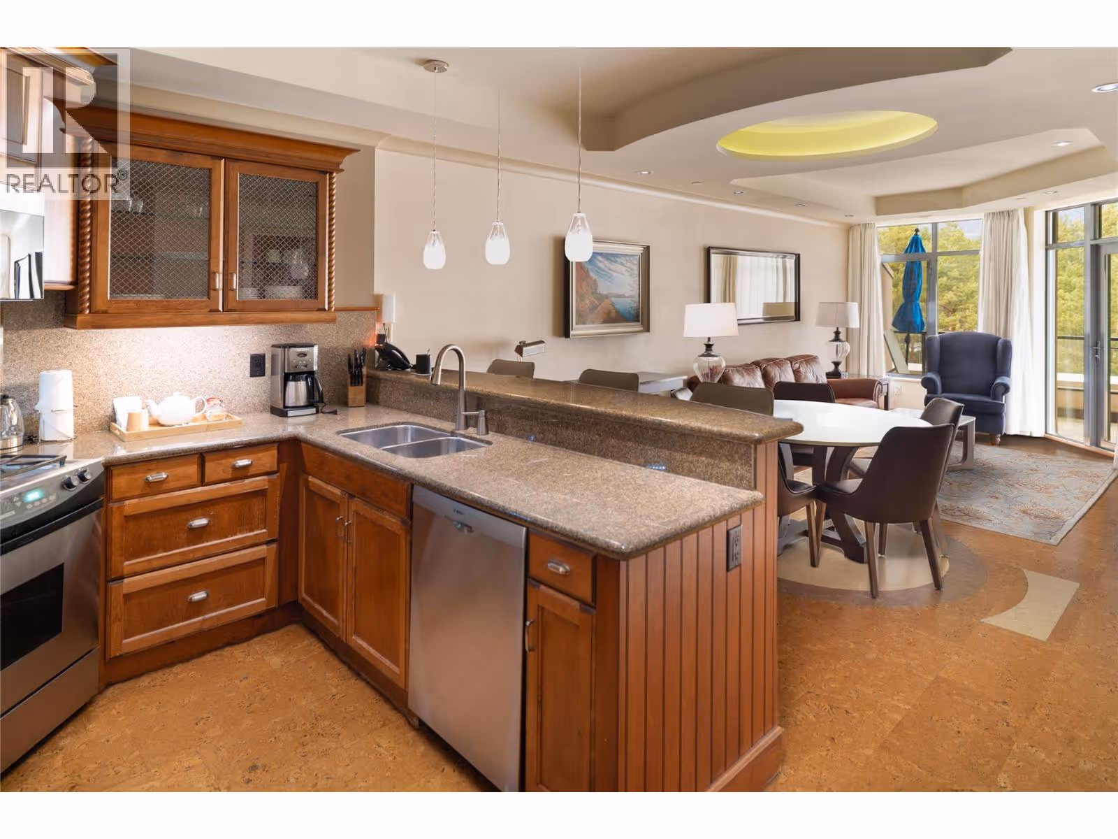 1/12 fractional ownership – Experience luxury resort living in the heart of the Okanagan. This beautifully appointed two-bedroom + den residence is positioned on Kelowna’s sought-after waterfront, offering a seamless blend of relaxation and convenience. Designed for effortless vacation ownership, this turn-key opportunity allows you to enjoy a premium lifestyle without the responsibilities of full-time property management. Spend sun-soaked afternoons in the infinity pool overlooking the lake, unwind in the spa tubs, stay active in the fully equipped fitness centre, or step outside and stroll to nearby beaches, award-winning wineries, local breweries, and fine dining. An exceptional opportunity to secure consistent time in one of Kelowna’s most desirable waterfront settings—where every stay feels like a private resort escape. (id:62999)