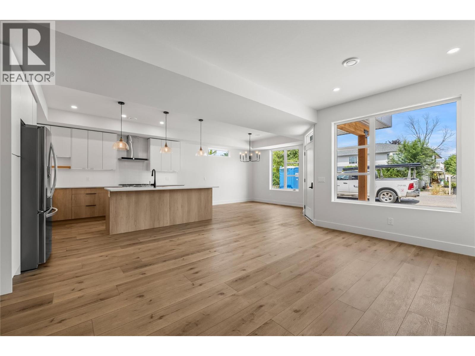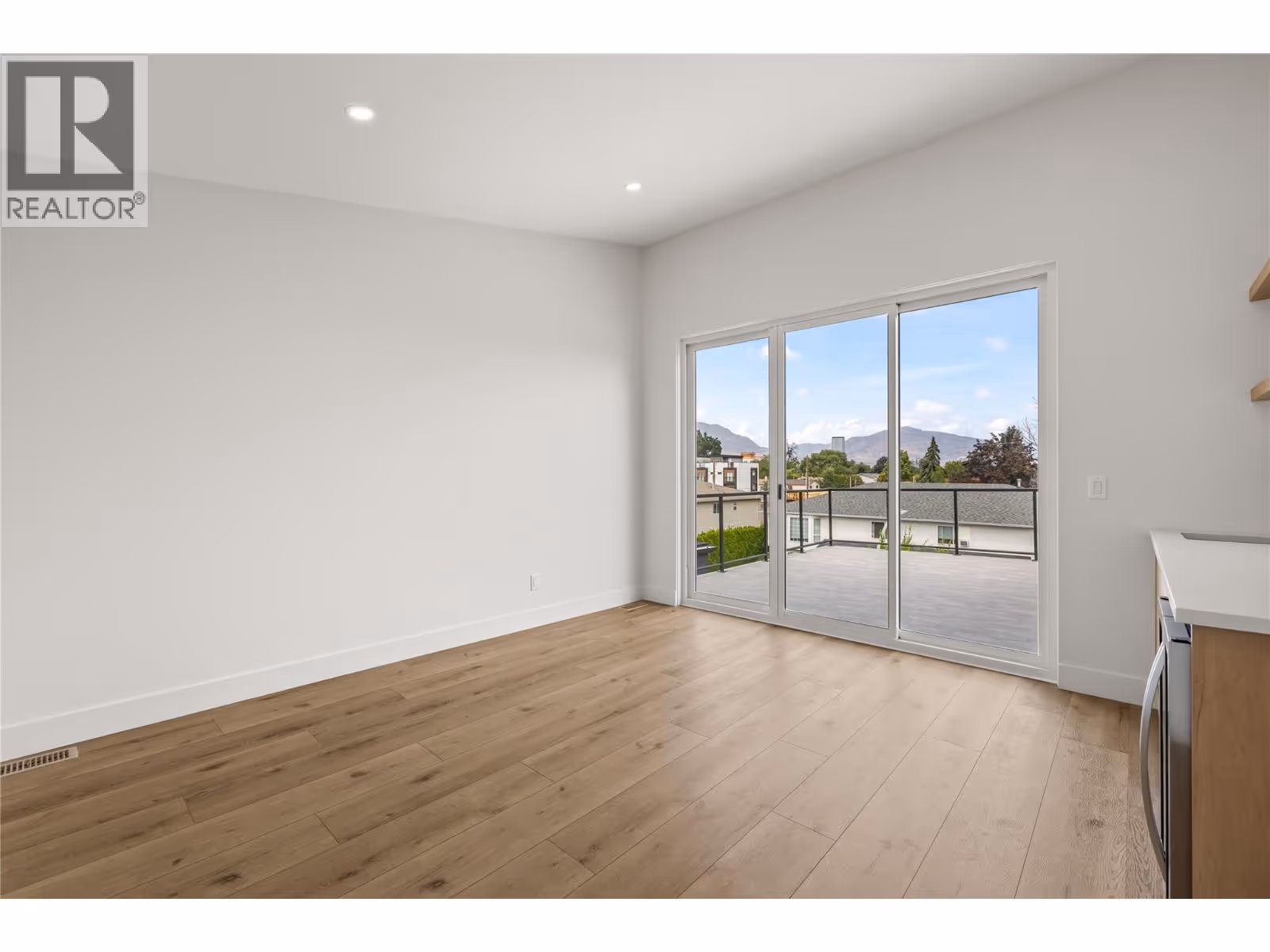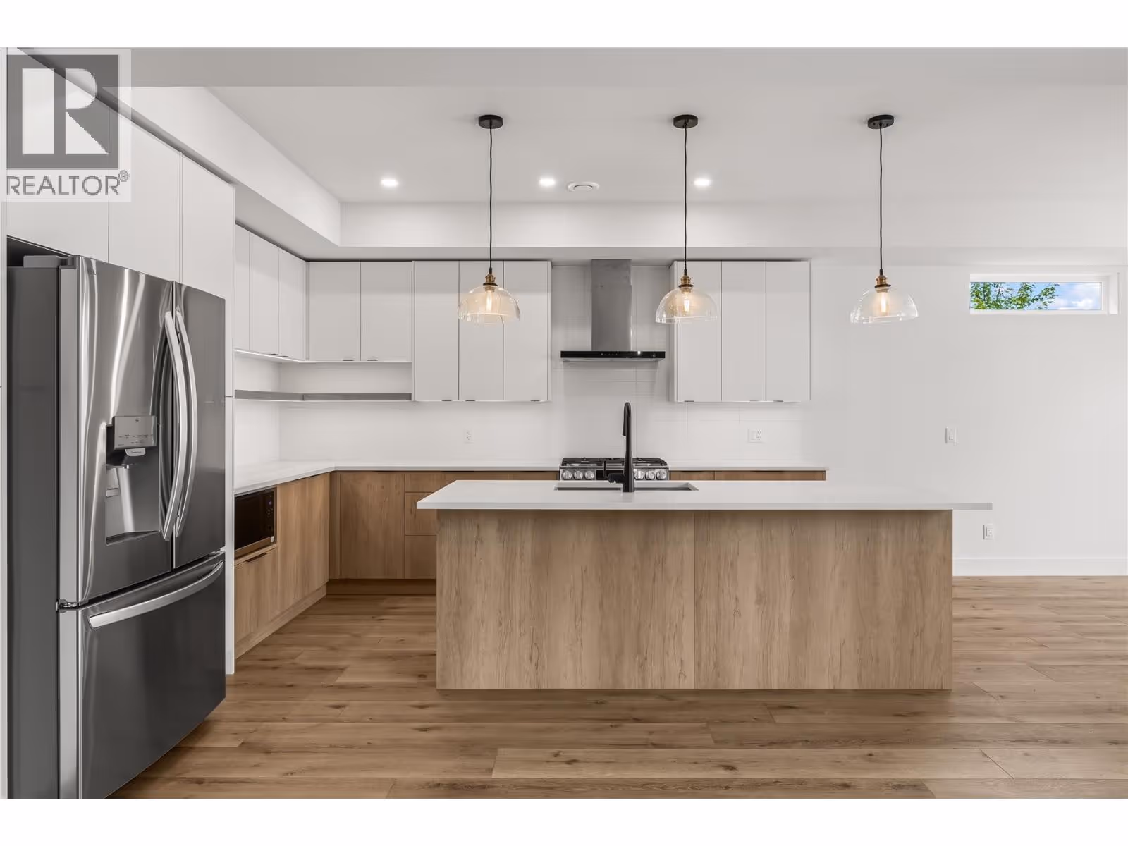 LUXURY LIVING IN THE HEART OF KELOWNA! This beautifully appointed 3-bedroom, 4-bathroom townhouse showcases refined finishes, smart design, and unbeatable walkability. The bright, open-concept main floor is anchored by a chef-inspired kitchen featuring an oversized island with seating, a generous corner pantry, and effortless flow into the dining area and welcoming great room, complete with a cozy natural gas fireplace. Upstairs, the serene primary retreat offers a walk-in closet and a spa-calibre ensuite with a double vanity, freestanding soaker tub, and glass-enclosed walk-in shower. Two additional bedrooms, a full bathroom with dual sinks, and a thoughtfully designed laundry room — equipped with a brand-new LG washer and dryer, folding counter, utility sink, and ample linen storage — provide both comfort and practicality. At the top, a showstopping loft-style recreation room awaits, highlighted by soaring vaulted ceilings, a sleek wet bar, and sliding doors leading to an expansive rooftop patio — the ultimate space for entertaining, relaxing in the sun, or designing your own private hot tub retreat. Located just two blocks from Kinsmen Beach and mere steps to the boutiques, cafes, and amenities of Pandosy Village — with Kelowna General Hospital, parks, and schools nearby — this home delivers modern sophistication in one of the city’s most desirable neighbourhoods. Experience Okanagan living at its best. (id:62999)