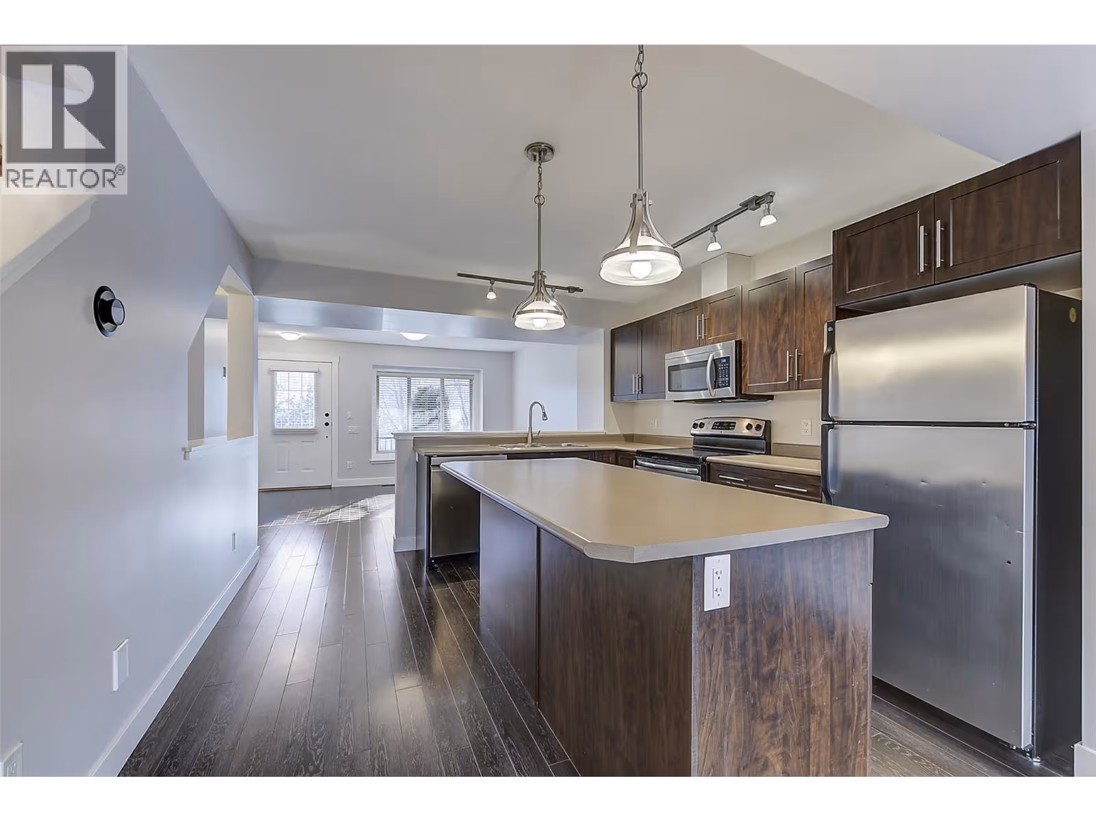 IMMACULATE 2 Bedroom 3 Bathroom Townhome at The Gate in Black Mountain —where comfort & affordability come together. Tastefully updated throughout and move-in ready, this three-level home offers a traditional, functional layout with an open-concept main floor. Tandem double Garage. One of the Best locations in the complex, backing directly on the large grassed and treed Greenspace. Enjoy your morning coffee and and shaded supper BBQ with a the Beautiful Quiet Southern view from your covered veranda. Easy maintenance Laminate through main living areas, and lovely plush berber carpets on stairs and up in bedrooms. Warm white paint gives a modern classy feel. Large kitchen features stainless steel appliances, subway tile backsplash, and island. Eating area off Kitchen. Direct outdoor patio access on main for your enjoyment. Main floor 2 piece bathroom with pedastle sink. Upstairs, two generous bedrooms each boast a private full ensuite (3 piece and a 4 piece) an ideal setup for privacy. Tons of storage options in the tandem garage. Central air conditioning, built in vacuum. Live moments from trails, Black Mountain Golf & Country Club, and just 30 minutes to Big White. Shopping, restaurants, and everyday amenities are minutes away. Professionally managed, low strata fees and ongoing maintenance. Location location, location...don't miss this one! Note: SqFt size Measurements from iGuide exterior measurements and room scans, verify if nb. Quick Possession possible! (id:62999)