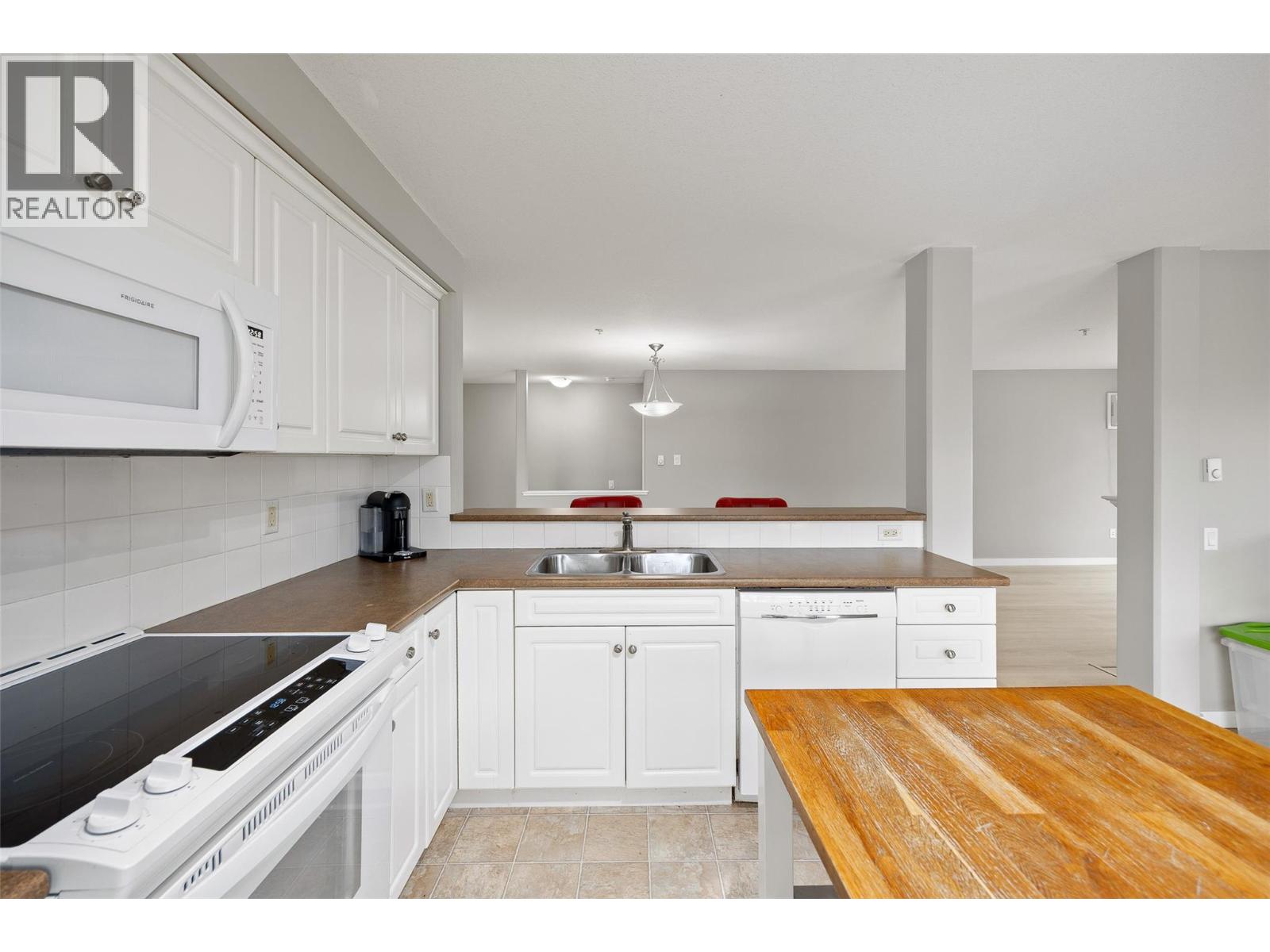 The Ultimate Lower Mission Lifestyle. This bright 2-bed corner unit in Wildwood Village is fully refreshed with new flooring, fresh paint, and updated appliances. The open-concept layout flows onto a massive wrap-around patio—perfect for entertaining. Enjoy a premier Okanagan location: steps to the beach, H2O Centre, golf courses, and wineries. Includes a cozy fireplace, A/C, underground parking, and a building guest suite. Modern, spacious, and move-in ready. Pet & Rental friendly. Truly a must-see! (id:62999)