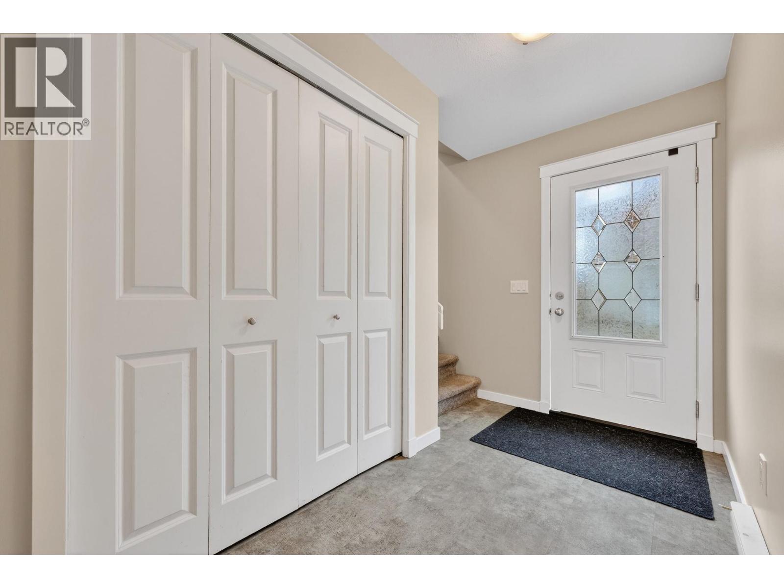 Bright and beautifully updated 3-bedroom, 2.5-bath end-unit townhouse in a prime location! Within walking distance to shopping, restaurants, and transit, and just minutes to downtown Kelowna, Kelowna International Airport, UBCO, beaches, lakes, golf, and more. Ideal for families, first-time buyers, or investors looking to rent to students. The main floor features a spacious primary bedroom with a large walk-in closet and ensuite bathroom, a bright living room with access to a large and sunny deck, plus a white kitchen with updated hard-surface countertops. Updated paint and flooring throughout, including laminate and vinyl flooring on the main level. The lower level offers two separate entrances, two additional bedrooms, a full bathroom, and its own laundry area with a sink—great potential for extended family or rental flexibility. Enjoy the large patio, a spacious garage, plus an additional designated parking stall beside the unit. Situated on the quiet side of the complex away from highway noise. This home is vacant and easy to show with quick possession available. Low strata fees and pets and rentals allowed! (id:62999)