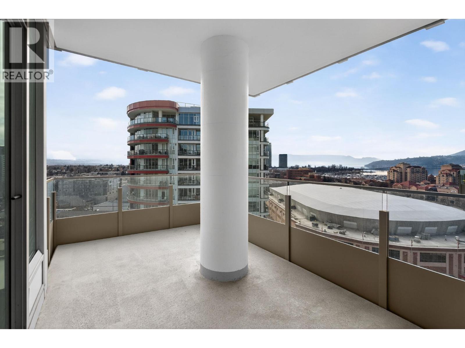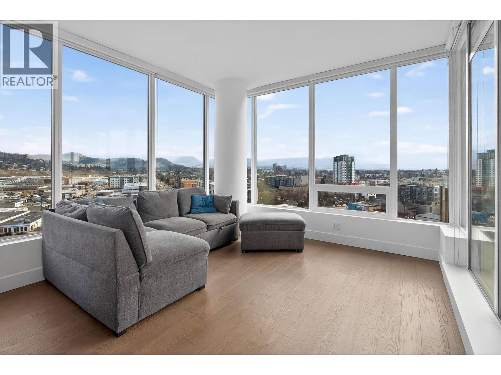 Downtown Kelowna. With a view to the east mountains and south/west overlooking Prospera Arena, the City lights, lake and bridge. The deck offers you a front row seat to view all the activities below you. Floor to ceiling windows flood the space with natural lights. Open concept is anchored by a modern kitchen, featuring quartz countertops, full height custom cabinetry and stainless appliances. 2 bedroom, 2 bathroom corner unit. Primary bedroom has 3 piece tiled walk-in shower and a spacious walk-in closet. Room off entry adds practical storage or office. Ownership gives you access to 2 pools, hot tubs, fitness center, yoga, steam room, pickleball courts, car wash, & Pilates studio, outdoor BBQ, fire pits, guest suites. Front door concierge service. Separate storage locker on floor 2. Parking is on 1st floor, accommodates a large truck. Downtown living doesn't get any better than this. Leave your car and walk to the restaurants, cultural districts, boardwalk, and the beaches on Lake Okanagan Lake. (id:62999)