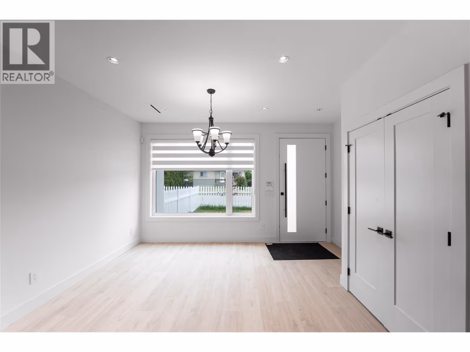 Blending modern design with contemporary charm, this stunning 3-bedroom, 3-bathroom townhome offers 1,994 sq. ft. of thoughtfully designed living space in the heart of Kelowna – Move-In Ready! The open-concept main floor features 9-foot ceilings, wide plank laminate flooring, custom window coverings and elegant built-in cabinetry throughout. The chef-inspired kitchen is complete with a large island with built-in storage, two-tone cabinetry, white granite countertops, stainless steel appliances and a gas range. Enjoy a cozy gas fireplace with feature wall and built-in indoor/outdoor speakers for seamless entertaining. Upstairs, the spacious primary suite boasts vaulted ceilings, a walk-in closet and a luxurious 5-piece ensuite with freestanding tub and private water closet. Two additional bedrooms, convenient upper-level laundry and media hookups add to the home’s appeal. Outdoor highlights include a private rooftop patio, fenced front yard with white picket fence and a single detached garage. Ideally located just minutes to parks, schools, shopping, KGH and the lake—offering exceptional lifestyle and value in Kelowna South. (id:62999)