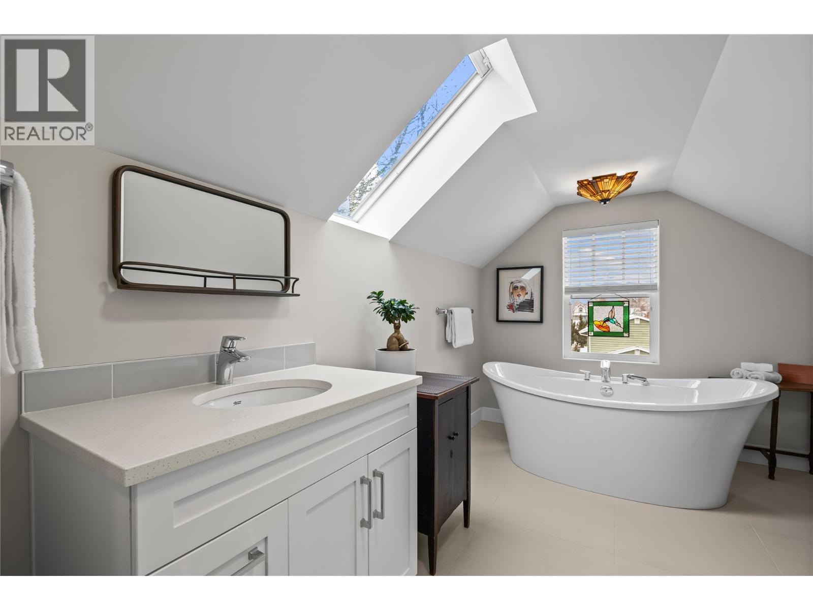 Welcome Home! This 2019 Thomson Dwellings custom build is nestled just steps away from Okanagan Lake in the Hospital District-Abbott Corridor. Offering over 4200 sq/ft this modern living, thoughtful design features an elevator, a main floor primary bedroom & an additional 4+ bedrooms each with their own bathroom. The 2-1/2 story residence has a thoughtful design, tasteful finishes & a layout that appeals to families, multi-generational families & those seeking income generating opportunities such as a B&B or home office. As you step inside, you're greeted by an expansive & airy living space that seamlessly integrates the living-rm, dining-rm & large kitchen with walk-in pantry. The open concept fosters a welcoming atmosphere that would appeal to even the busiest of families where there is no shortage of storage space. The 2nd level is primarily dedicated to secondary bedrooms... all generously sized & can accommodate various lifestyles. The 3rd floor flex space is too large to call quaint however it exudes the epitome of a comfy/cozy family room/office space that is flooded with light from multiple windows & skylights. This space could serve as the perfect teenage retreat with its own spa-like bathroom oasis. The suite/owners living quarters, is bright & airy. With no shortage of parking the oversized two car garage has extra storage & a workshop area. The driveway is extra wide & can accommodate 4 cars. Don't forget to check out the virtual tour. (id:62999)