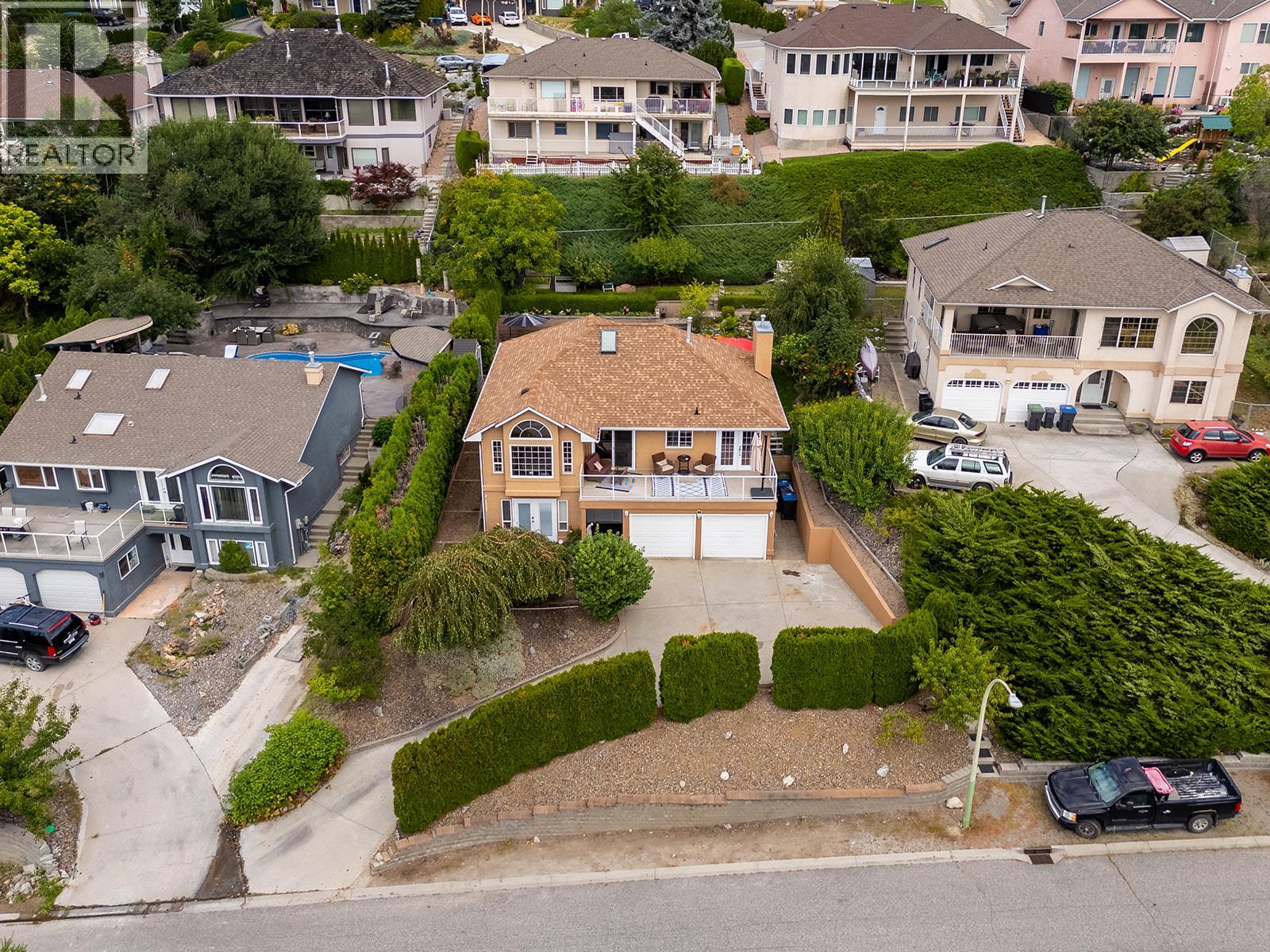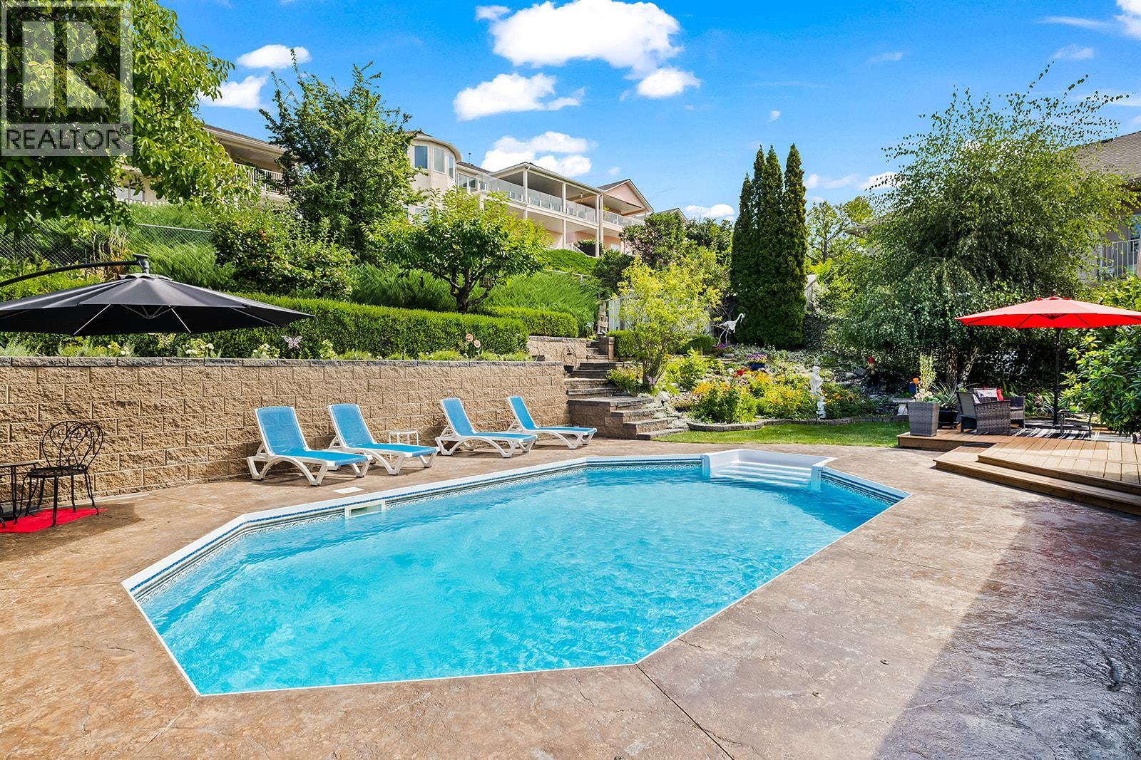 **MORTGAGE HELPER - HOME WITH LEGAL SUITE**. Beautifully cared-for single-family home in sought-after Toovey Heights, thoughtfully updated for comfort and style. The modernized kitchen boasts quartz countertops and stainless steel appliances, while the living room features arch-topped windows facing the lake, creating an intimate and inviting vibe. Step out onto the west-facing deck and enjoy panoramic lake views, perfect for relaxing or entertaining. The private yard, surrounded by cedar trees for added privacy, is a gardener’s dream with peach, Honeycrisp apple, and apricot trees, along with a raspberry bush, strawberry patch, and walnut trees. On warm Okanagan days, cool off in your swimming pool and soak up the sunshine. Inside, the ensuite bathroom offers spa-like relaxation with travertine tile and a jetted tub. A fully legal suite provides mortgage-helper potential or multi-generational living, making this home both beautiful and practical. Nestled in Toovey Heights, a true Kelowna hidden gem with no thru-traffic, you’ll love the peaceful setting while staying close to everything. Black Mountain Golf Club is just minutes away, Big White Ski Resort is only 40 minutes from your doorstep, and Kelowna International Airport is a short 12-minute drive, offering unmatched convenience. With stunning lake views, updated interiors, income potential, and a lush private yard, this Toovey Heights property is ready to welcome its next owners. (id:62999)