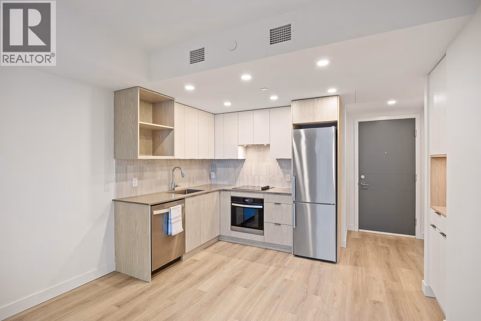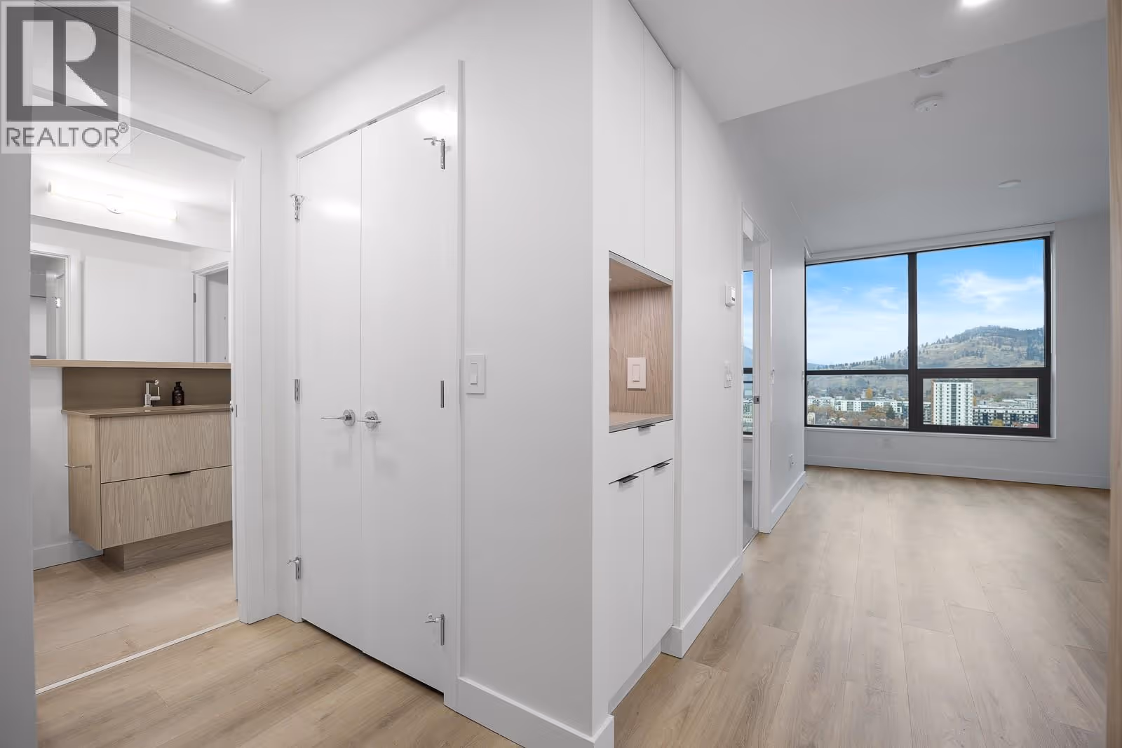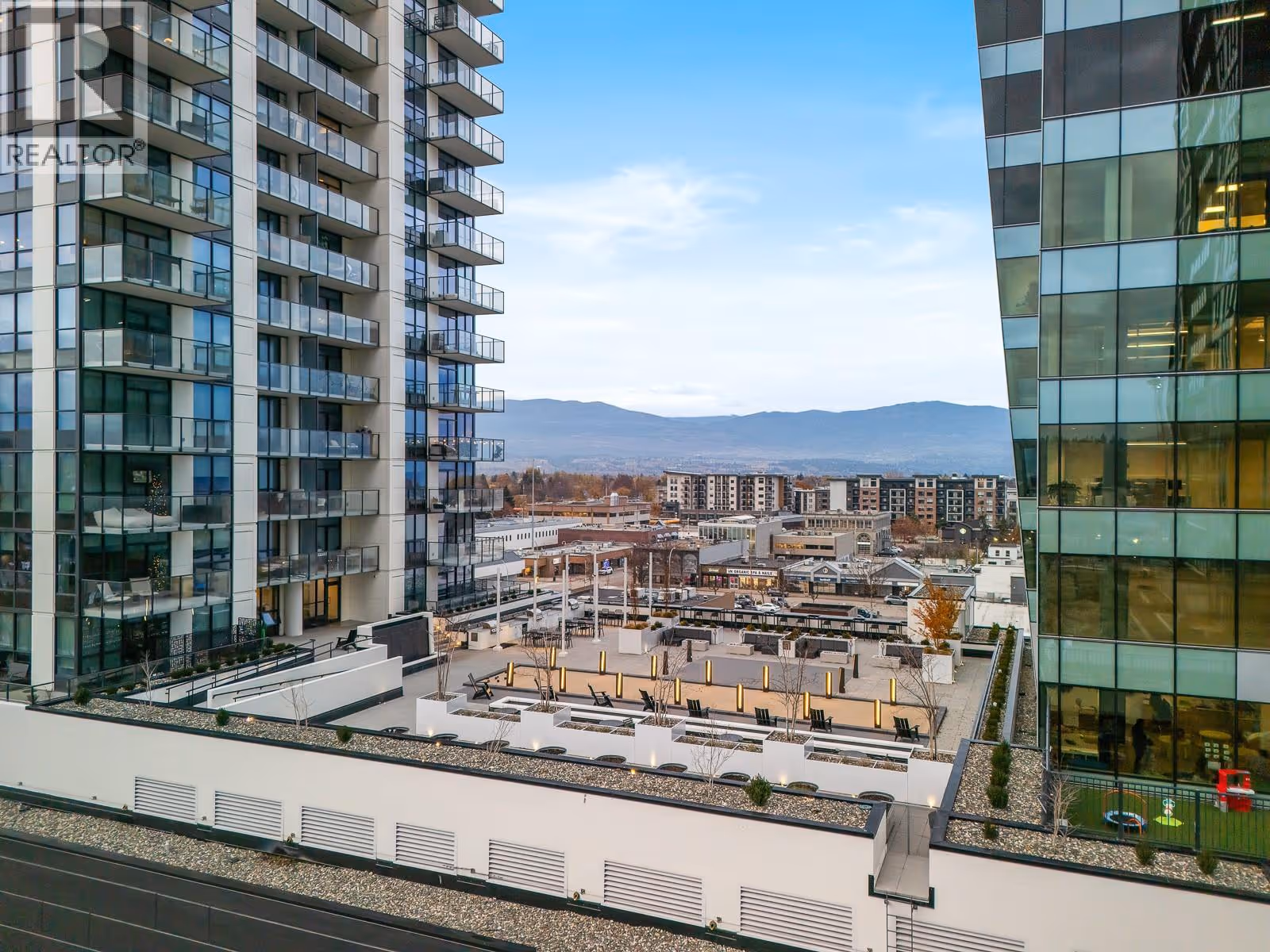ONLY 1 BED UNIT AVAILABLE AT BERTRAM! Perched in a prime spot just off Bernard Ave, this nearly new, lightly lived in north-facing 1 bedroom home offers a lifestyle that working professionals and first-time buyers will instantly appreciate. Inside, you’ll find a pristine space where even the appliances have barely been broken in—your oven might still be wondering what its job is. The smart layout includes a dedicated office nook, perfect for remote work without feeling tucked away in a dark den. Large windows brighten the living area and lead to a good sized covered patio with serene lake and Knox Mountain views—a daily reminder of why Kelowna living is so special. An added bonus: no neighbouring units look directly into your space, a rare level of privacy for downtown. Residents enjoy affordable, well-maintained amenities including a clean, functional fitness centre, outdoor BBQ areas, a bocce court, community gardens, and several indoor lounge and work spaces for hosting guests or spreading out. The building’s standout feature is Kelowna’s only rooftop pool available for private ownership, offering unmatched panoramic views. And with 1 secured parking stall & THREE elevators, coming and going is easy—even during peak times. Immaculate condition, an unbeatable location, and a lifestyle-focused design all come together in a home that feels fresh, functional, and surprisingly attainable. Come see how this turnkey condo elevates everyday living. (id:62999)